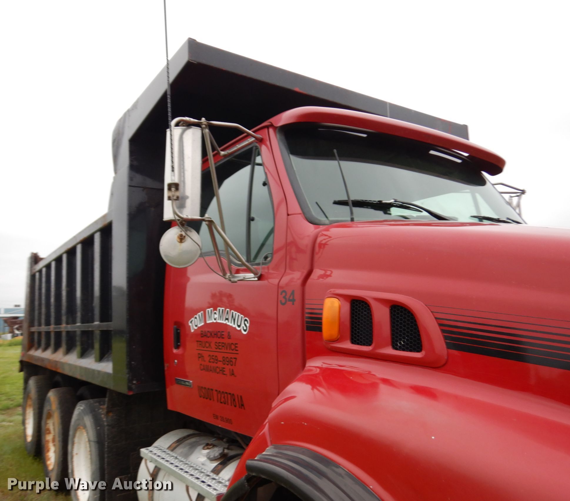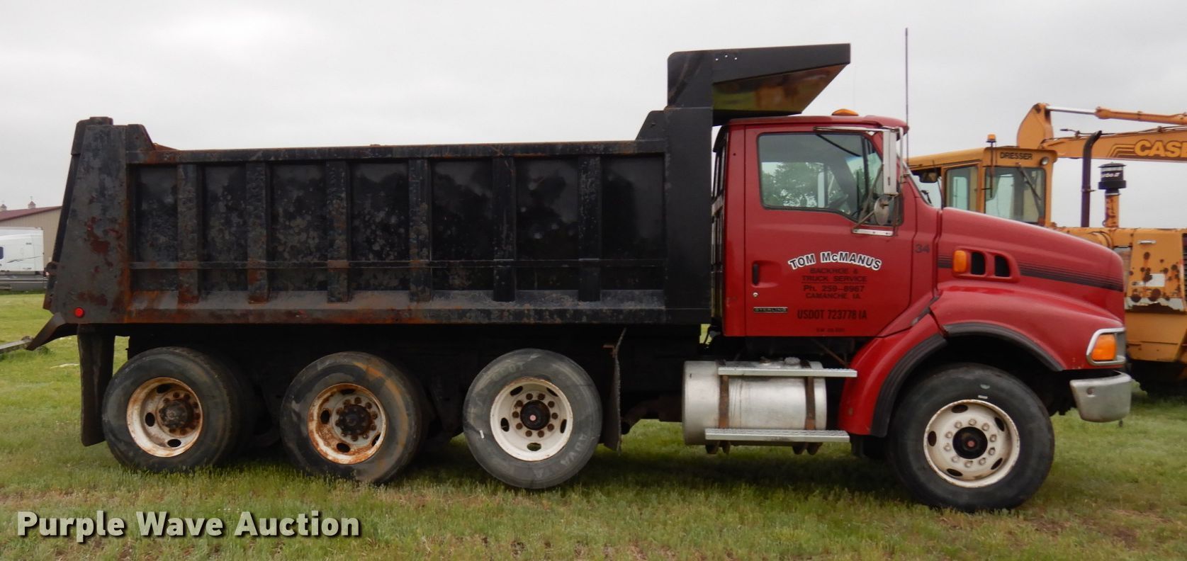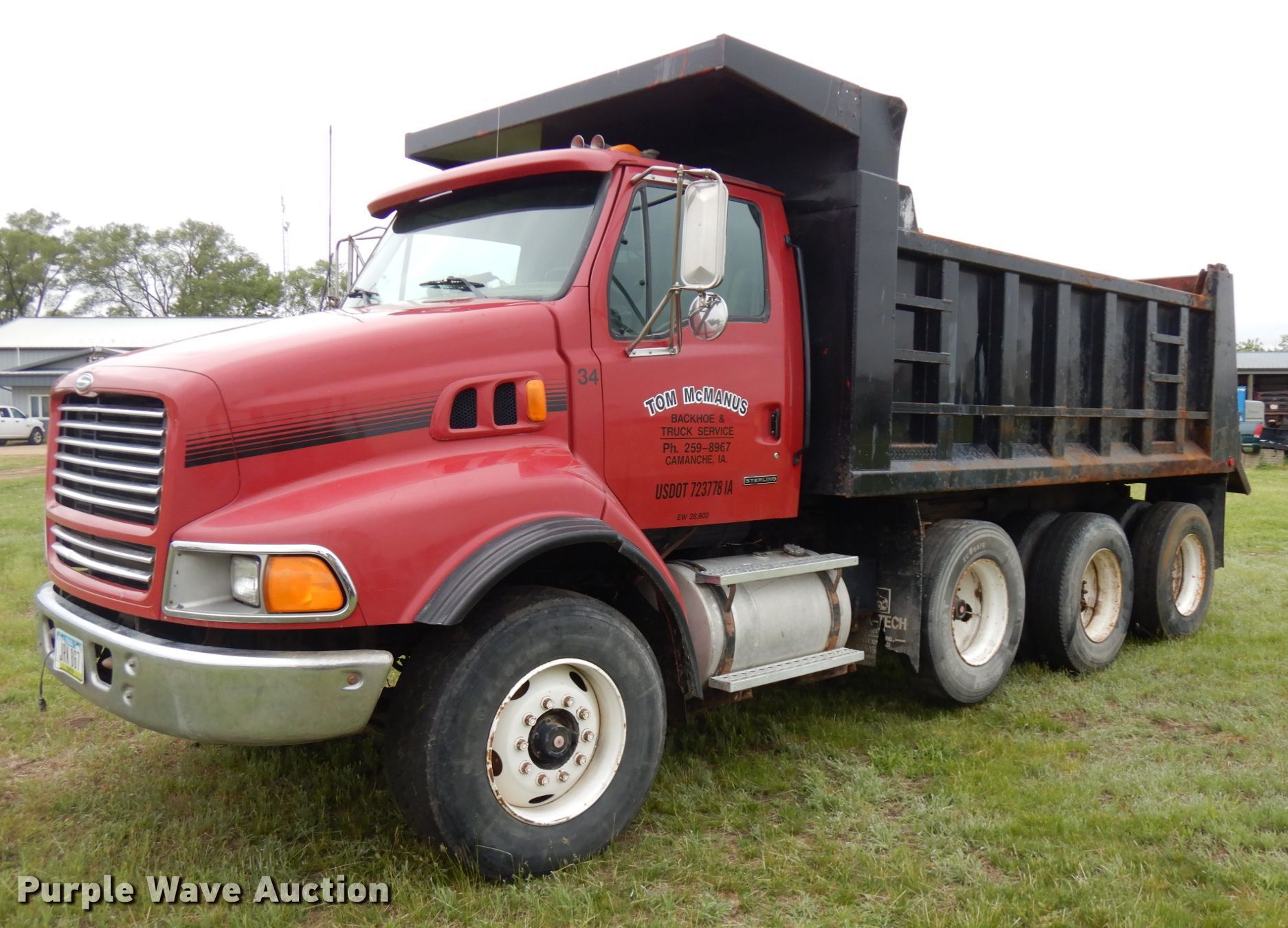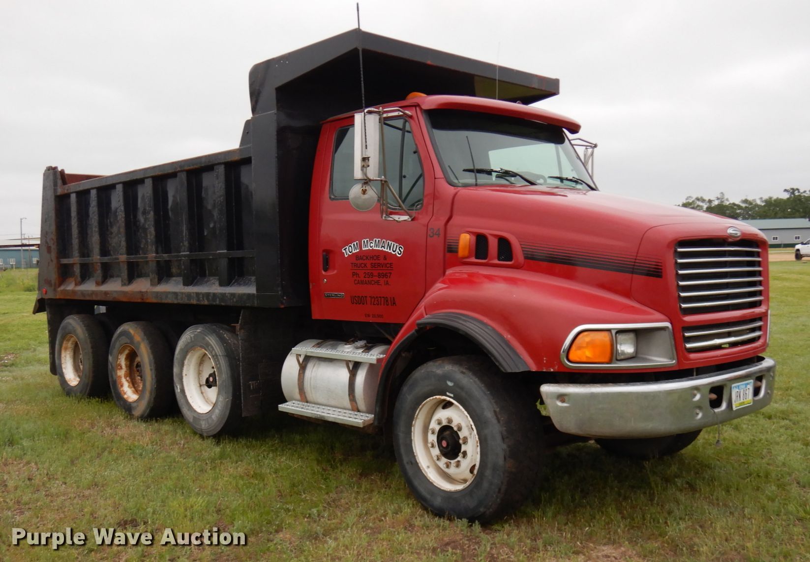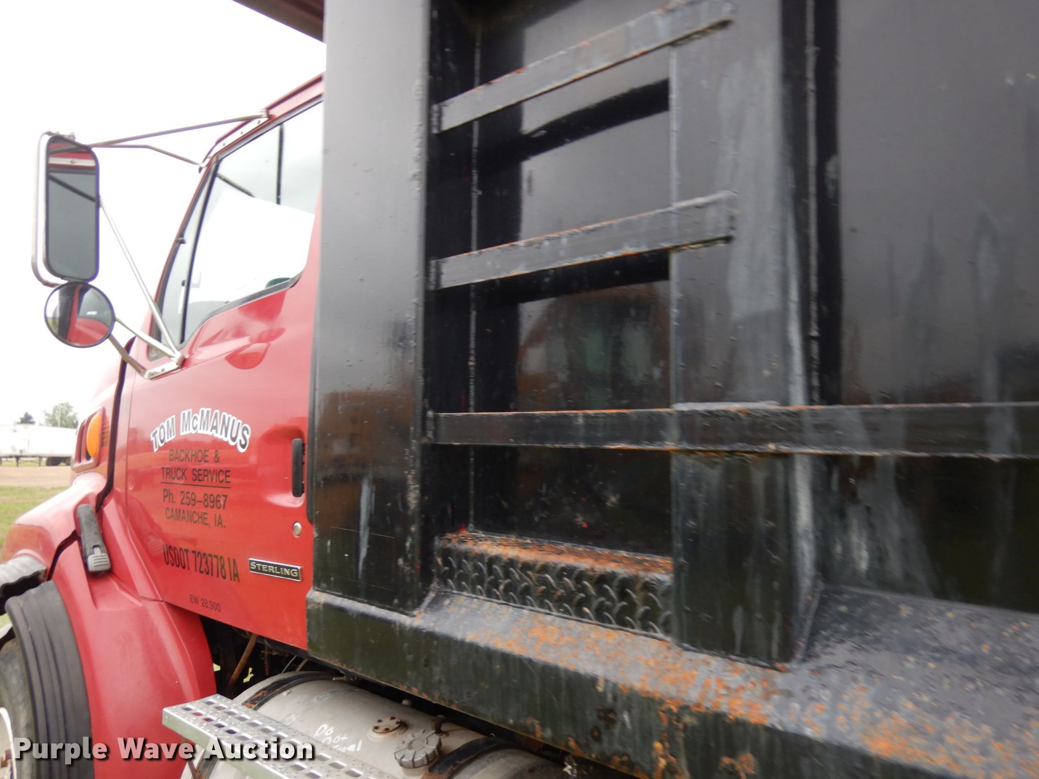 1999 Sterling L-Line dump truck. 290,928 miles on odometer. Engine Caterpillar 3126, Displacement: 7.2L, Cylinders: 6, Fuel type: Diesel. Transmission Allison, Automatic. Chassis Axles: Triple, Pusher axle, Suspension: Air, Brakes: Air, PTO, GVWR: 58,000 lbs, Wheelbase: 198". Interior AC, Heat, Power windows, Cruise control. Operational Dump bed 16' L x 96" W, Side height: 44", Bed type: Steel, Ram: Single , End gate: Air operated. Tires Front: 385/65R22.5, Pusher: 295/75R22..5, Rear: 11R22.5. Iowa title. 2FZXMJBBXXA982726. Tom McManus Backhoe and Trucking. 310 US-67. Camanche, IA 52730