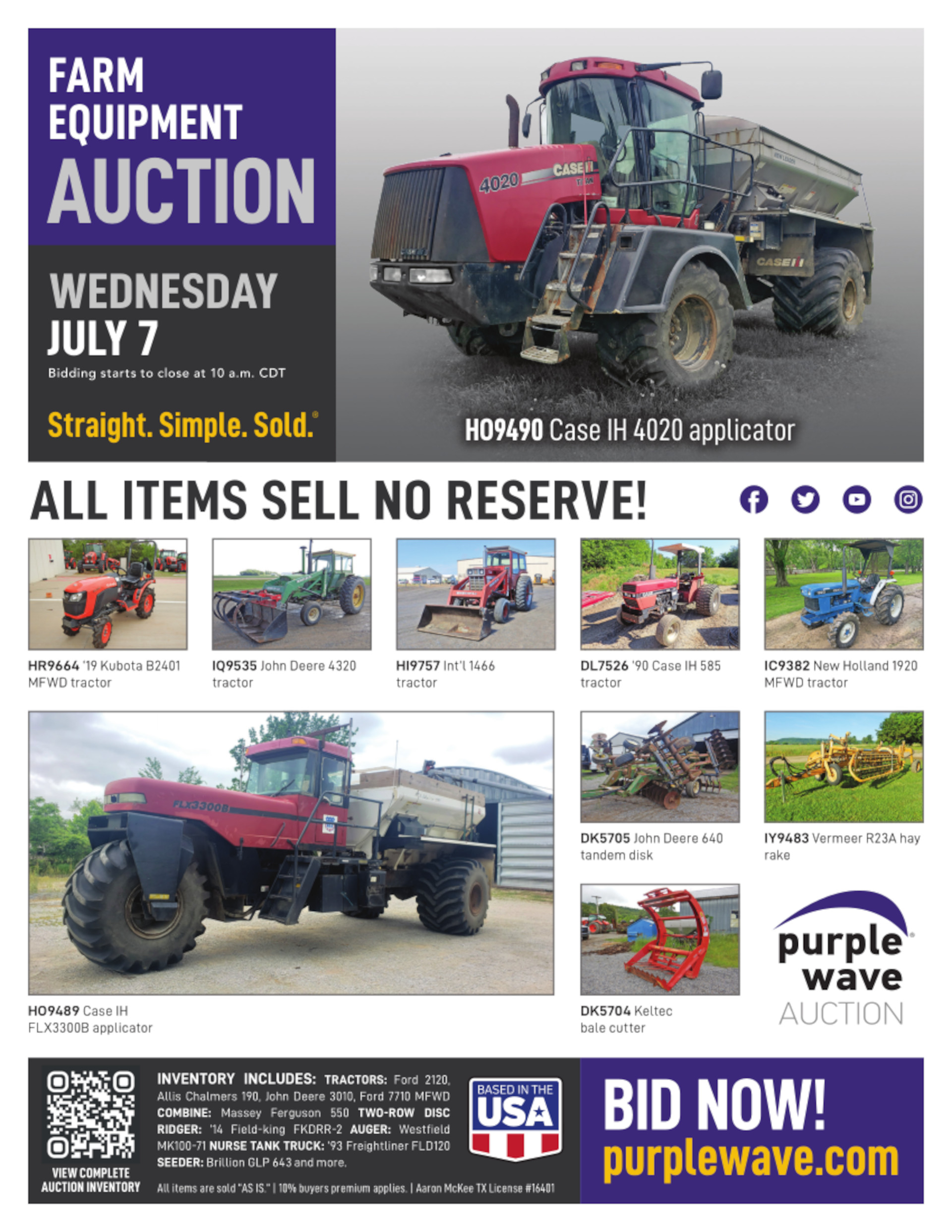 This auction is conducted by Purple Wave, Inc., whose home office is 825 Levee Drive, Manhattan, Kansas. Aaron McKee, Texas auctioneer license # 16401, operates Purple Wave, Inc. Complaints against us may be directed to the Texas Department of Licensing and Regulation, P.O. Box 12157, Austin, Texas 78711, (512) 463-6599. For additional required information, see the attached document.