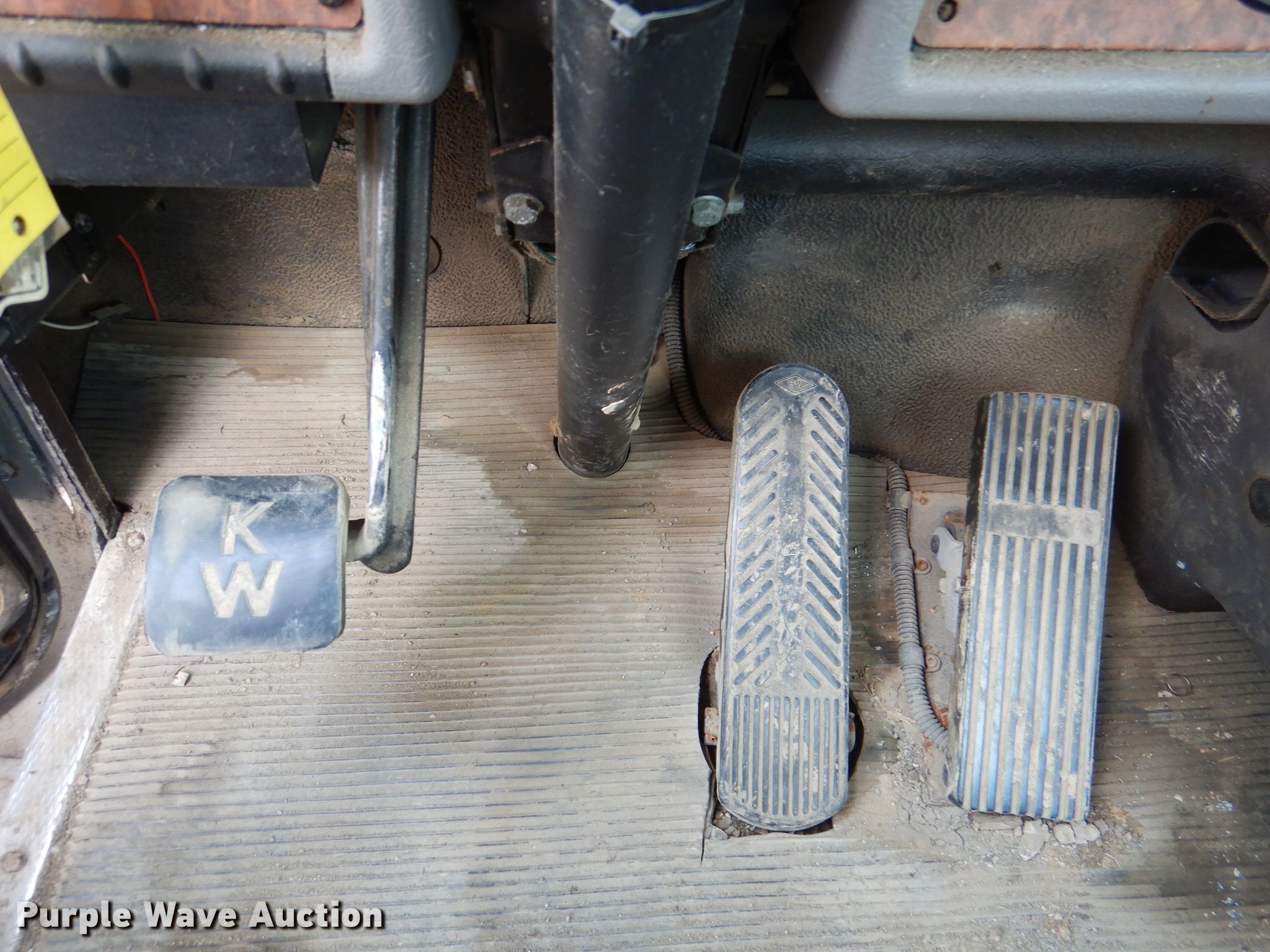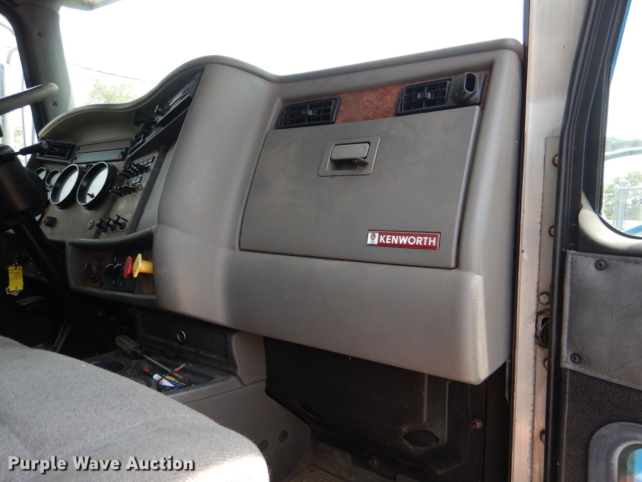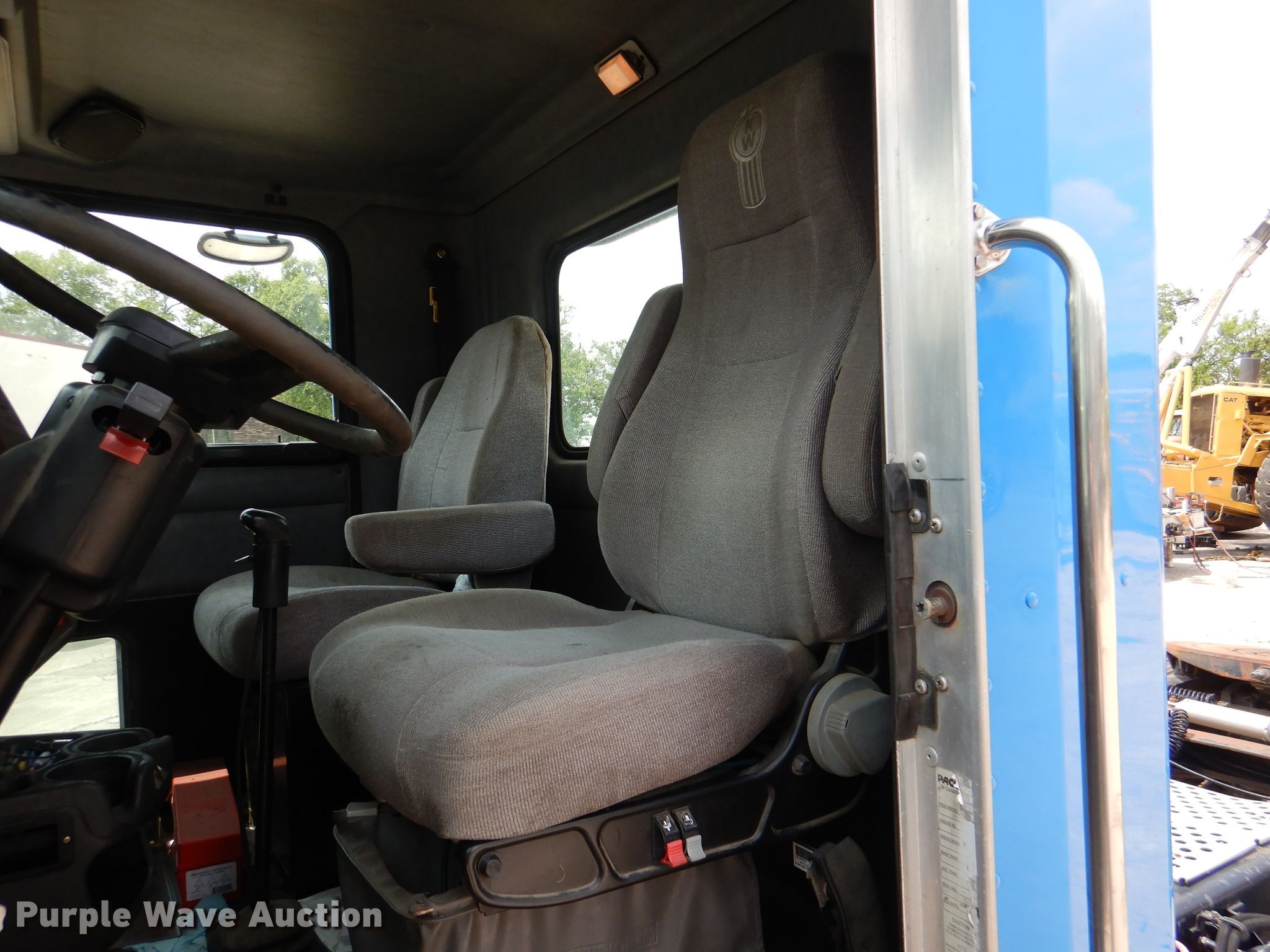 2004 Kenworth T300 semi truck. 333,130 miles on odometer, Engine hours: 10,460, Unit #: 20. Engine Caterpillar C7 Acert, Displacement: 7.2L, Cylinders: 6, Fuel type: Diesel, Engine brake. Transmission Manual, Speed: 10. Chassis Axles: Single, Differential lock: Inter-axle, Suspension: Air, Dump valves, Brakes: Air, GVWR: 33,000 lbs. Interior AC, Heat, Heated mirrors, Cruise control. Operational Deck plate: Aluminum, Fifth wheel type: Air operated, Sliding, Fuel tank: Dual. Tires Size: 11R22.5. Notes Dash warning indicator: ABS, AC blows warm. Kansas title. 2XKMAD7X04M064500. Lenexa, KS 66227