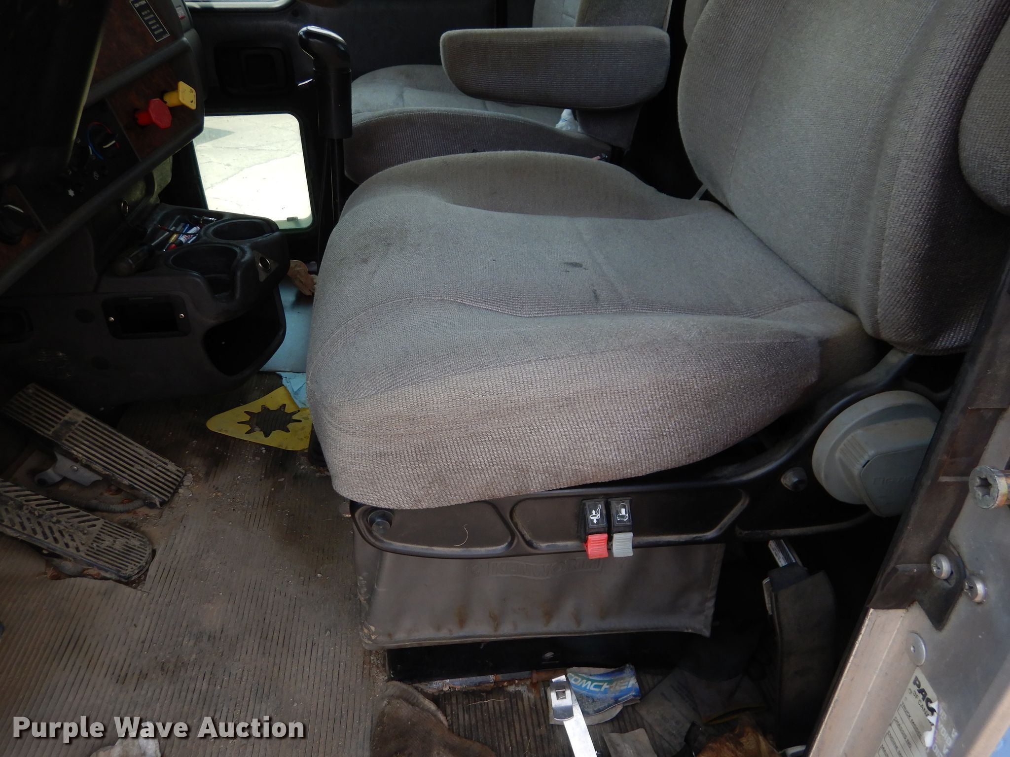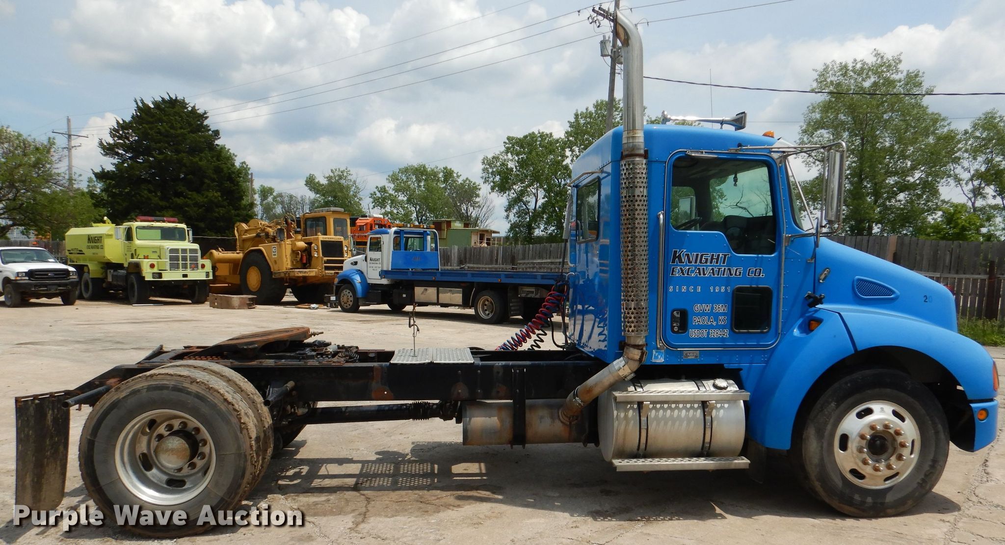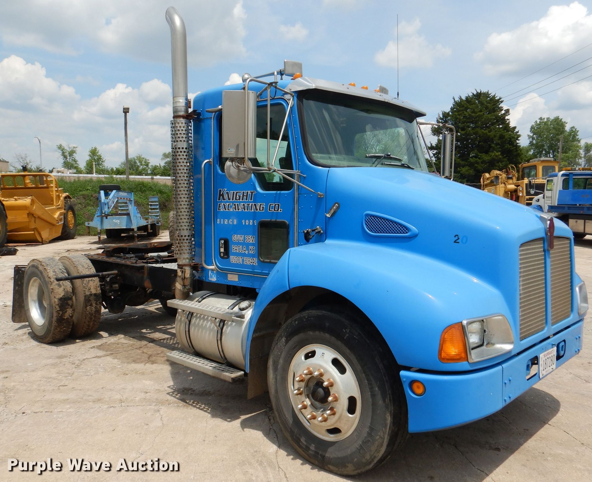 2004 Kenworth T300 semi truck. 333,130 miles on odometer, Engine hours: 10,460, Unit #: 20. Engine Caterpillar C7 Acert, Displacement: 7.2L, Cylinders: 6, Fuel type: Diesel, Engine brake. Transmission Manual, Speed: 10. Chassis Axles: Single, Differential lock: Inter-axle, Suspension: Air, Dump valves, Brakes: Air, GVWR: 33,000 lbs. Interior AC, Heat, Heated mirrors, Cruise control. Operational Deck plate: Aluminum, Fifth wheel type: Air operated, Sliding, Fuel tank: Dual. Tires Size: 11R22.5. Notes Dash warning indicator: ABS, AC blows warm. Kansas title. 2XKMAD7X04M064500. Lenexa, KS 66227
