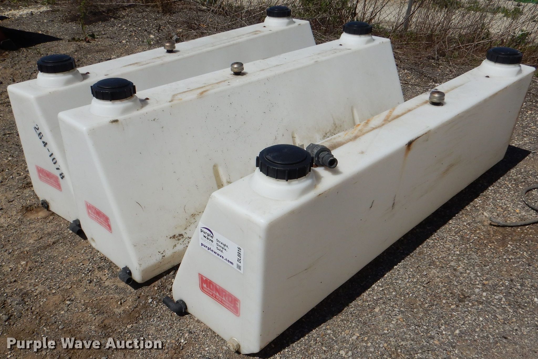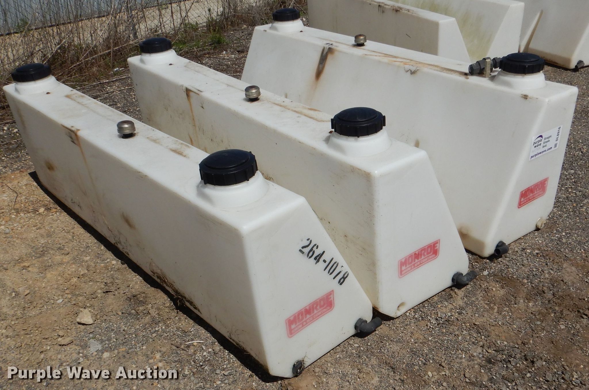 Monroe poly tanks. (5) 81"L x 24"H Capacity: 100 gallons, (2) 84"L x 22". Jackson County Noxious Weed. 24569 Us-75 Hwy. Holton, KS 66436