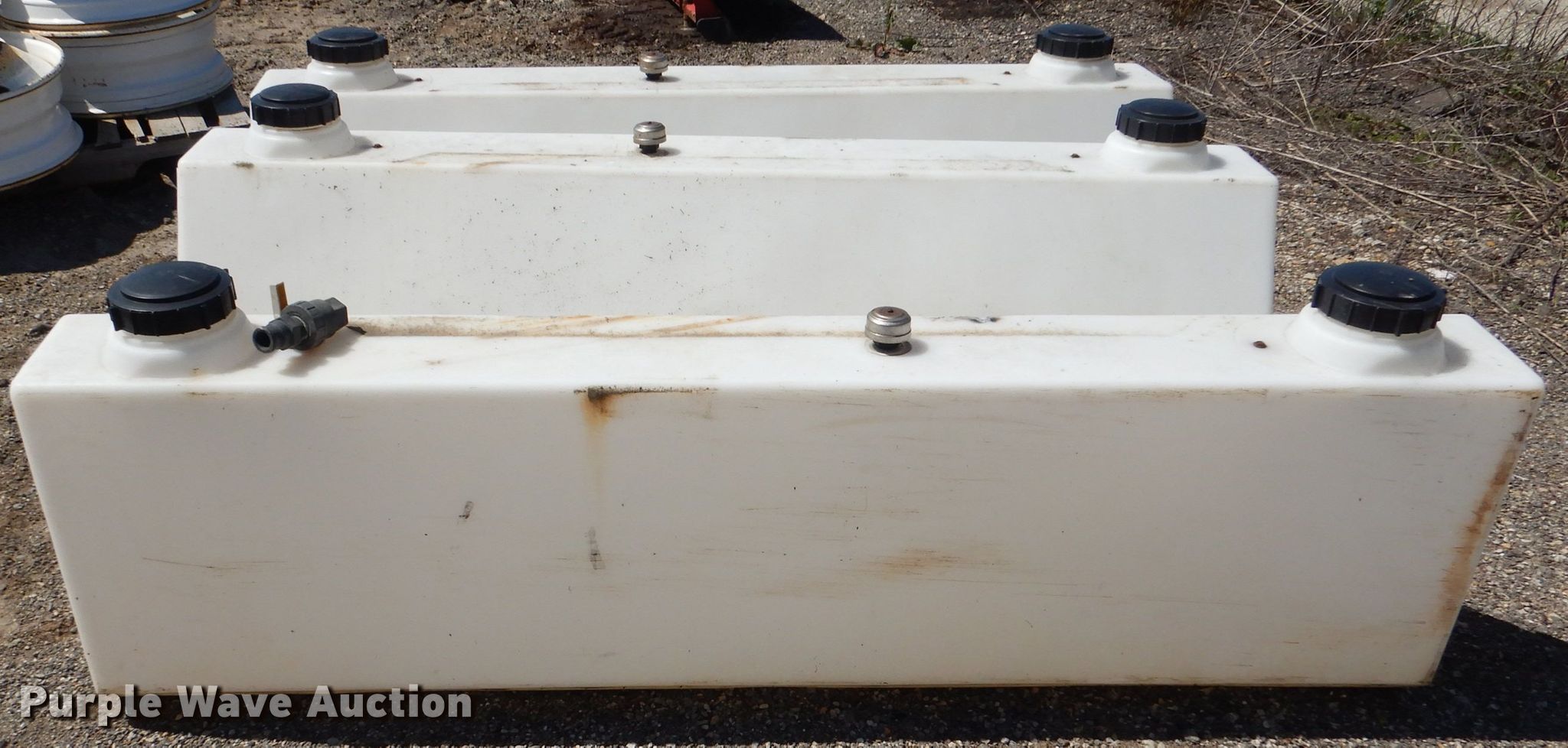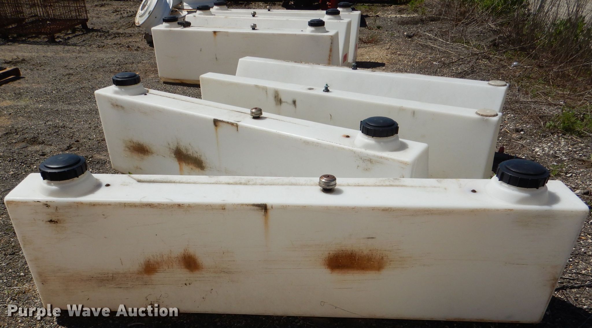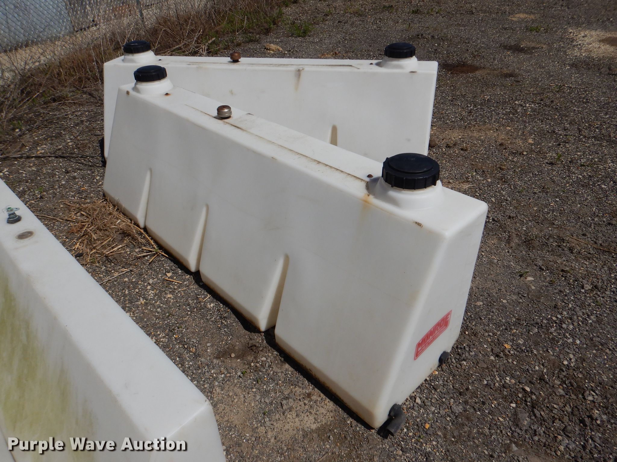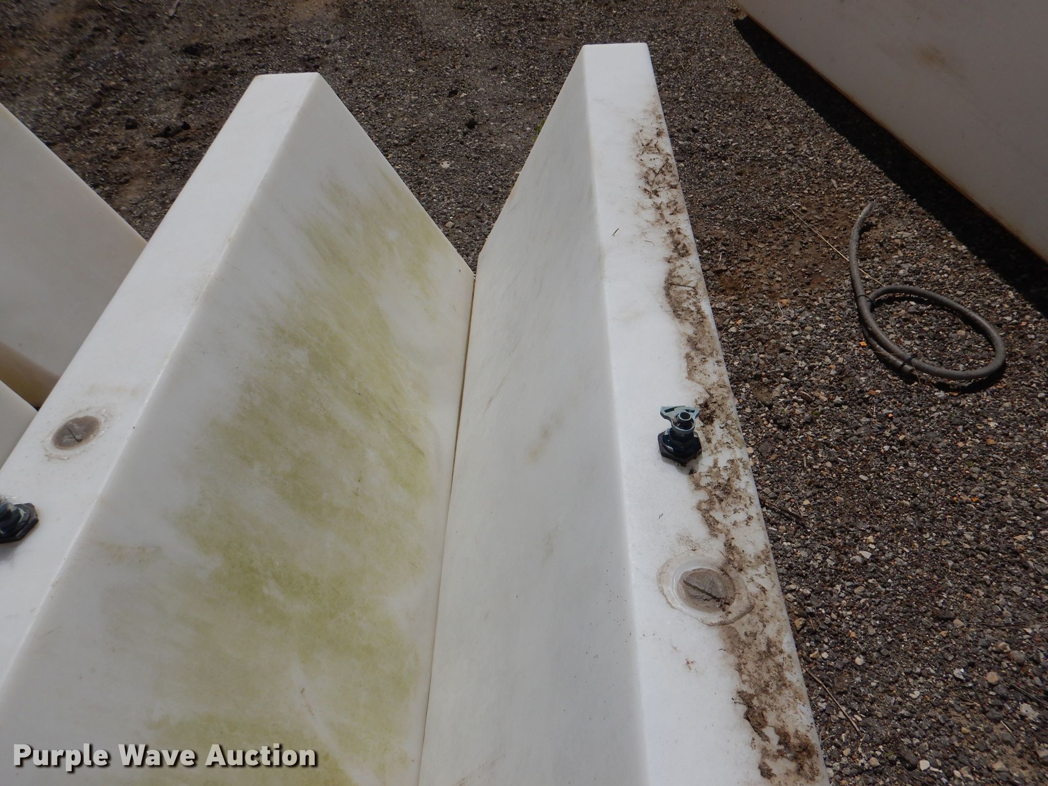 Purple Wave is selling a used Tanks in Kansas. This item is a Monroe poly tanks with the following: (5) 81"L x 24"H, Capacity: 100 gallons, (2) 84"L x 22"