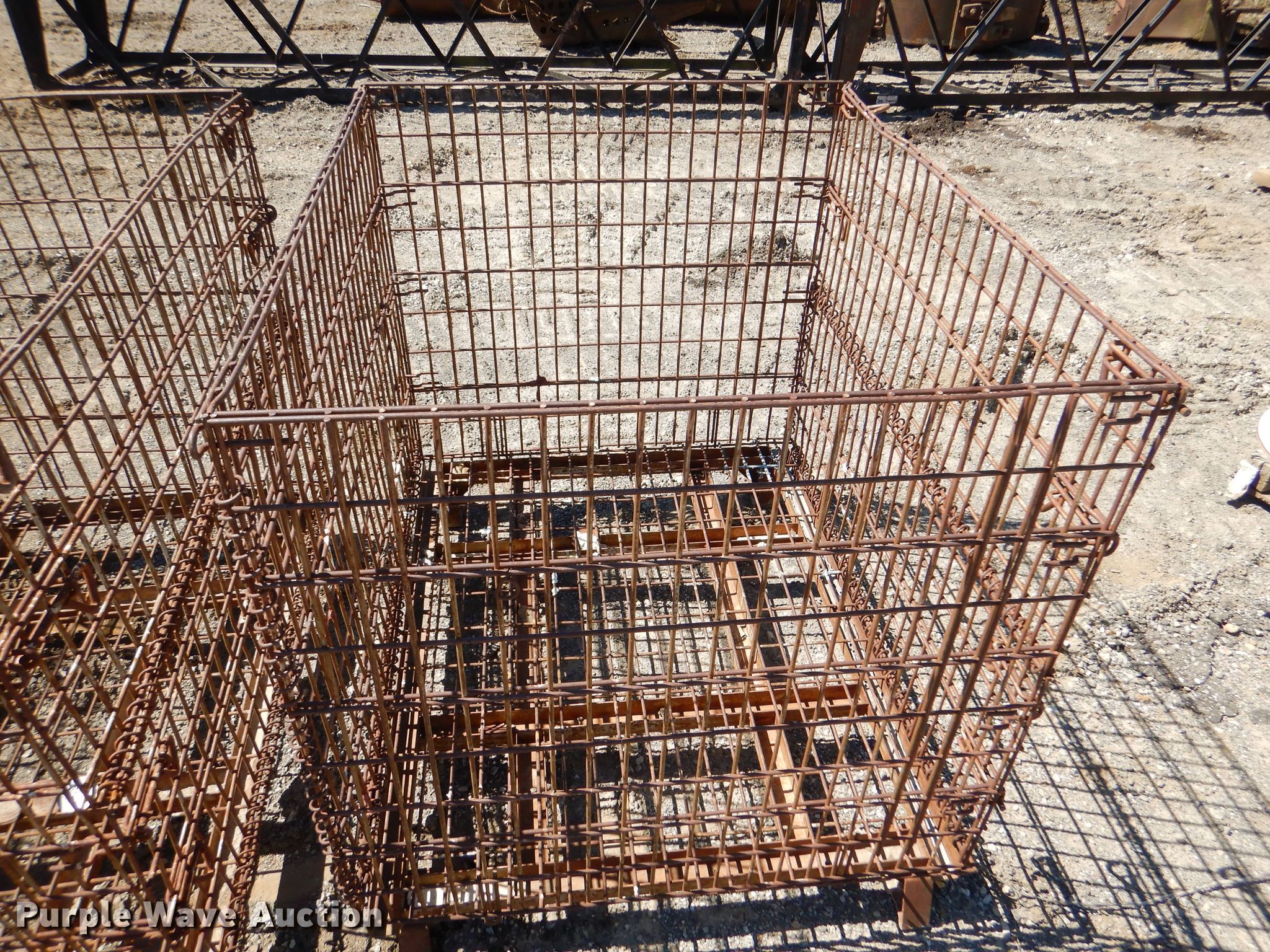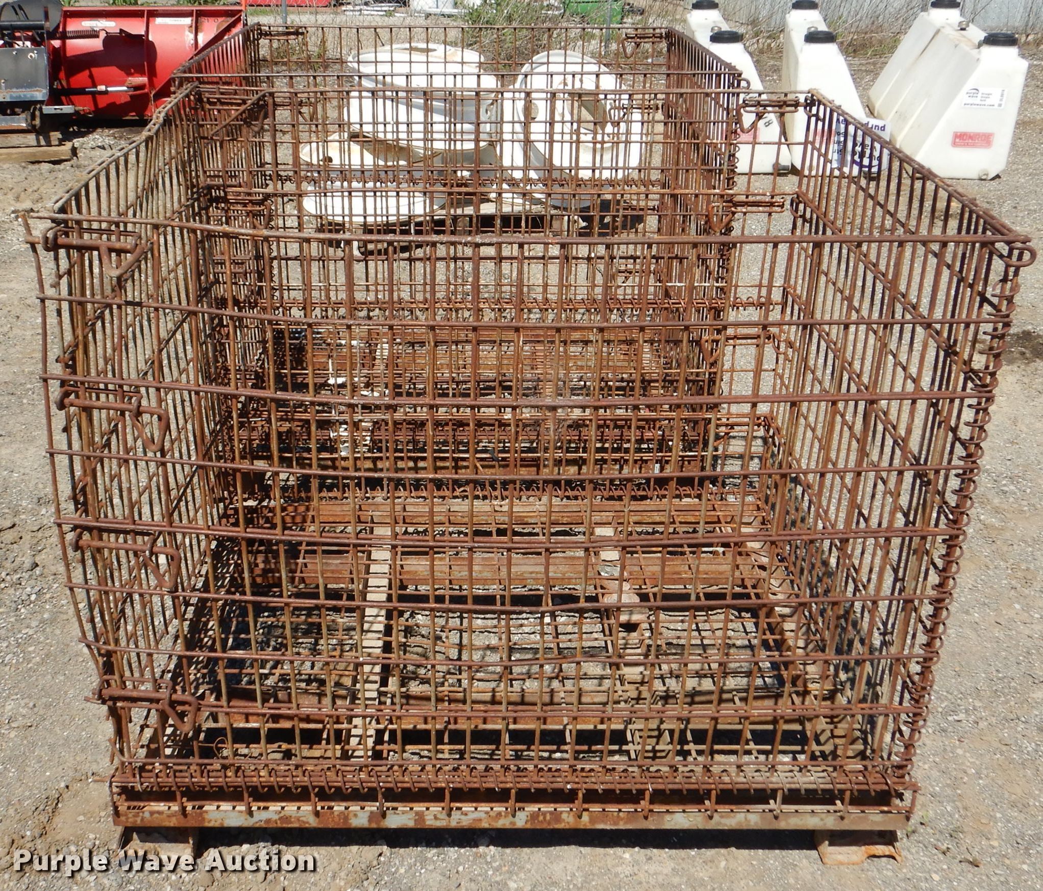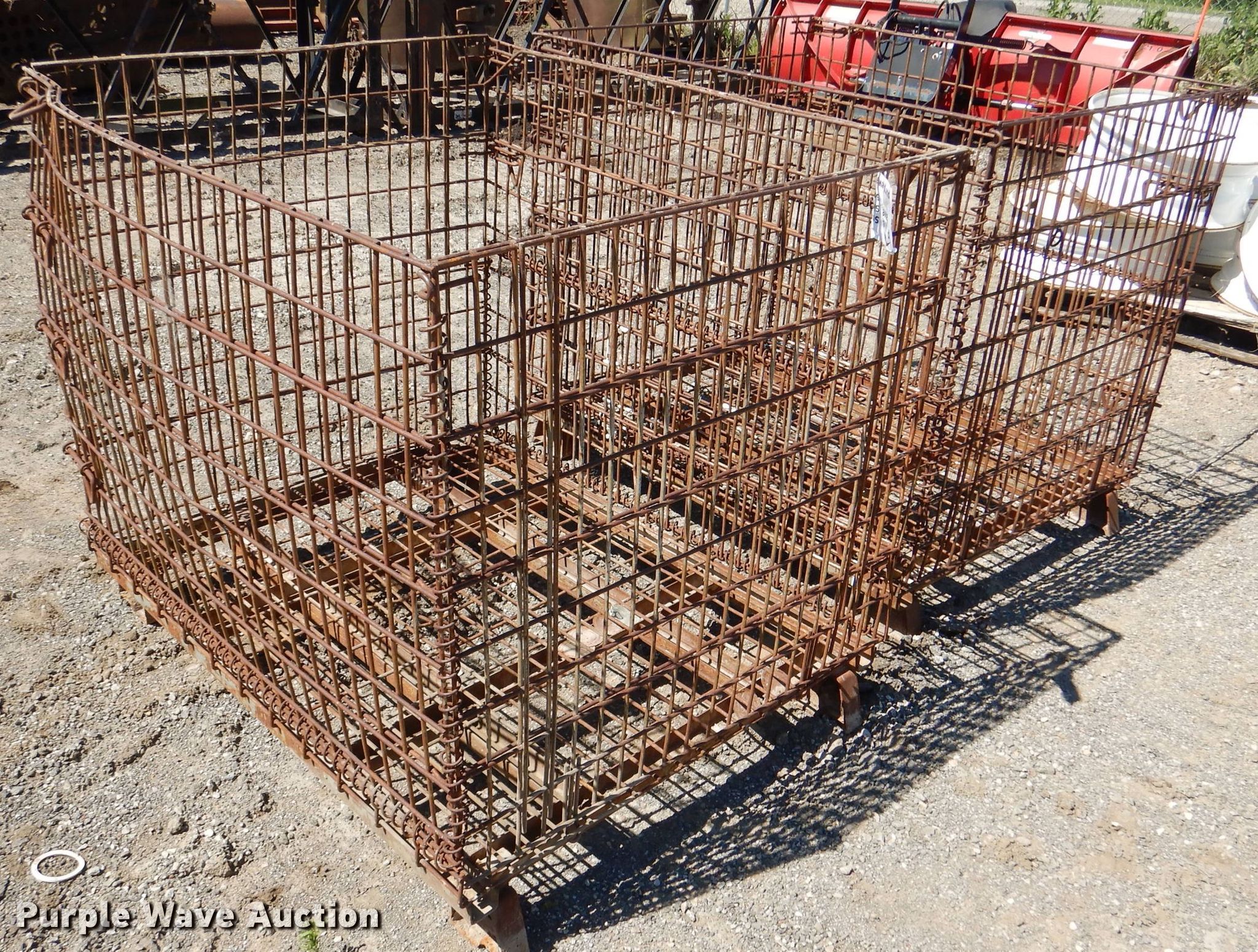 Purple Wave is selling a used Tools in Kansas. This item is a (17) collapsible wire containers with the following: Approx. 48" x 40" x 43" overall