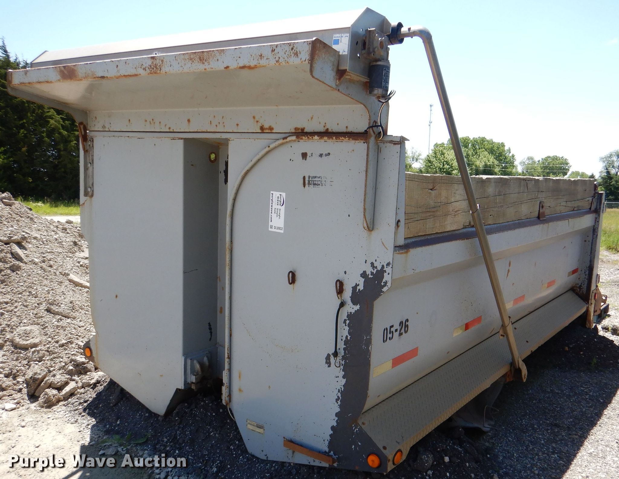 Purple Wave is selling a used Truck Part and Attach. in Kansas. This item is a Midland dump bed with the following: 15'L x 101"W, 42" side height, 12" board height, Rams: Single, End gate: Air, Serial 0308315