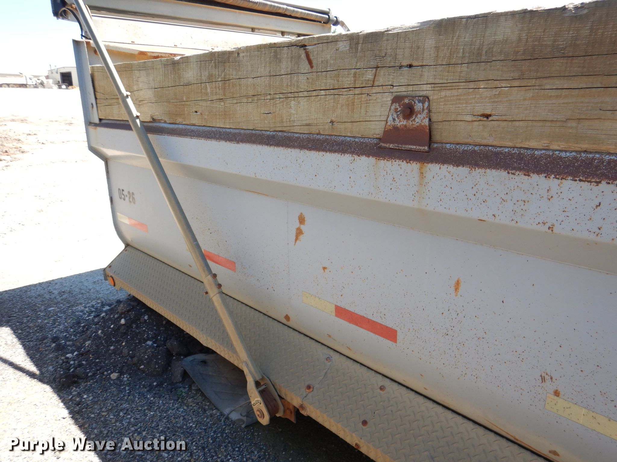 Midland dump bed. 15'L x 101"W, 42" side height, 12" board height, Rams: Single, End gate: Air, Serial 0308315. Jackson County Noxious Weed. 24569 Us-75 Hwy. Holton, KS 66436