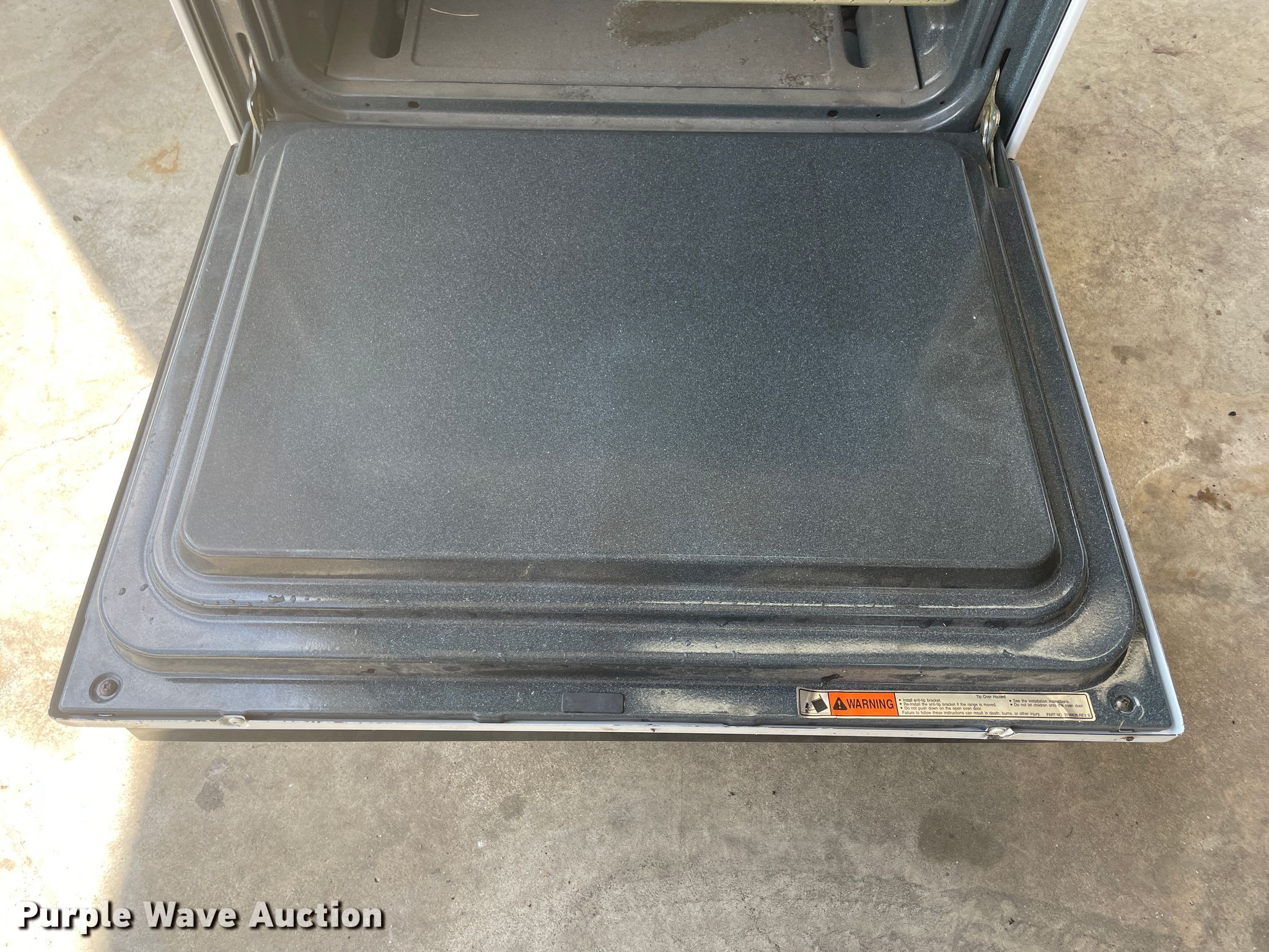 Purple Wave is selling a used Appliances in Oklahoma. This item is a Roper FGP310EW stove with the following: Gas operated, 120V, Serial: RG3020025