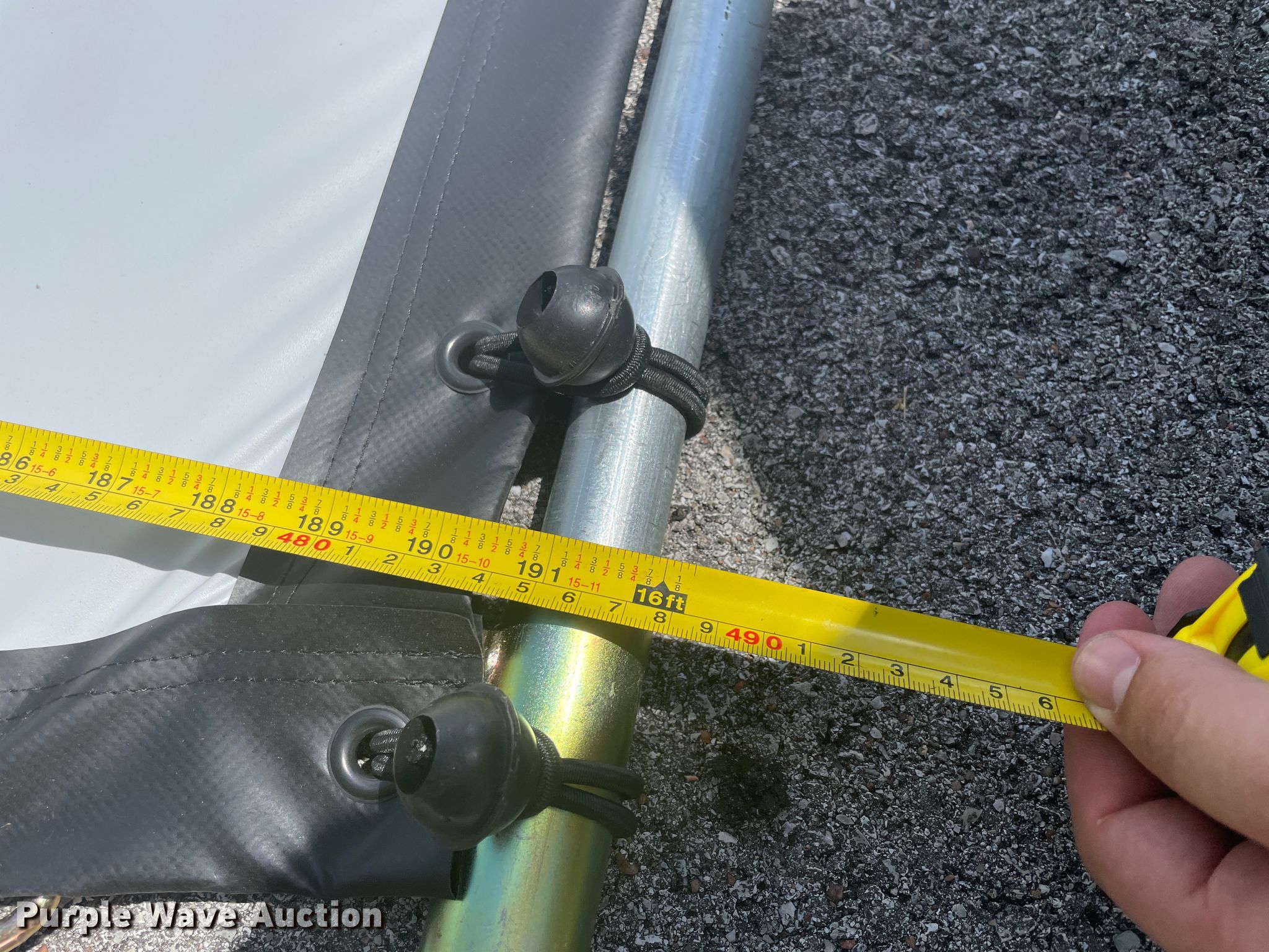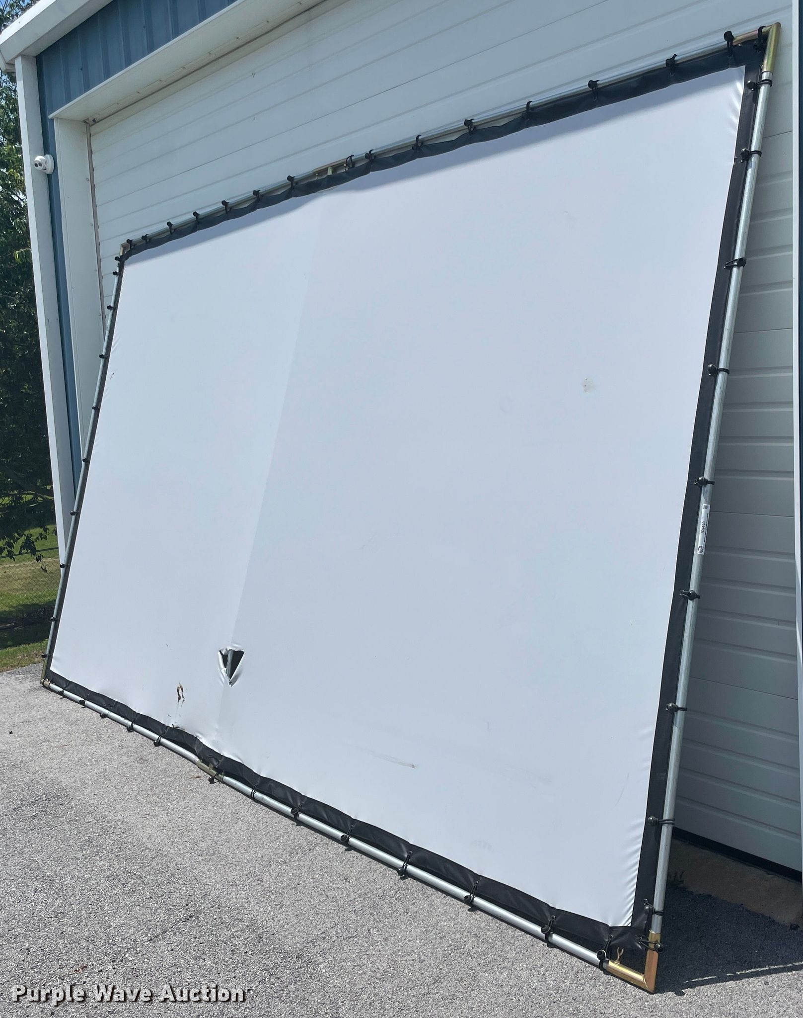 Purple Wave is selling a used Office Supplies and Equip. in Oklahoma. This item is a Projector screen with the following: 114" x 192", Screen torn