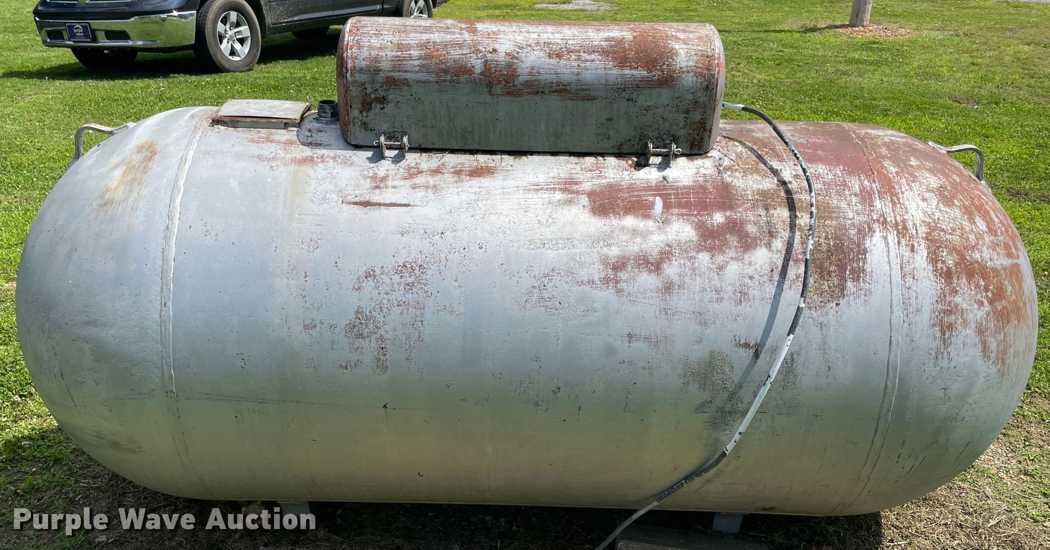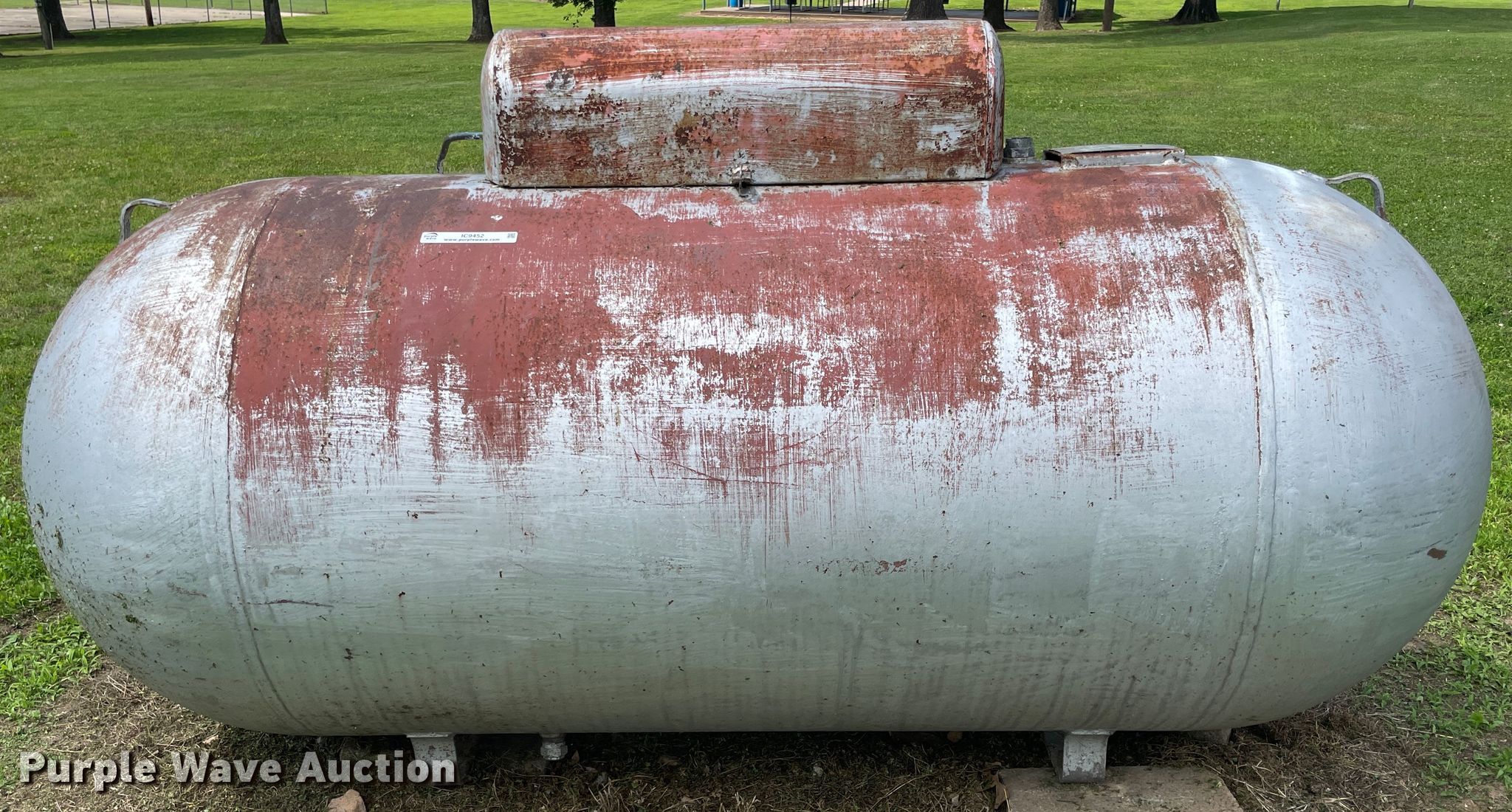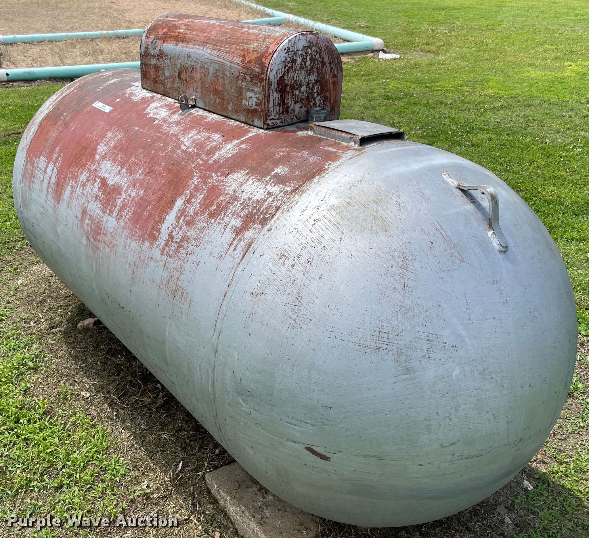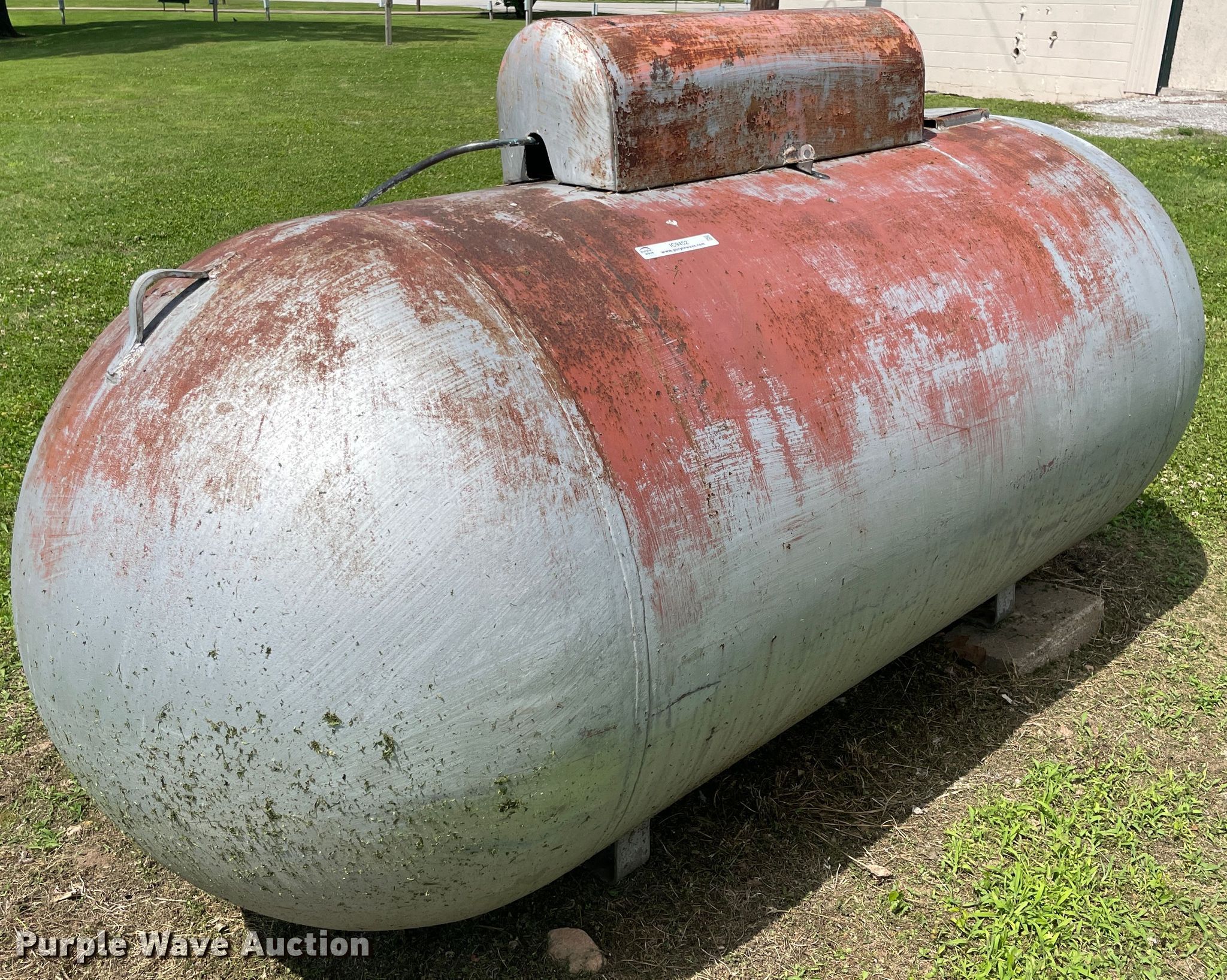 Purple Wave is selling a used Fuel and Lube in Oklahoma. This item is a 1959 propane tank with the following: 8'L x 4'H, 499 gallon capacity, Serial: 40767