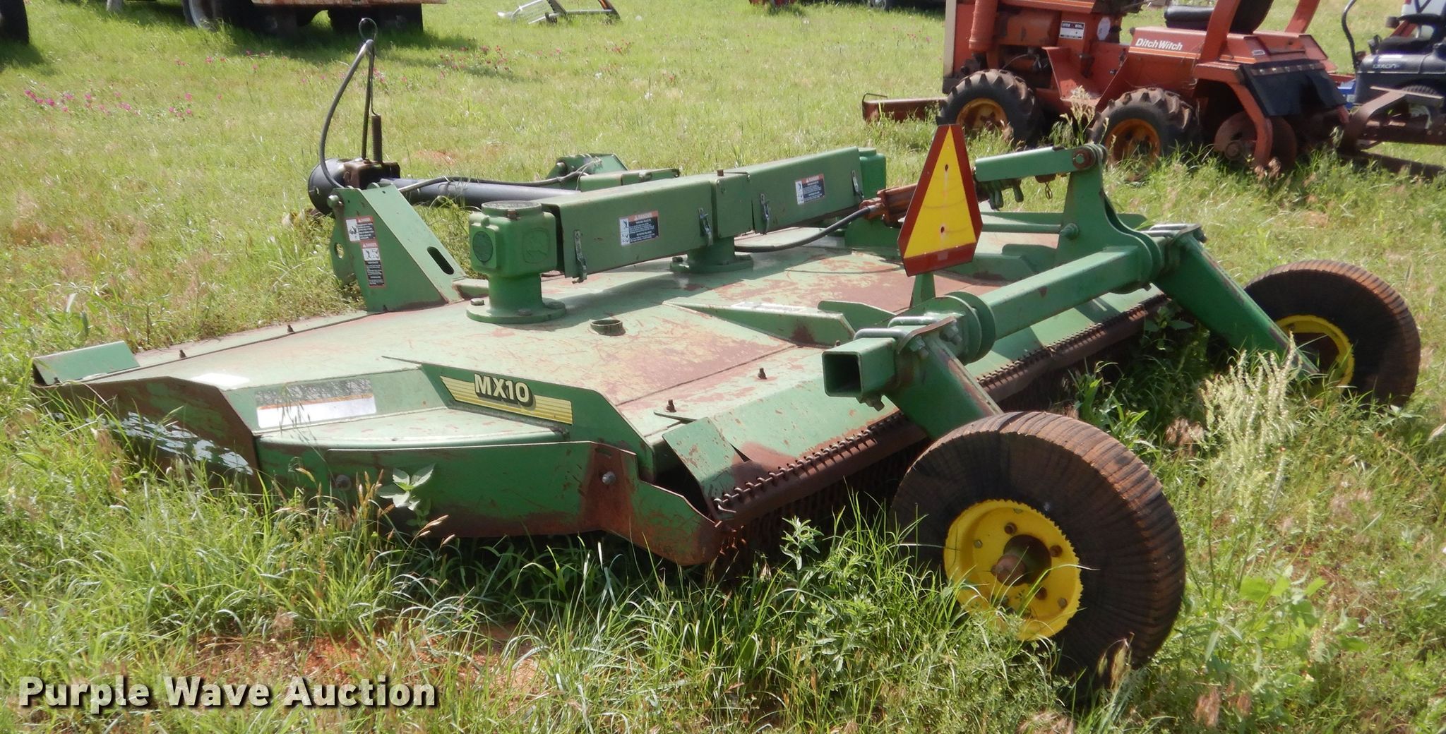 Purple Wave is selling a used Mower, Cutter, Shredder in Oklahoma. This item is a John Deere MX10 rotary mower with the following: Width: 10', Hydraulic lift, PTO: 540