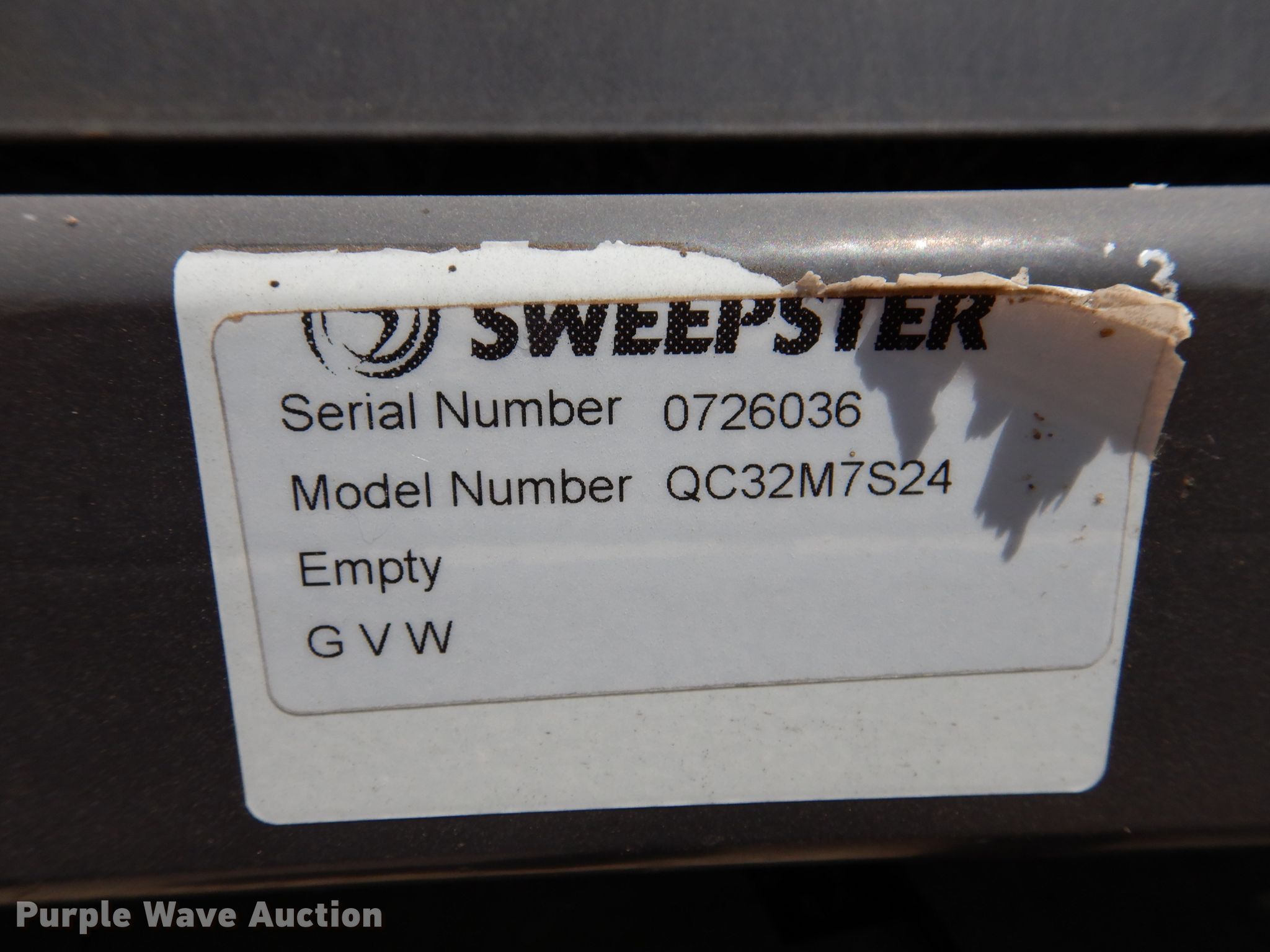 Purple Wave is selling a used Broom in Iowa. This item is a Sweepster 85"W broom with the following: Serial: 726036