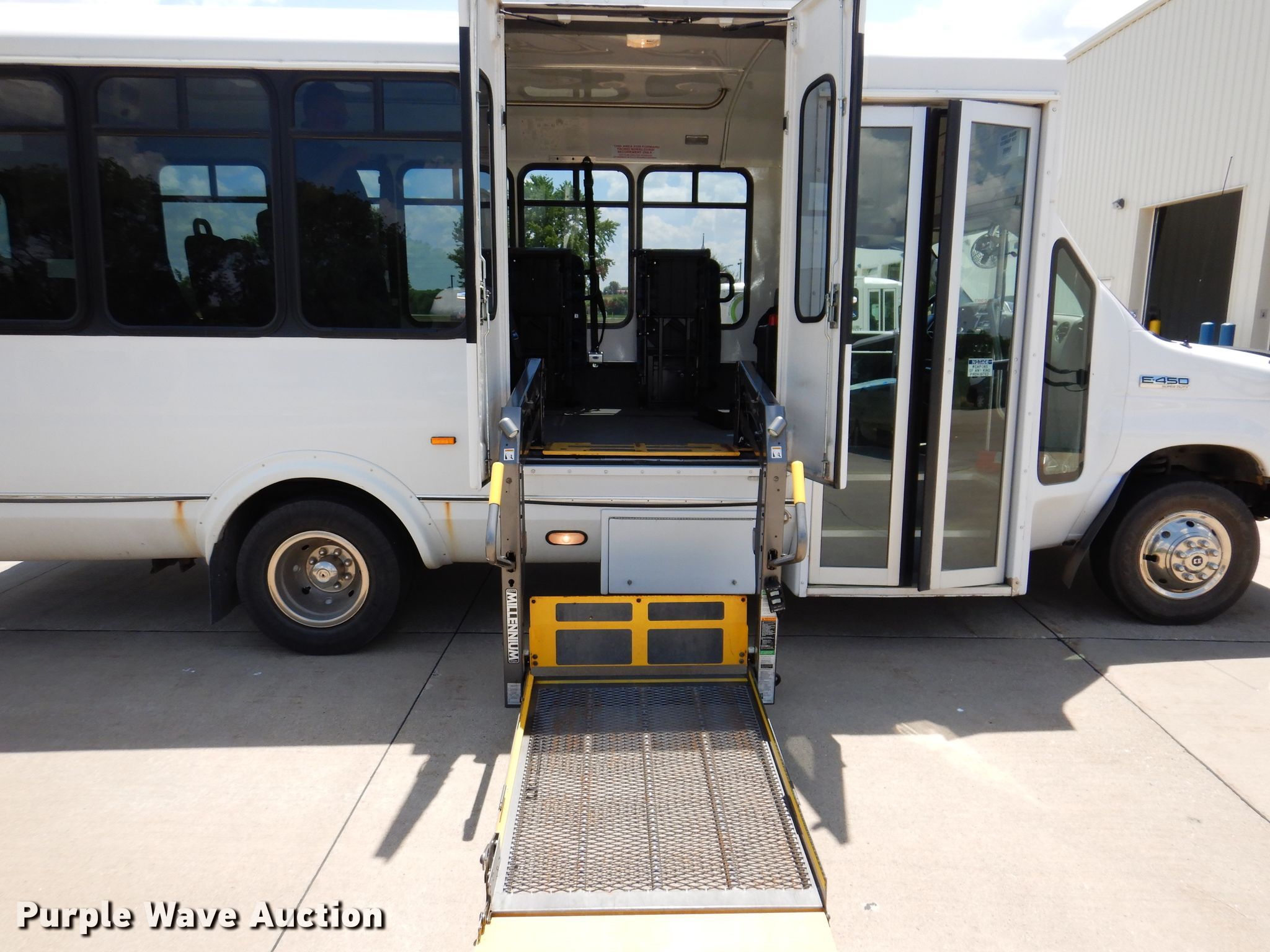 2009 Ford E450 Super Duty shuttle bus. 121,876 miles on odometer. Engine Displacement: 6.8L V10 SOHC 20V, Cylinders: 10, Fuel type: Gas. Transmission Automatic. Chassis Axles: Single, Brakes: Hydraulic, GVWR: 14,500 lbs. Interior AC, Heat, Heated mirrors, Cruise control, Seats Adult seats: 13, Wheelchair lift. Tires Size: LT225/75R16, Brand: Goodyear. Iowa title. Seller is a government entity who will be assigning and distributing the title. Please contact the seller for distribution questions. 1FDFE45S49DA20704. Region XII COG. 1009 E Anthony St. Carroll, IA 51443