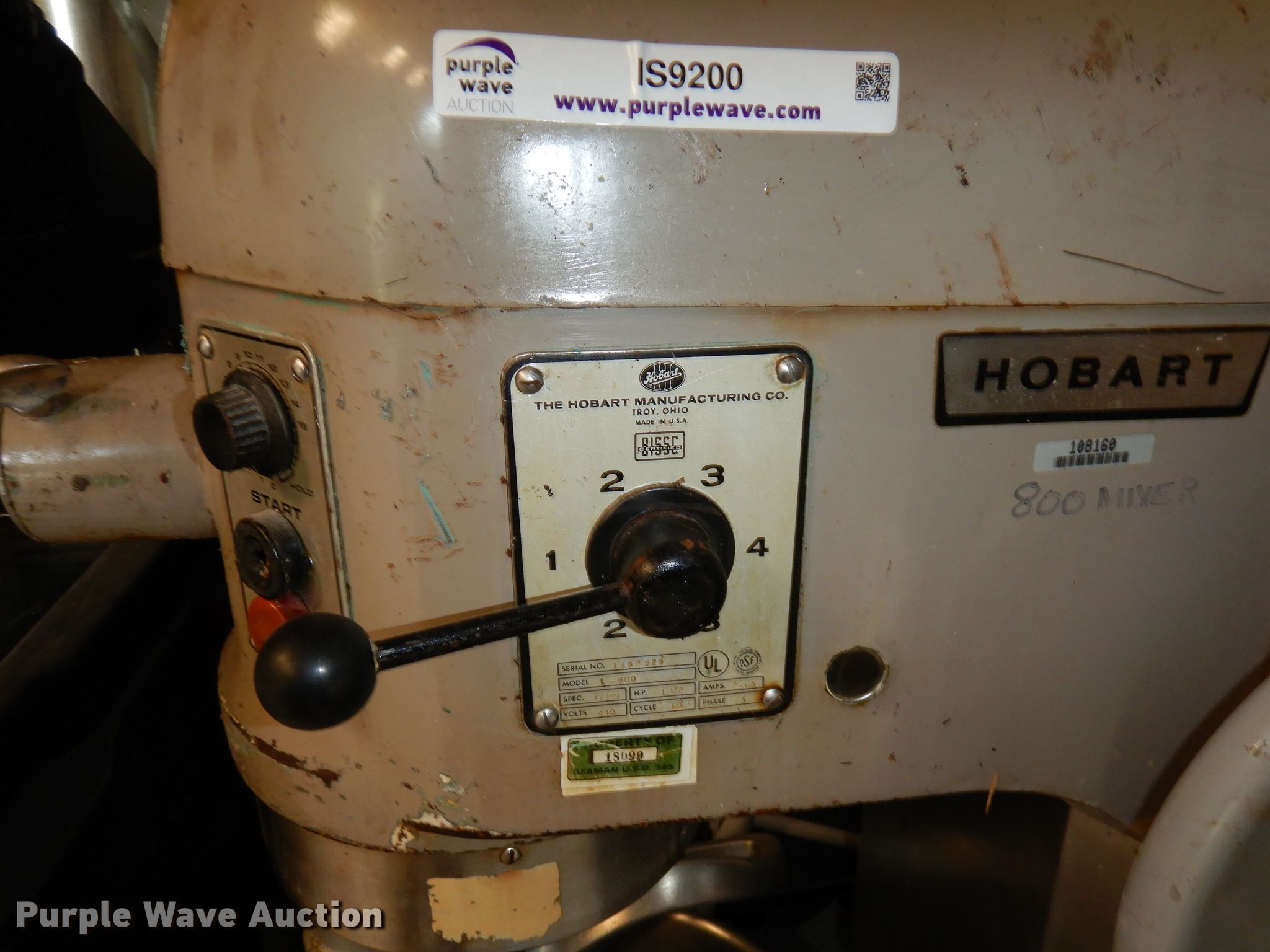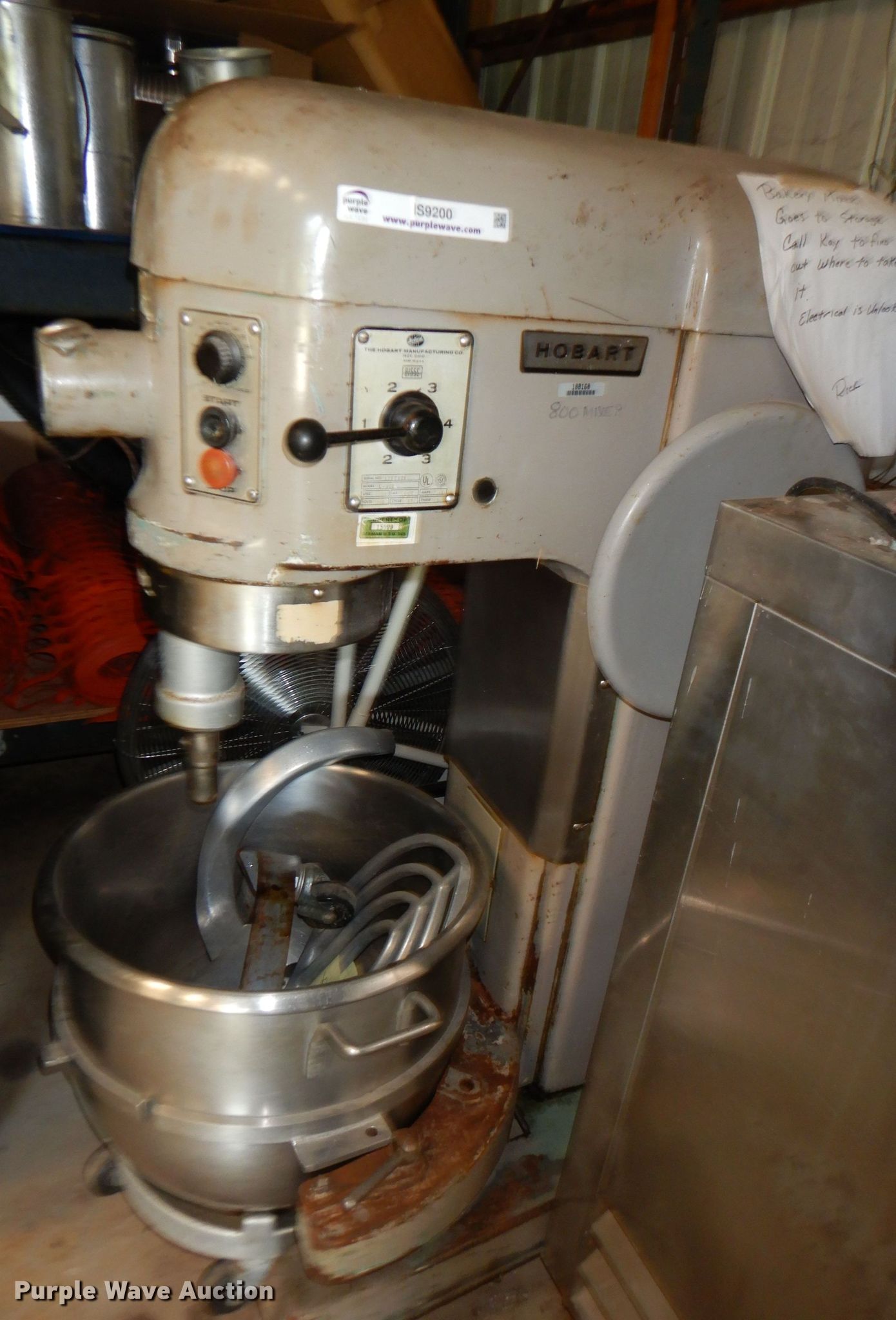 Purple Wave is selling a used Restaurant Equip. in Kansas. This item is a Restaurant equipment with the following: Hobart L800 mixer, Bowl, Bread paddle, Paddle, Three phase, Serial 1782929, NorLake cooler, Salad buffet table, Sneeze guard