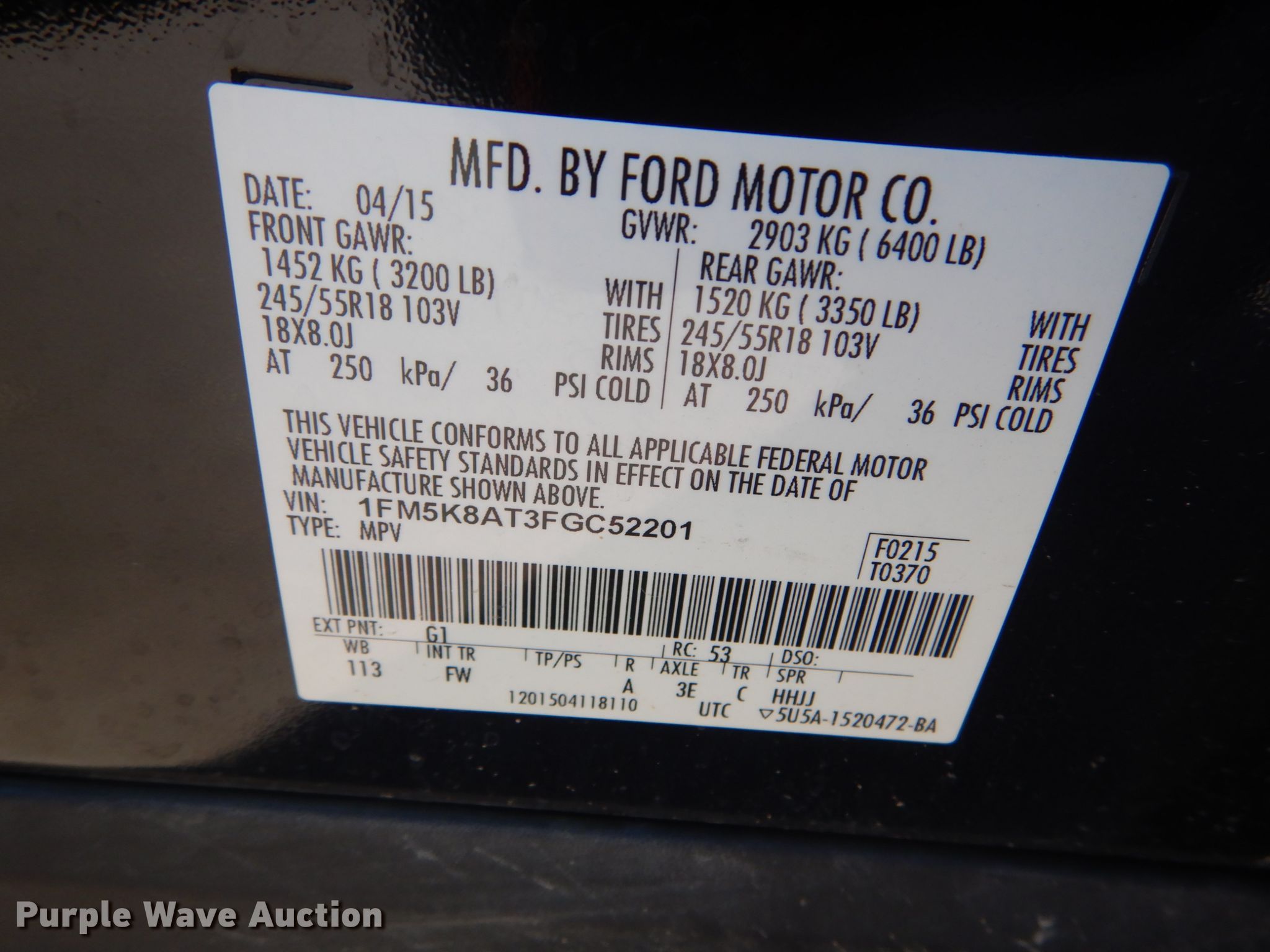 2015 Ford Explorer Police SUV. 94,680 miles on odometer, Engine hours: 4,735. Engine Displacement: 3.5L V6 DOHC 24V, Cylinders: 6, Fuel type: Gas. Transmission Automatic, All wheel drive. Interior AC, Heat, Seat: Power driver, Power windows, Power locks, Cruise control. Tires Size: 245/55R18. Notes Dash warning indicator: Check engine. Missouri title. Title distribution may be delayed up to 14 days from verification of funds. 1FM5K8AT3FGC52201. Franklin County Sheriff's Office. 1 Bruns Ln. Union, MO 63084