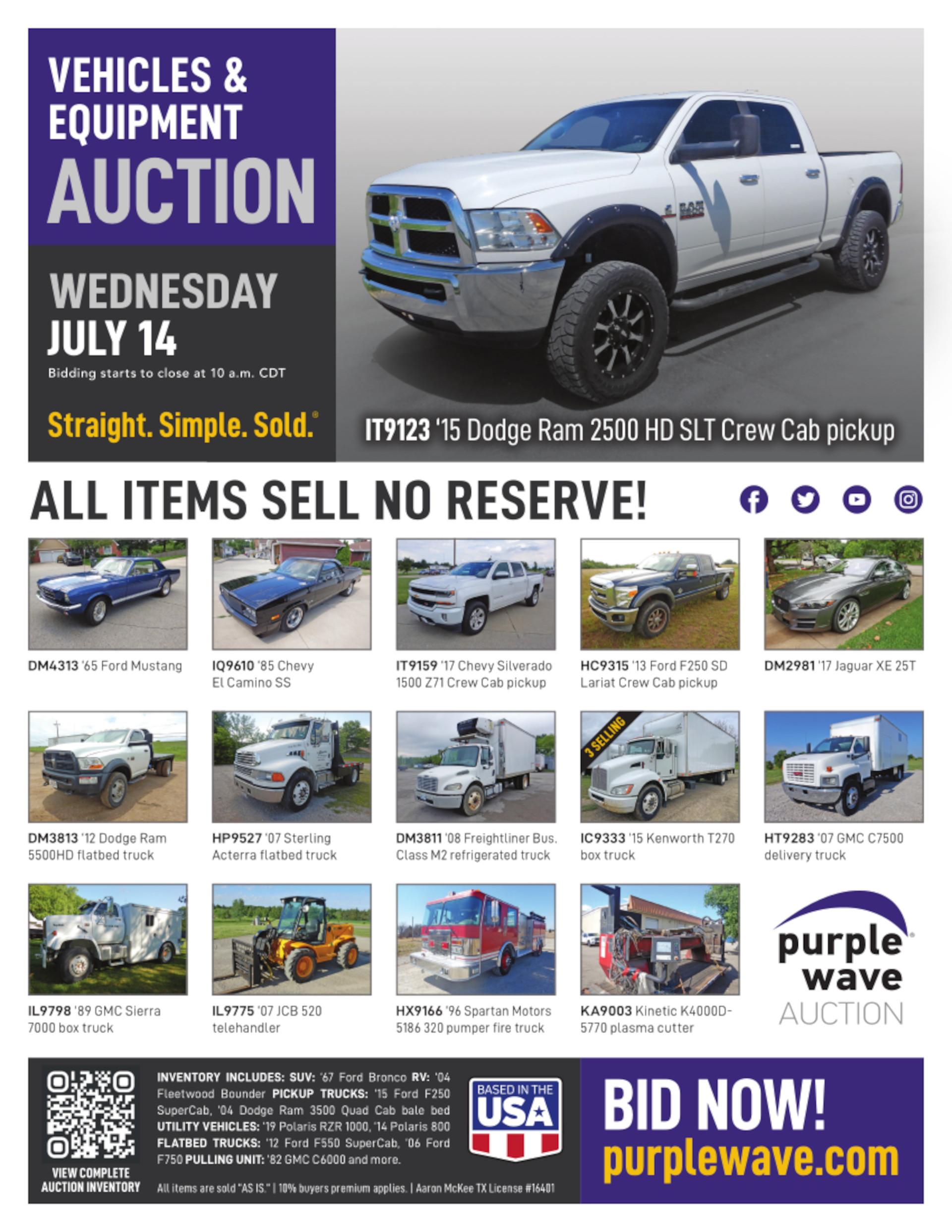 SOLD! Wednesday July 14 Vehicles and Equipment Auction
