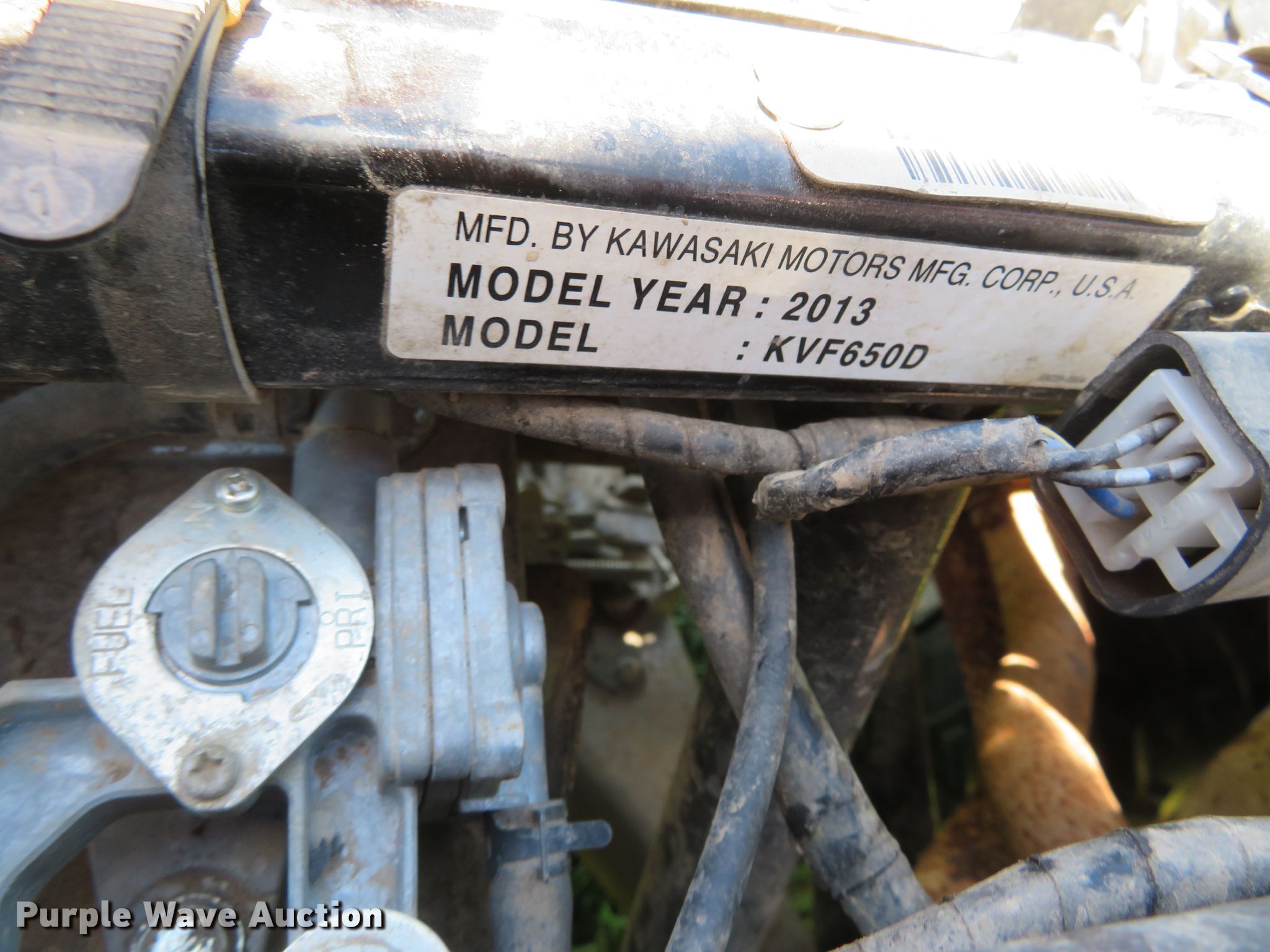2013 Kawasaki 650 Brute Force ATV. 193 miles on odometer, Engine hours: 103. Engine Kawasaki , Displacement: 633cc, Cylinders: 2, Fuel type: Gas, Electric start. Transmission CVT. Chassis Four wheel drive. Operational Grill guard. Tires Front: 25x8R12, Rear: 25x10-12. Title distribution may be delayed up to 14 days from verification of funds. JKAVFED19DB532355. MJH Enterprises L.L.C. 1124 Pcr 630. Perryville, MO 63775