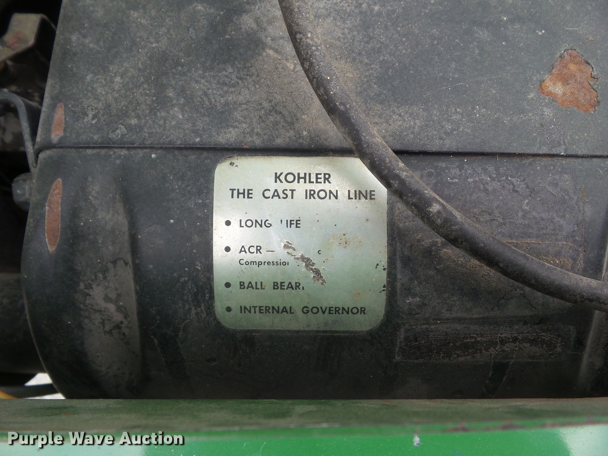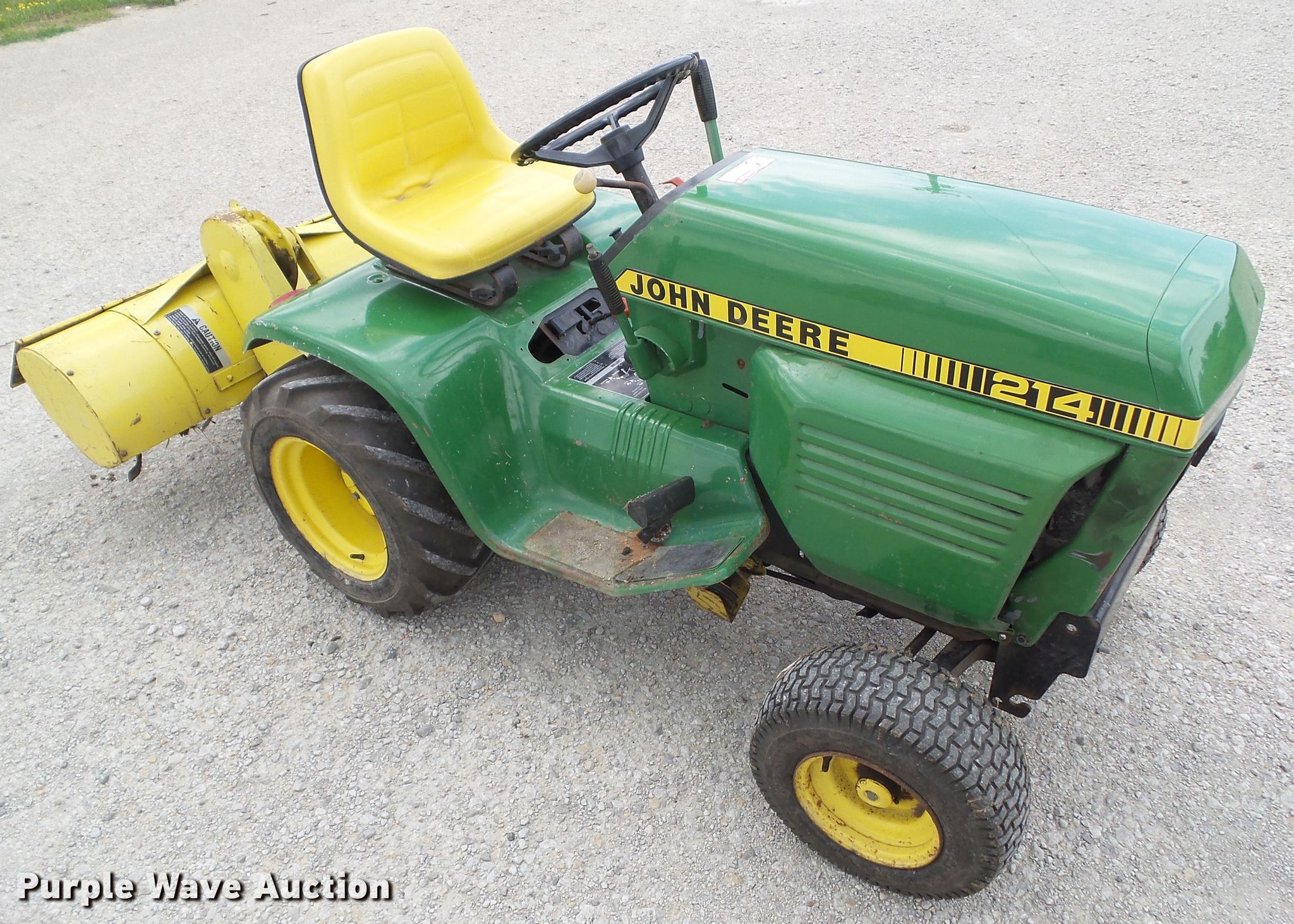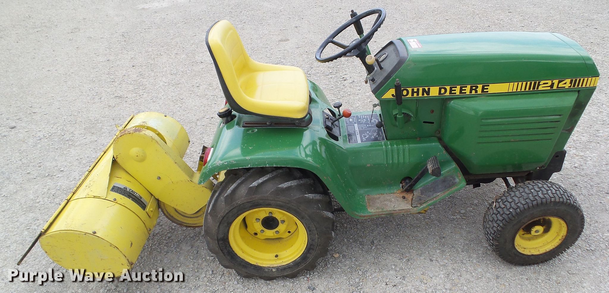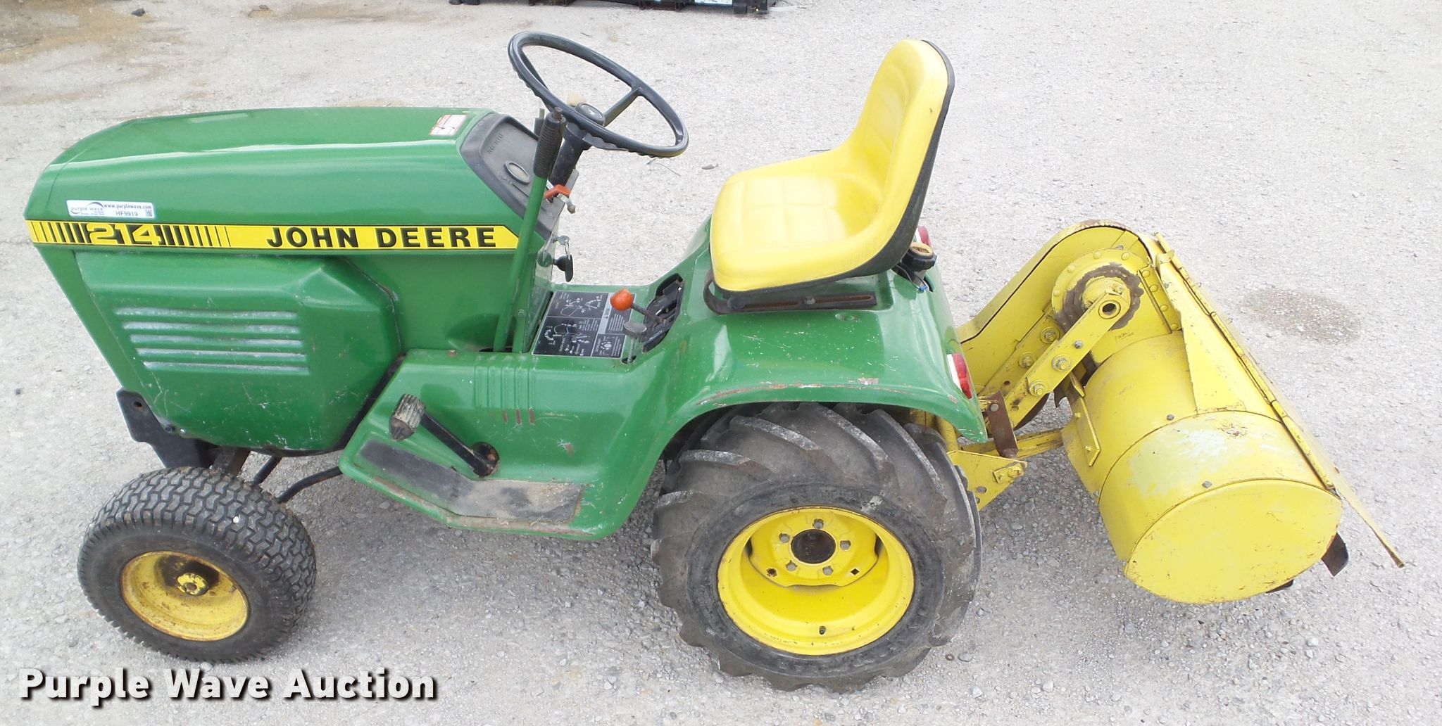 John Deere 214 lawn mower. Serial: 156643M. Engine Kohler, Cylinders: 1, Fuel type: Gas. Transmission Manual, Speed: 4. Operational John Deere F031H Tiller Width: 40". Tires Front: 16x6.50-8, Rear: 23x10.50-12. Cannon Sales & Service. 1304 W South St. Mount Ayr, IA 50854