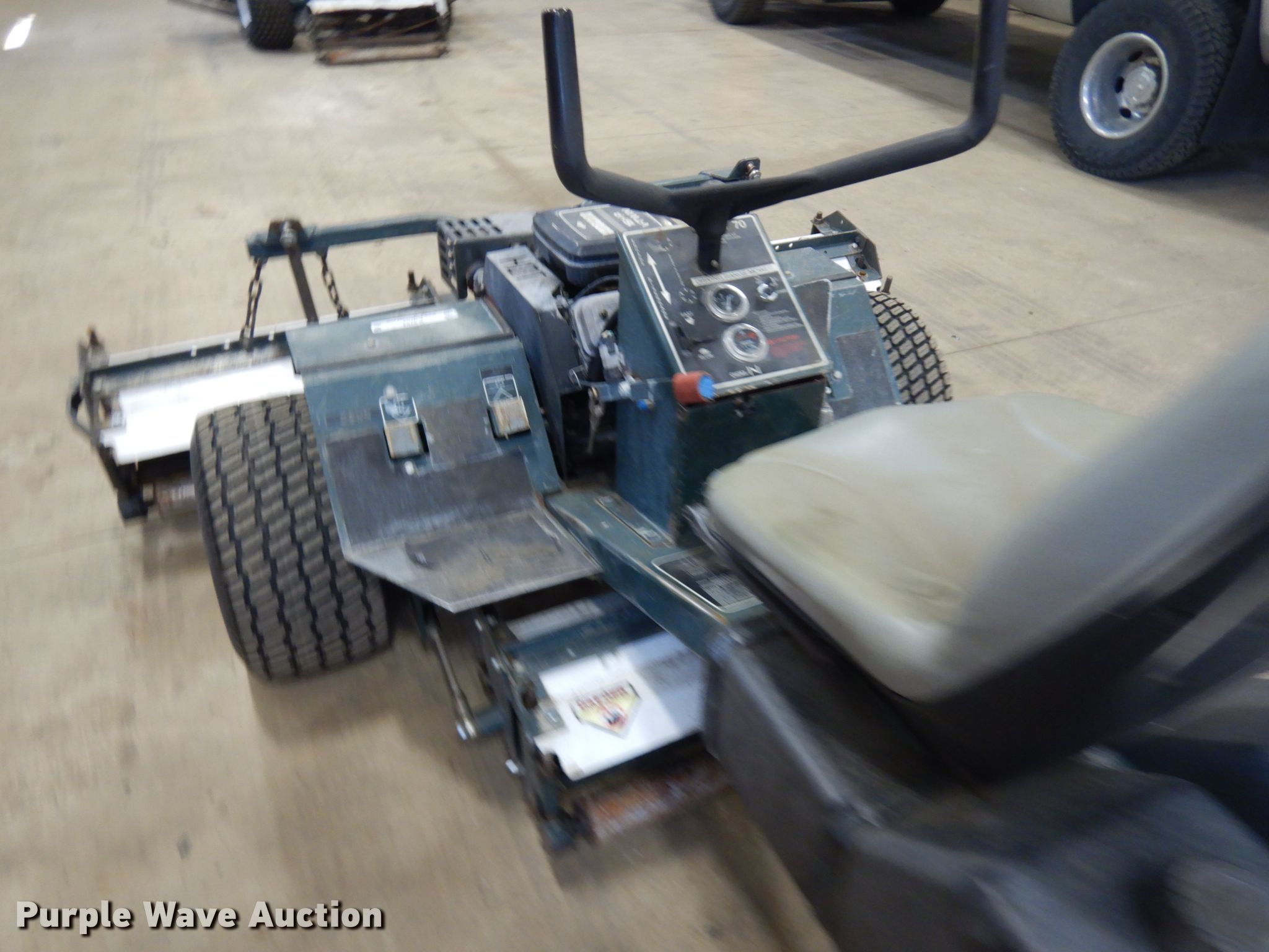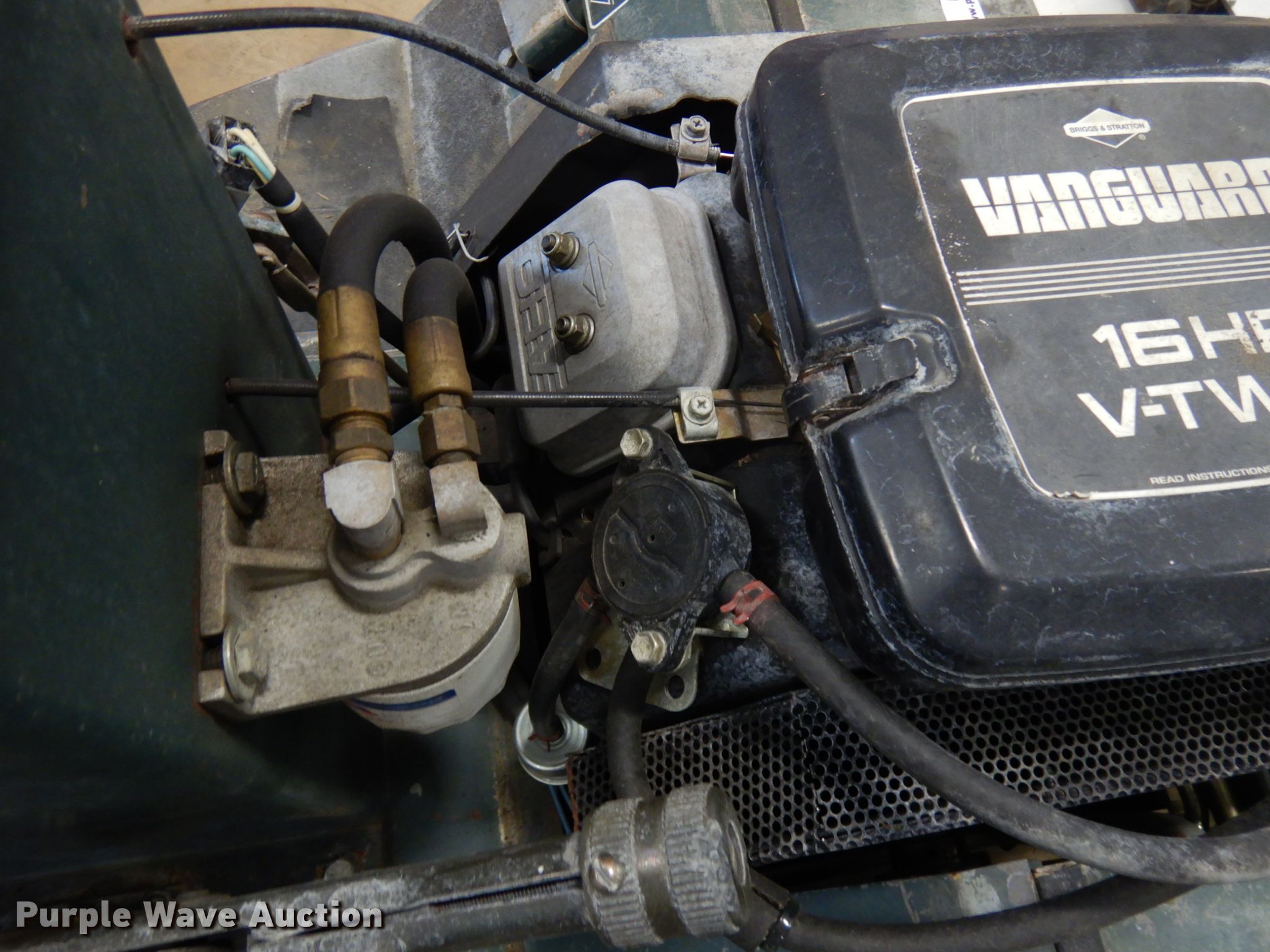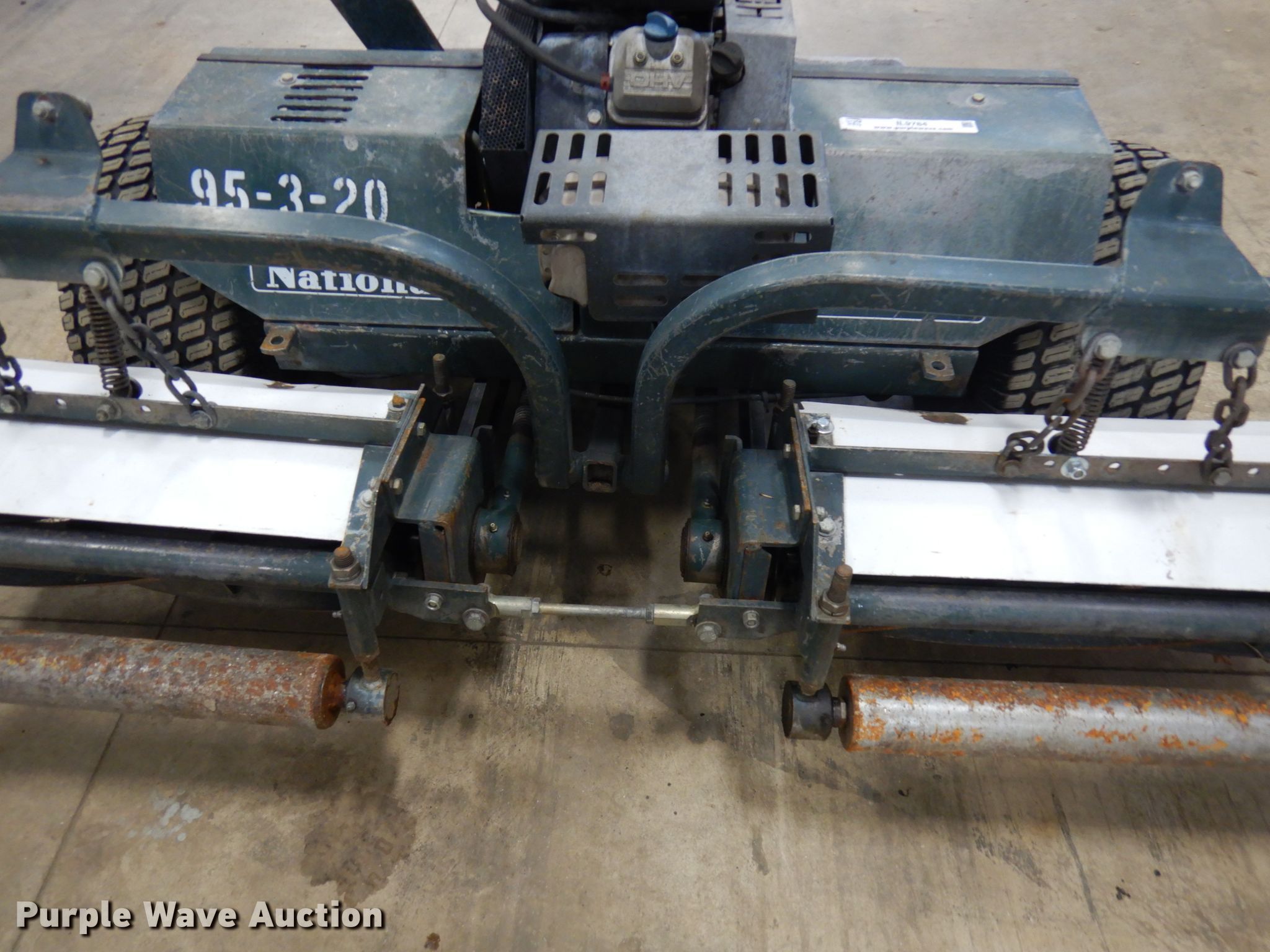 National 70 lawn mower. 4,149 hours on meter, Cutting width: 72", Serial: 1081. Engine Vanguard, Cylinders: 2, Fuel type: Gas. Transmission Hydrostatic. Operational Hydraulic fold decks. Tires Front: 20X10.00-8, Rear: 18X8.50-8. Hutchinson, MN 55350