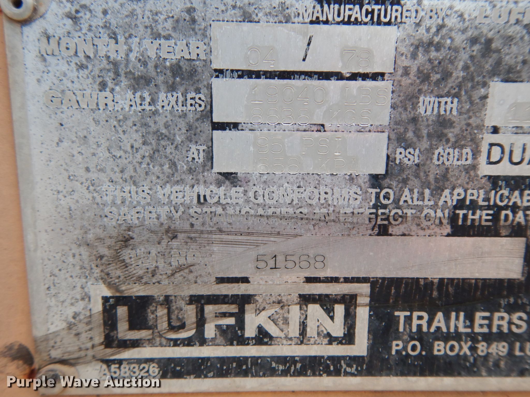 Take a look at this used 1978 Lufkin flatbed trailer being sold on July 15th, 2021 in the SOLD! July 15 Construction Equipment Auction made by Lufkin. Take a look at all of the item information below or take a look at similar auctions for Trailers.
