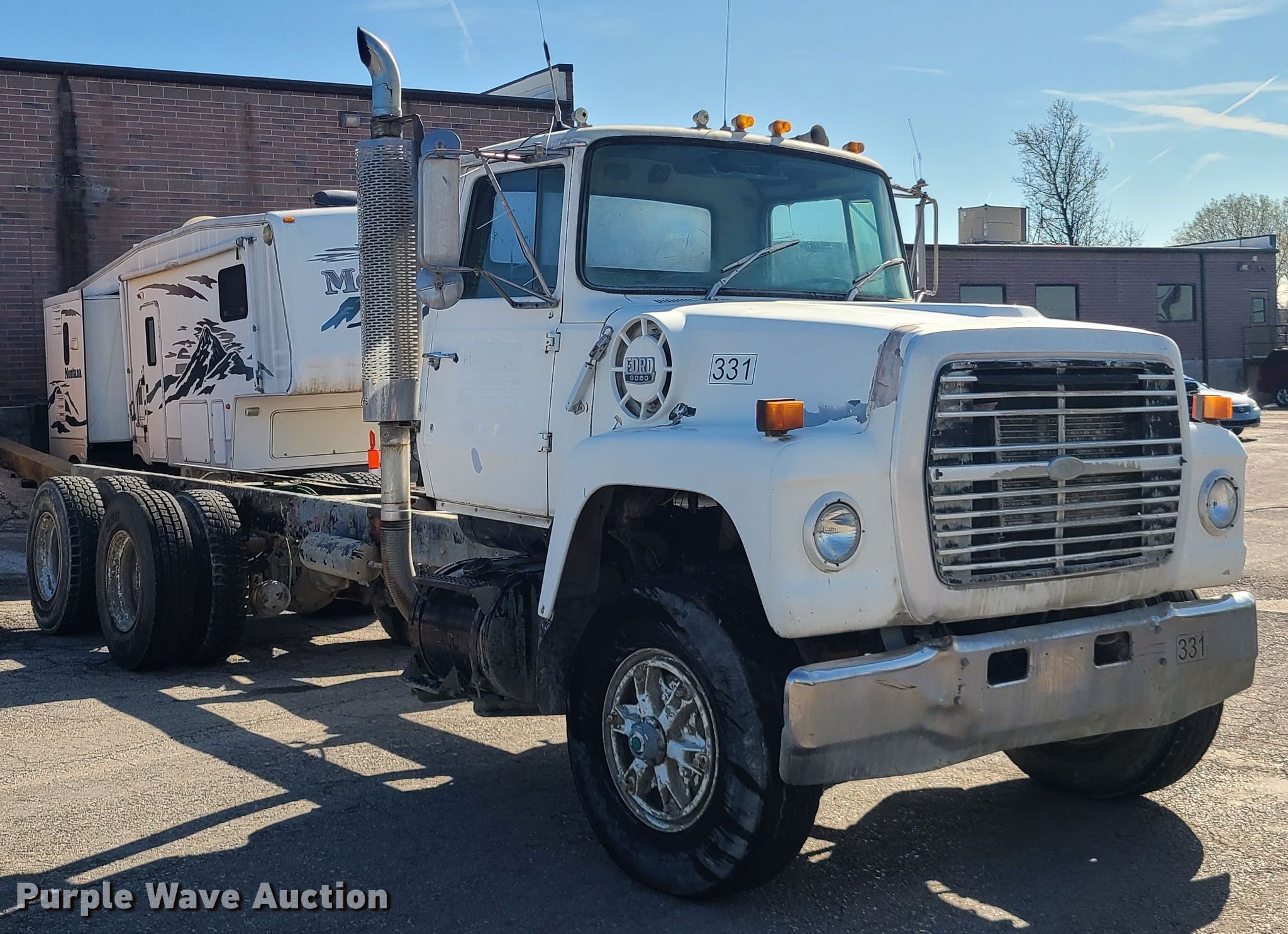 This 1985 Ford LT8000 truck cab and chassis will sell to the highest bidder regardless of price.
