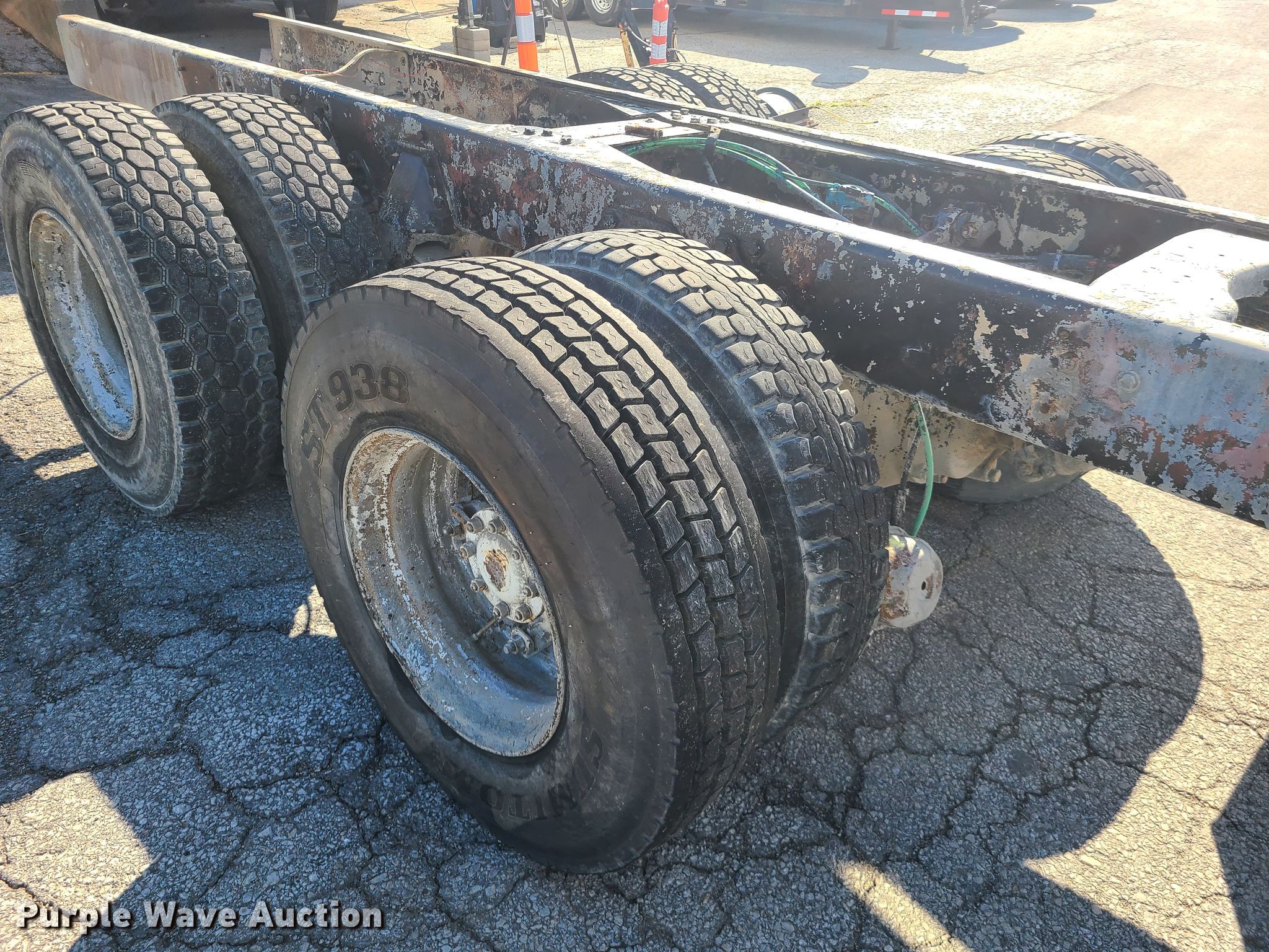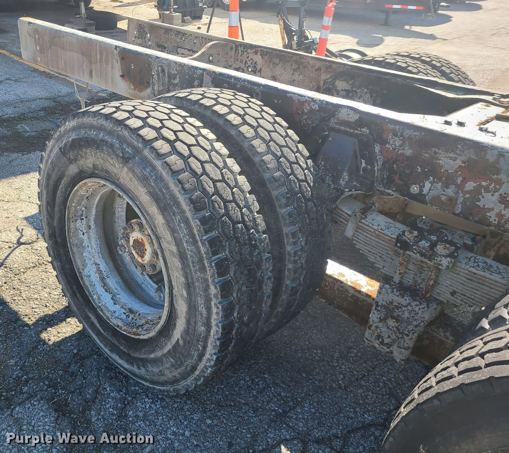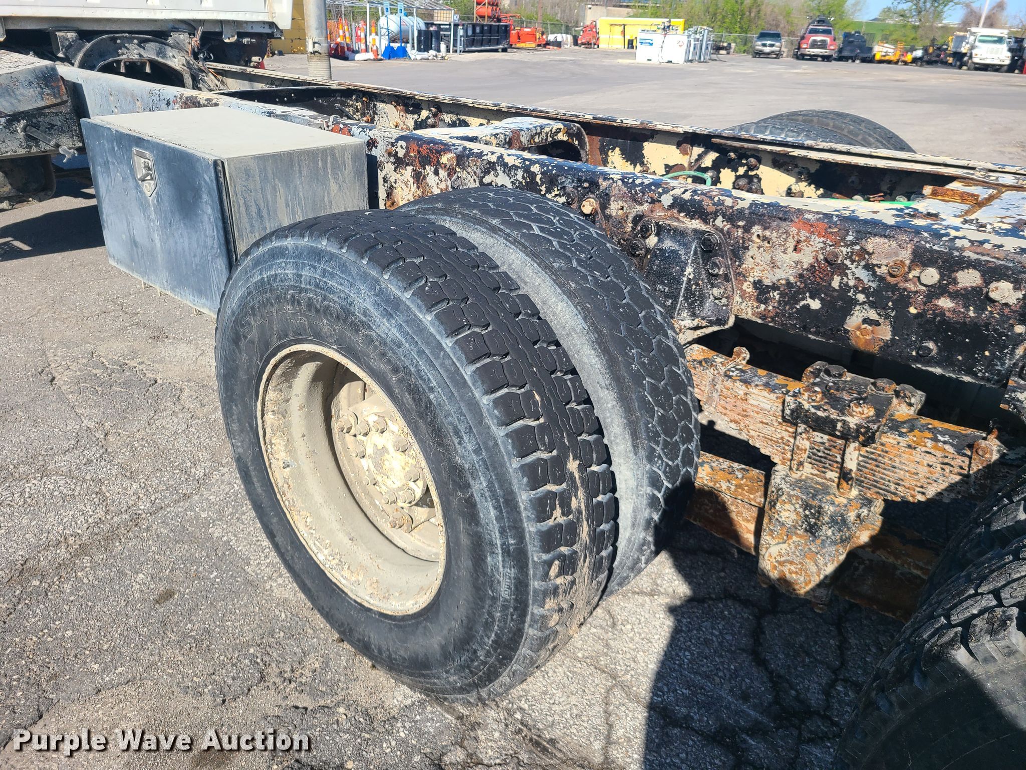 1985 Ford LT8000 truck cab and chassis. 47,507 miles on odometer. Engine Cummins, Displacement: 10.4L, Cylinders: 8, Fuel type: Diesel. Transmission Manual. Chassis Axles: Tandem, Suspension: Spring, Brakes: Air, Truck chassis: 22', GVWR: 50,000 lbs. Interior Heat. Tires Front: 315/80R22.5, Rear: 11R22.5. Missouri title. 1FDYU80U4FVA33535. Seal-O-Matic Paving. 2601 NW Tullison Rd. Riverside, MO 64150