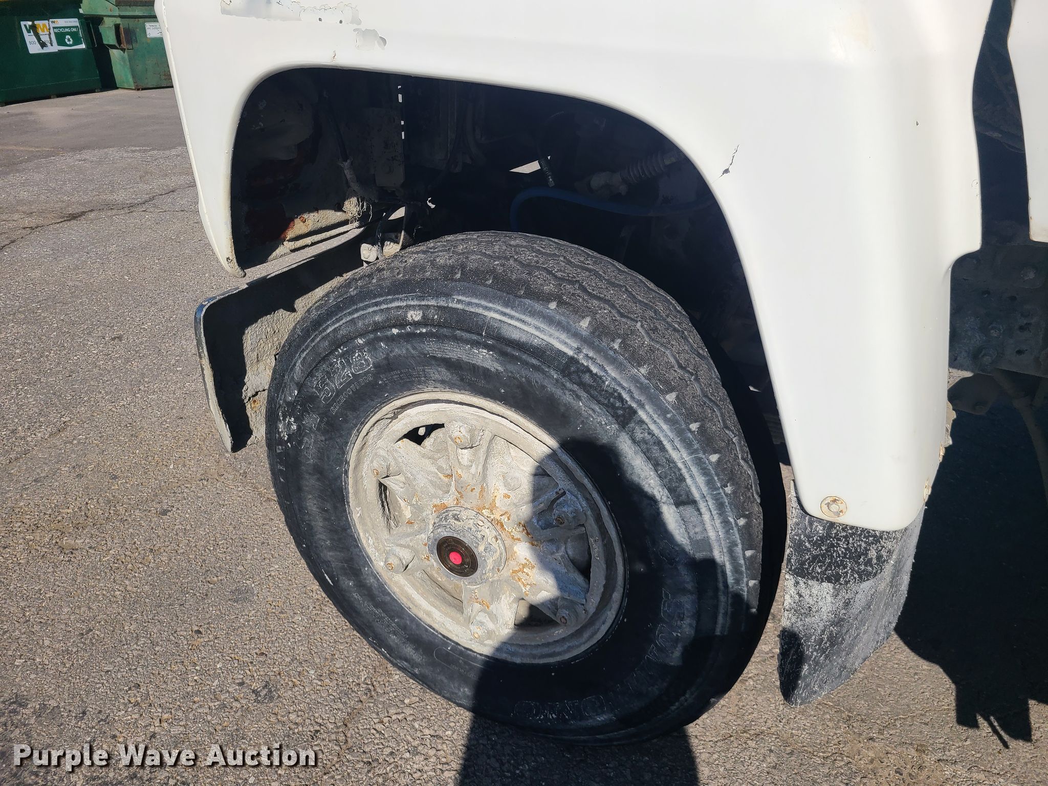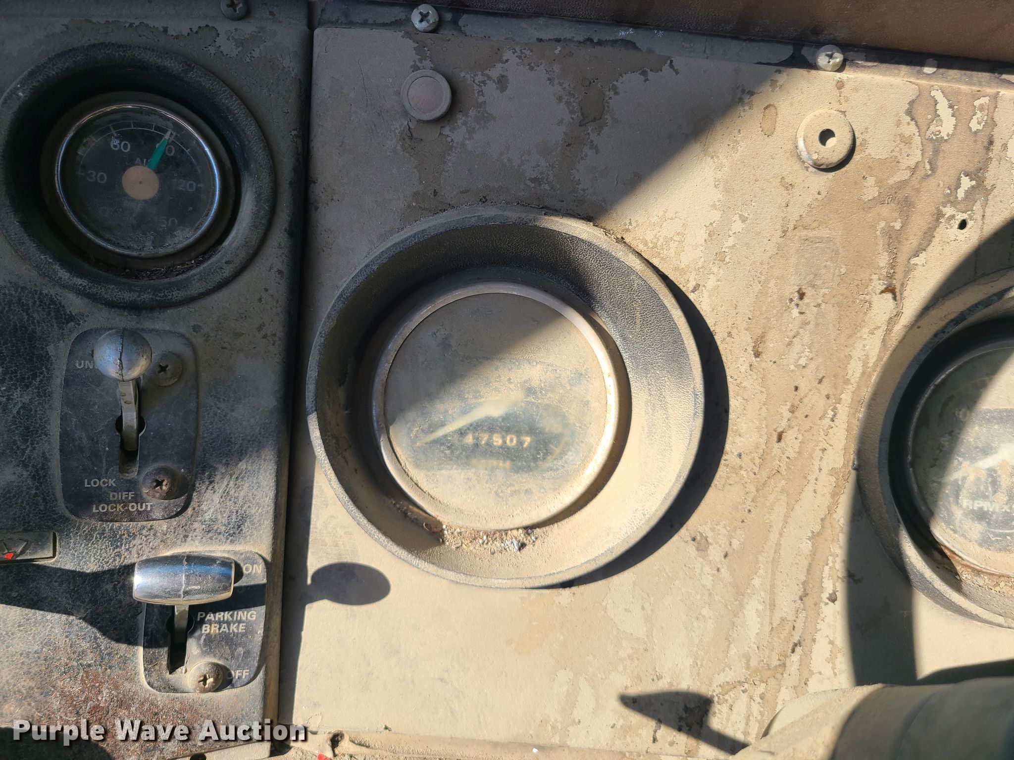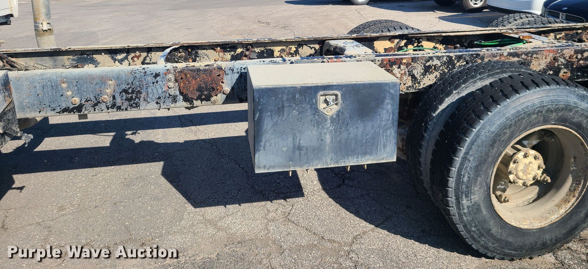 1985 Ford LT8000 truck cab and chassis. 47,507 miles on odometer. Engine Cummins, Displacement: 10.4L, Cylinders: 8, Fuel type: Diesel. Transmission Manual. Chassis Axles: Tandem, Suspension: Spring, Brakes: Air, Truck chassis: 22', GVWR: 50,000 lbs. Interior Heat. Tires Front: 315/80R22.5, Rear: 11R22.5. Missouri title. 1FDYU80U4FVA33535. Seal-O-Matic Paving. 2601 NW Tullison Rd. Riverside, MO 64150