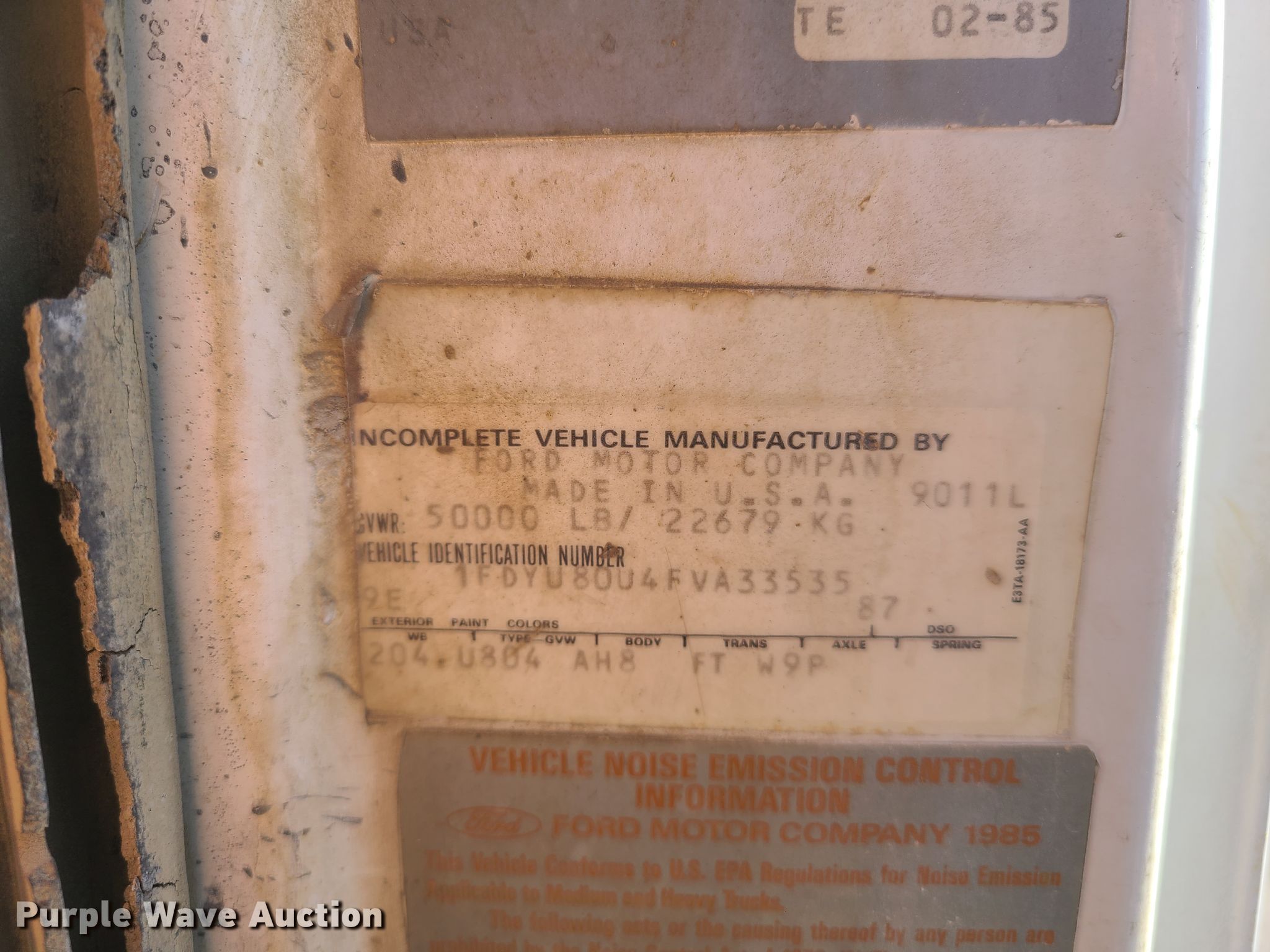 Purple Wave is selling a used Truck Chassis in Missouri. This item is a 1985 Ford LT8000 truck cab and chassis with the following: 47,507 miles on odometer