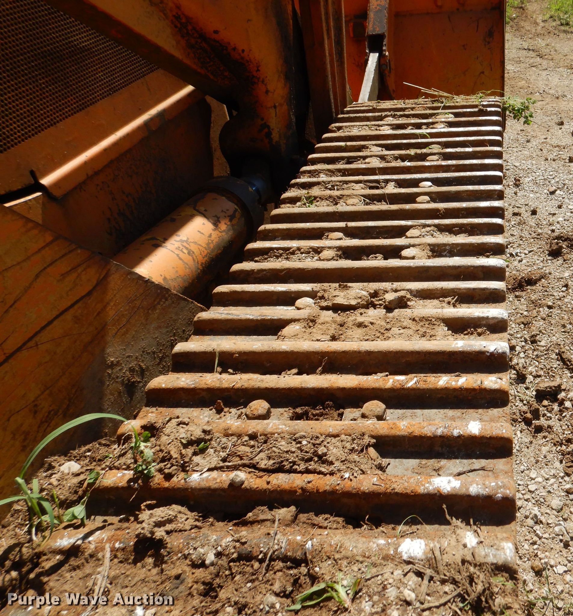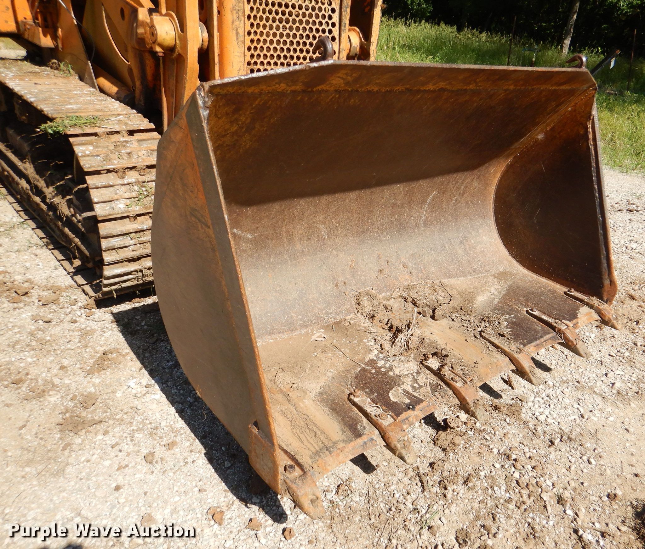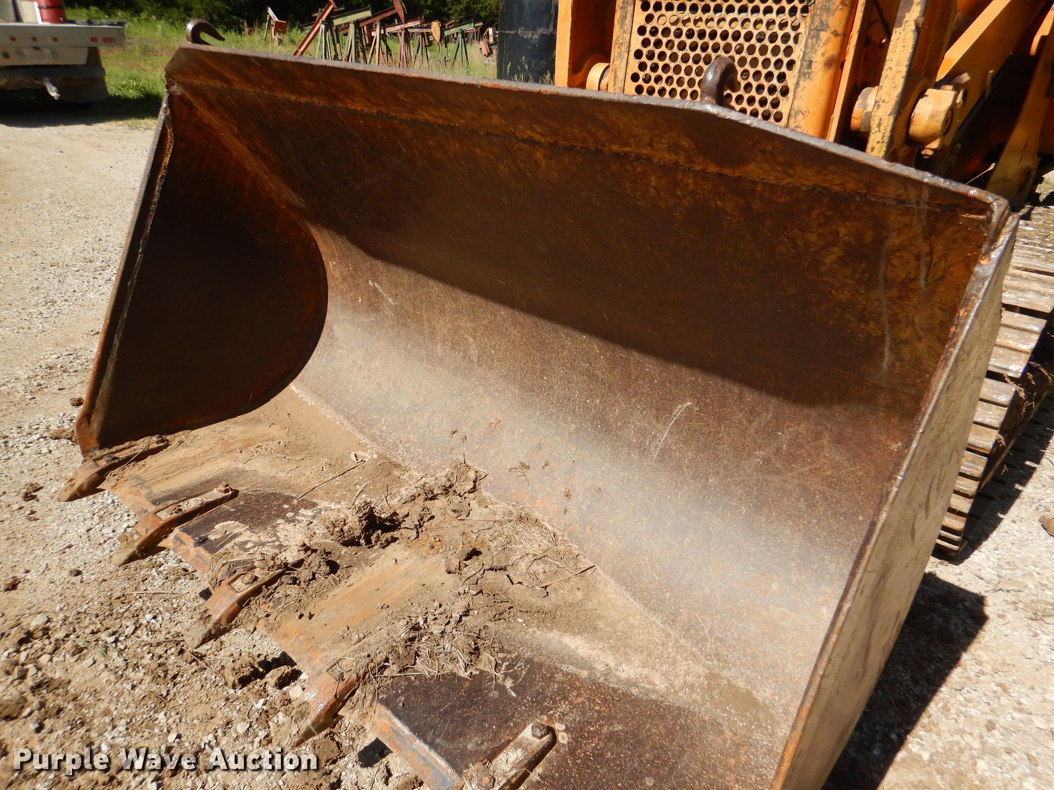 1985 International 100E track loader. 890 hours on meter, Serial: 4490014U009503. Engine International, Cylinders: 4, Fuel type: Diesel. Transmission Powershift, 3F - 3R. Operators station OROPS. Operational Bucket Width: 67", Cutting edge: Weld-on, Teeth: 6. Tracks Width: 13", Grouser pads: Triple. Bobcat Oilfield Service Inc.. Wellsville, KS 66092