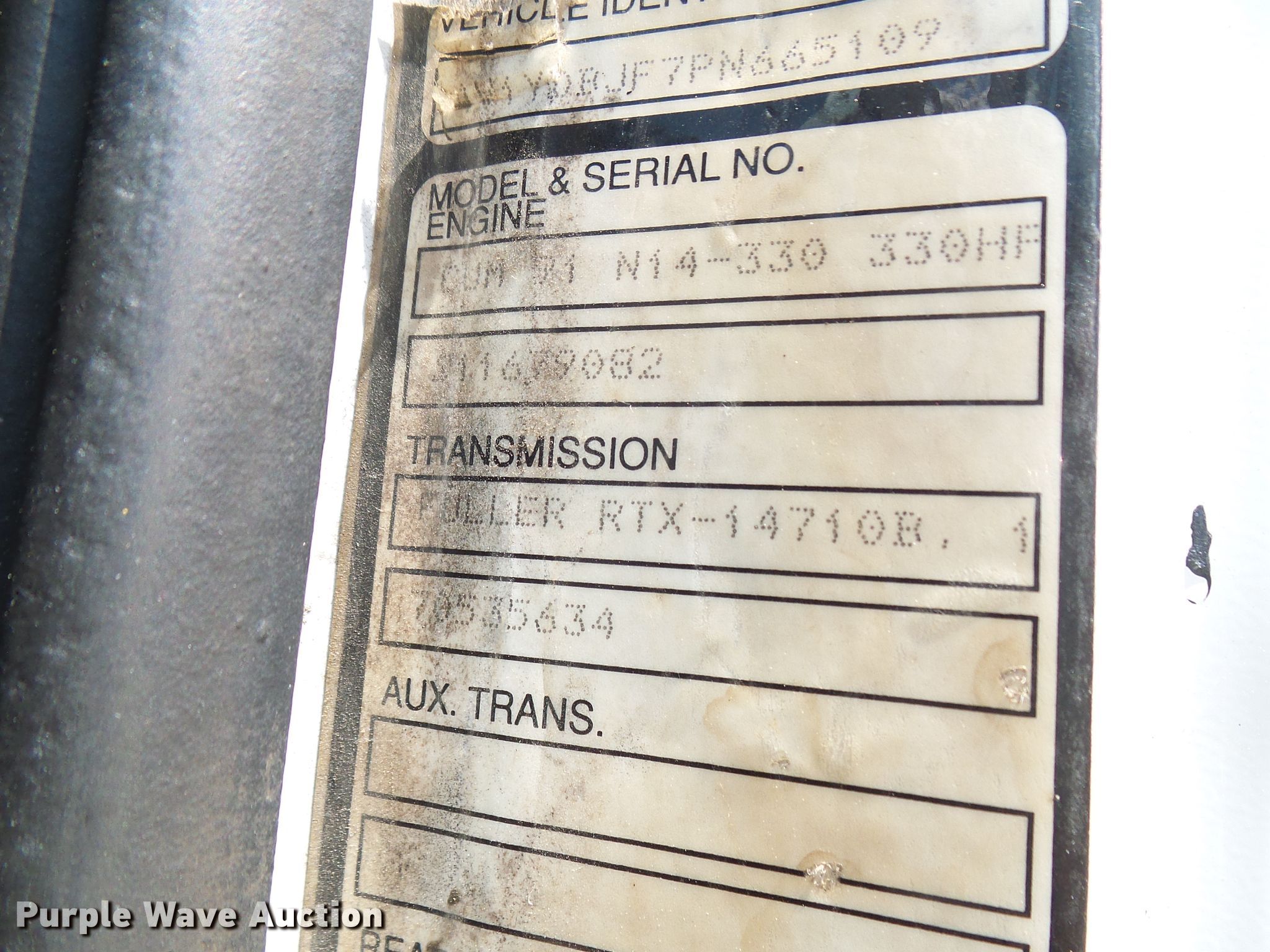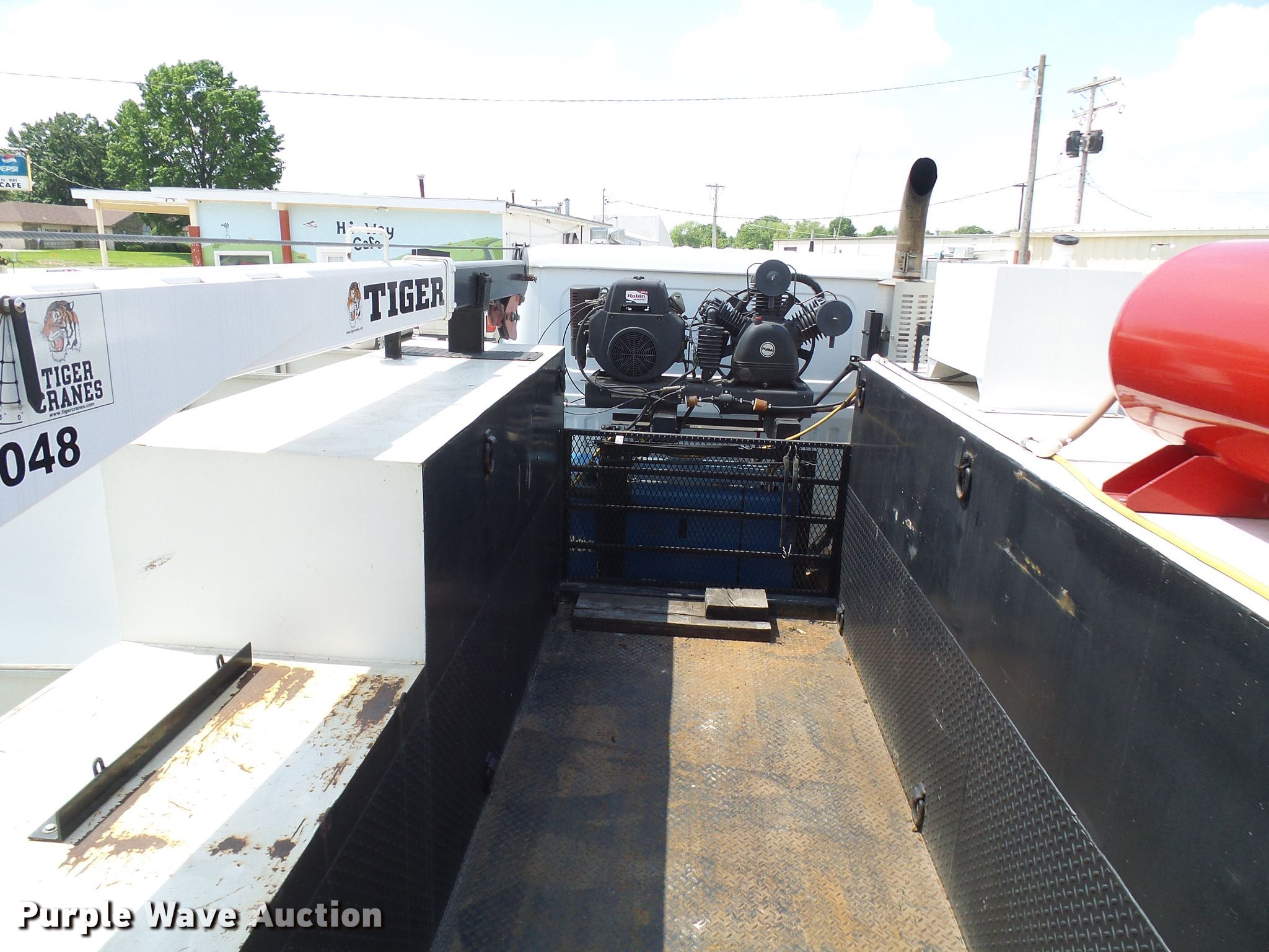 1993 White GMC WIM utility / service truck. 3,549 miles on odometer, Engine hours: 2,115. Engine Cummins N14, Cylinders: 6, Fuel type: Diesel. Transmission Eaton Fuller, Manual, Speed: 10. Chassis Axles: Tandem, Suspension: Spring, Brakes: Air, PTO, GVWR: 49,000 lbs. Interior AC, Heat. Operational Bed Shop built, Length: 14', Generator Fuel type: Diesel, 240V outlets: 2, 120V outlets: 2, Watts: 12,000, Welder Miller Pipepro 304, Hours: 1,763, Fuel type: Diesel, Welder type: Leads, Stick (AC/DC), Air compressor Puma, Robin EH65, Oil/lube system Hose reels, Crane Tiger 8048, Boom length: 18', Maximum lift capacity: 8,000 lbs. Tires Size: 11R22.5. Missouri title. Seller is a Missouri licensed motor vehicle dealer. Title will be assigned and distributed by the dealer. Please contact the seller for distribution questions. 4V1YDBJF7PN665109. Richardson Companies. 320 W Hwy 24. Salisbury, MO 65281