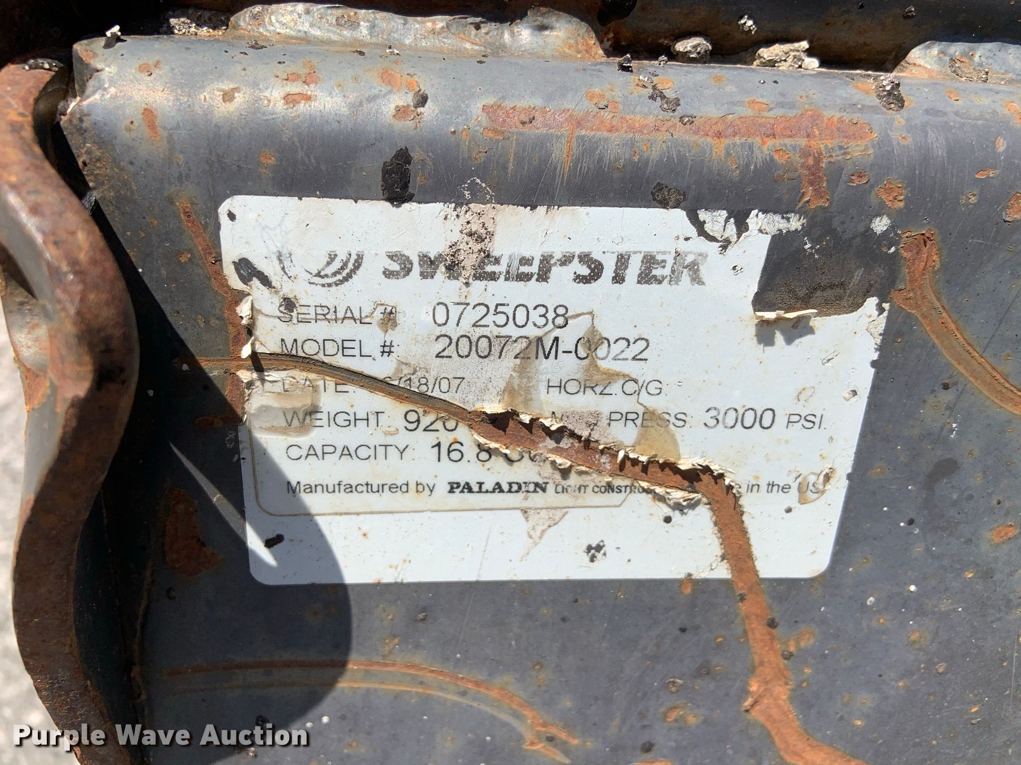 Purple Wave is selling a used Skid Steer Attach. in Missouri. This item is a Sweepster 72"W skid steer broom with the following: Sweepster 72"W skid steer broom. Seal-O-Matic Paving. 2601 NW Tullison Rd. Riverside, MO 64150