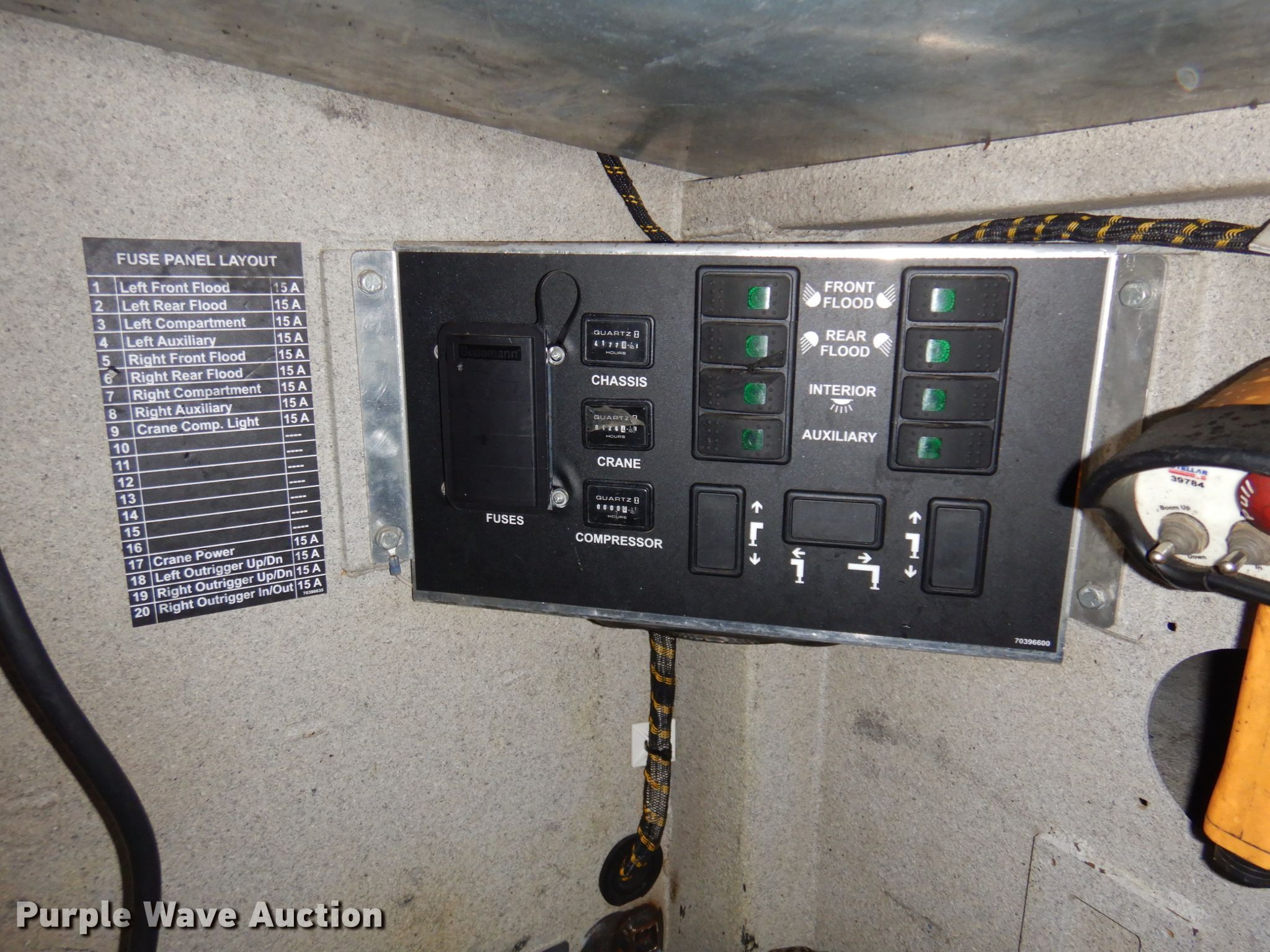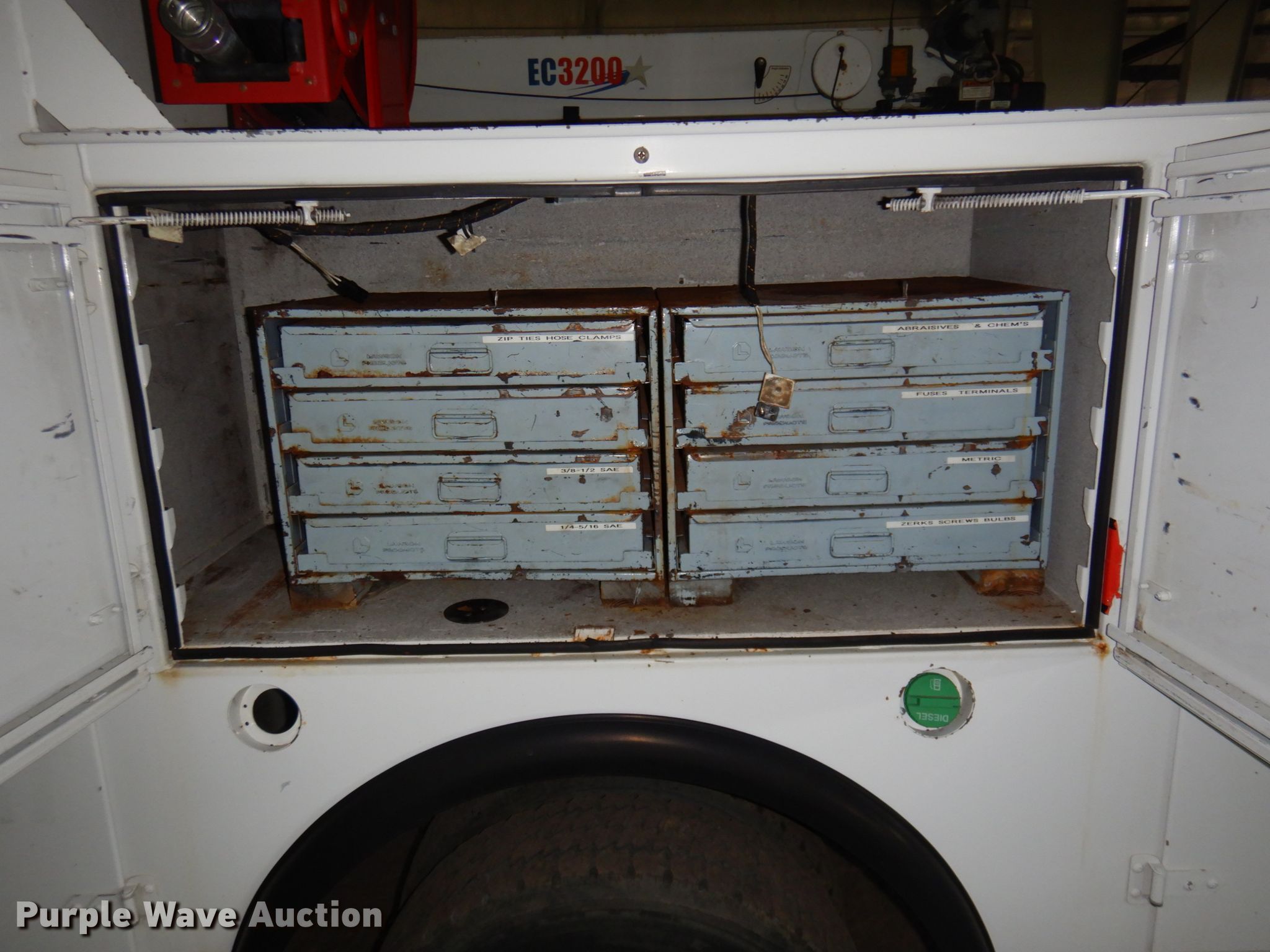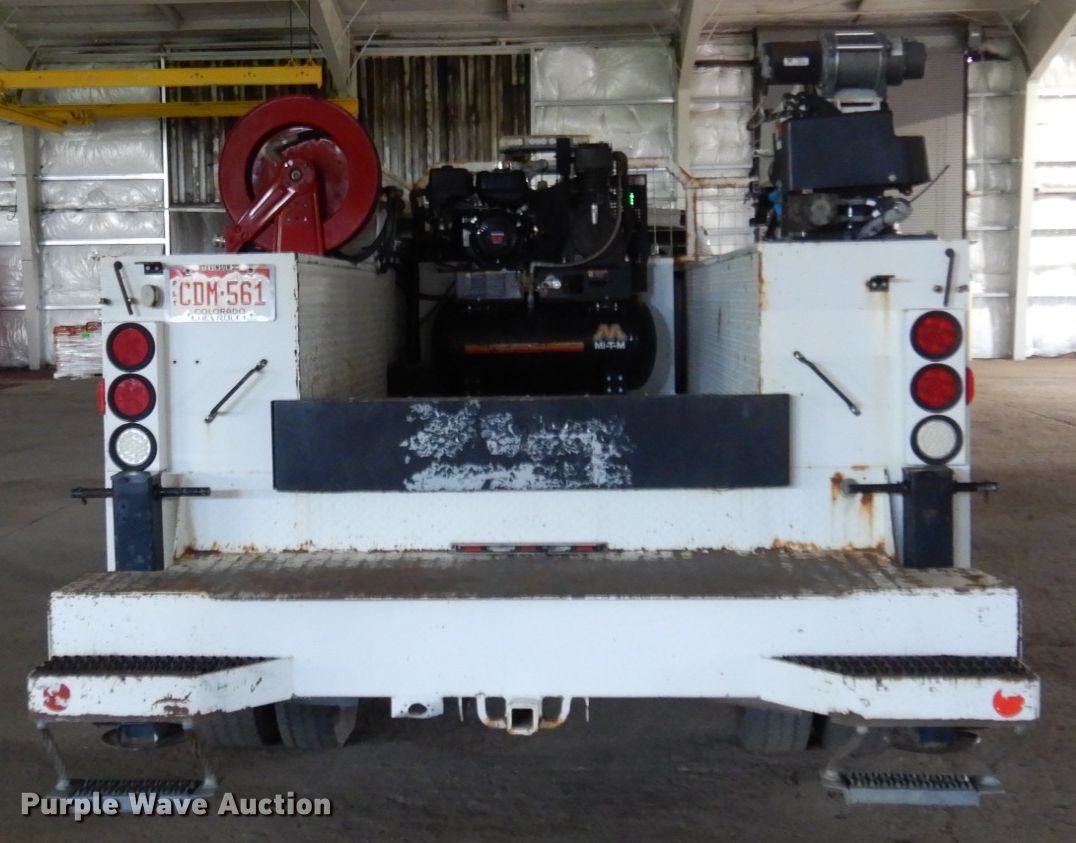 2015 Dodge Ram 5500 utility / service truck. 127,287 miles on odometer, Engine hours: 3,373. Engine Cummins, Displacement: 6.7L L6 OHV 24V, Cylinders: 6, Fuel type: Diesel. Transmission Automatic. Chassis Four wheel drive, Axles: Single, Suspension: Spring, Brakes: Hydraulic, PTO, GVWR: 19,500 lbs. Interior AC, Heat, Power windows, Power locks, Cruise control, Auxiliary controls, Brake controller. Operational Bed Length: 13', Torch bottle rack Tanks not included, Air compressor Mi-T-M, Honda GX390, Oil/lube system Hose reels, Pump, Reservoirs Hydraulic fluid, Motor oil, Used oil, Crane Stellar EC3300, Boom length: 15', Maximum lift capacity: 3,200 lbs. Tires Size: 225/70R19.5. Colorado title. 3C7WRNBL4FG508483. Bobcat of the Rockies. 15680 W 6th Ave Frontage Rd. Golden, CO 80401