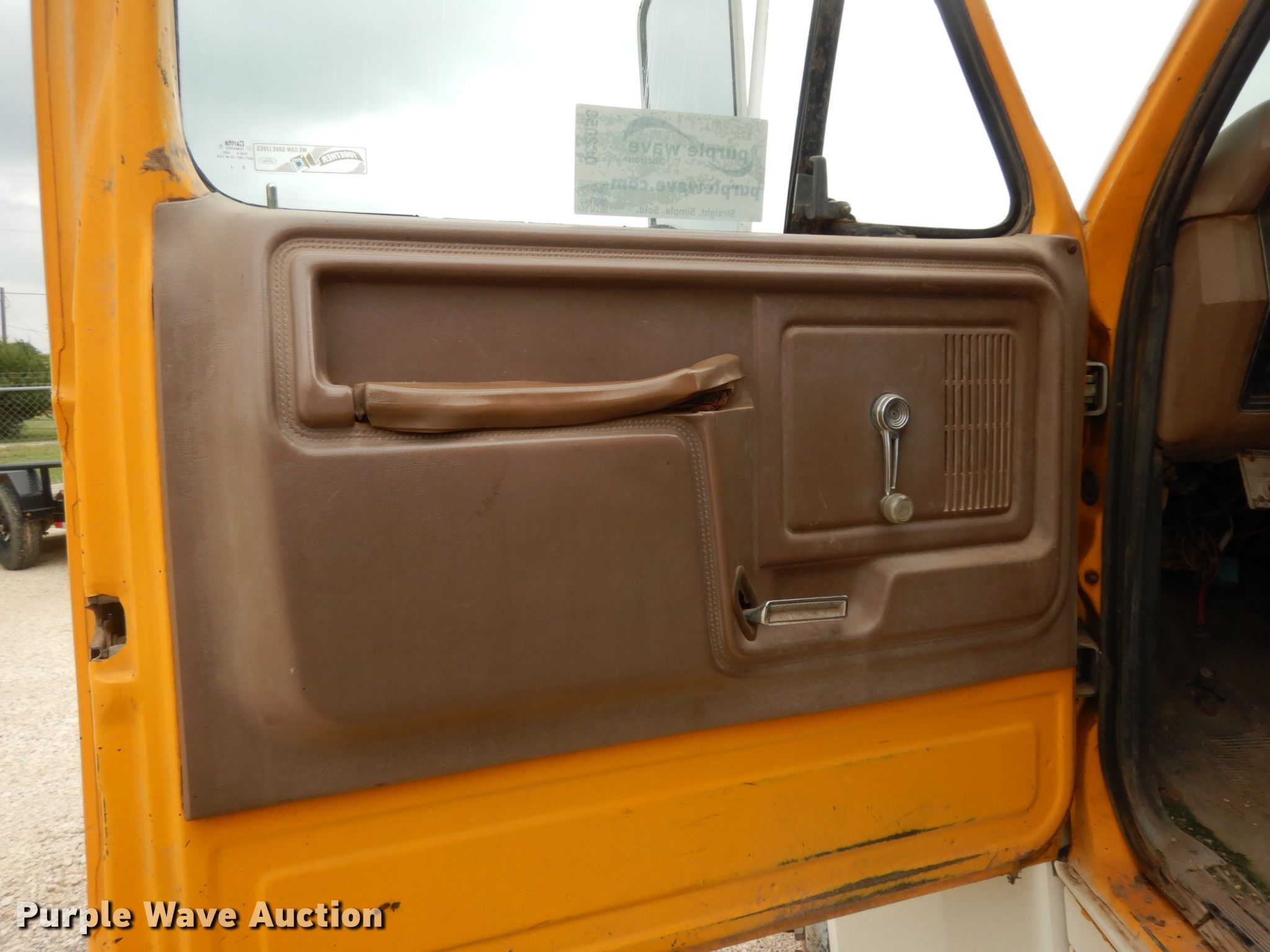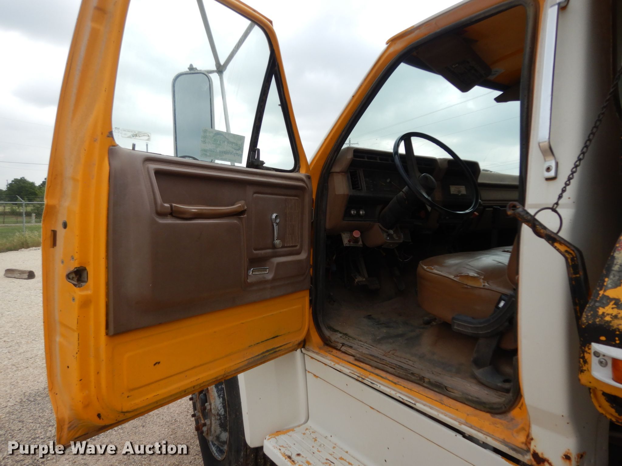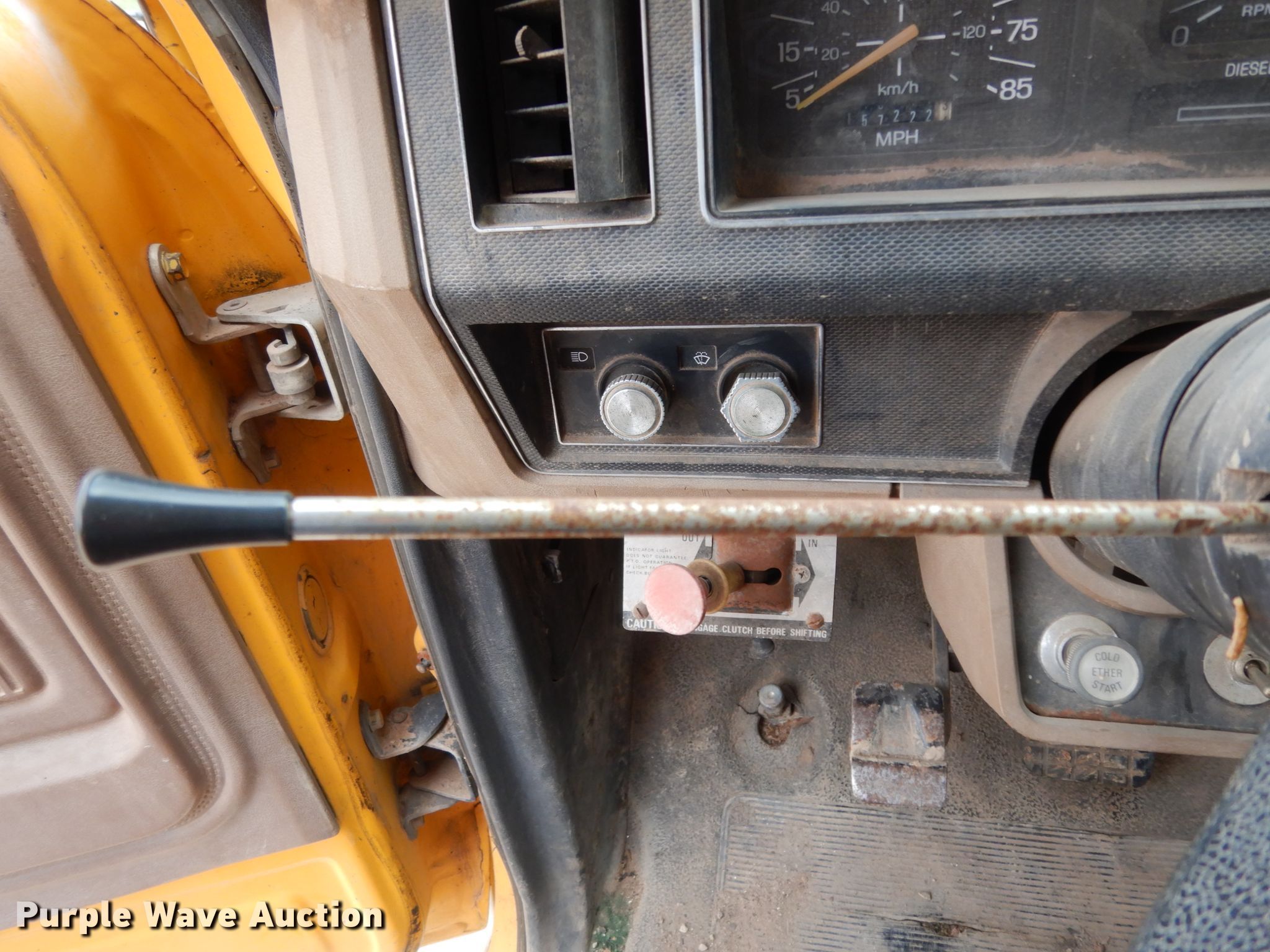 1986 Ford F8000 dump truck. 157,222 miles on odometer. Engine Detroit Diesel, Displacement: 8.2L, Cylinders: 8, Fuel type: Diesel. Transmission Manual, Speed: 5, plus 2. Chassis Axles: Single, Suspension: Spring, Brakes: Air, PTO, GVWR: 30,200 lbs, Wheelbase: 153". Interior AC, Heat. Operational Dump bed 10' L x 96" W, Side height: 36", Bed type: Steel, Ram: Single , End gate: Manual. Tires Size: 11R22.5. Notes Windshield chipped or cracked. Texas title. Title distribution may be delayed up to 14 days from verification of funds. 1FDXK84N1GVA40304. Taylor County - Precinct 4 Barn. 1949 Farm To Market Rd 1750. Abilene, TX 79602
