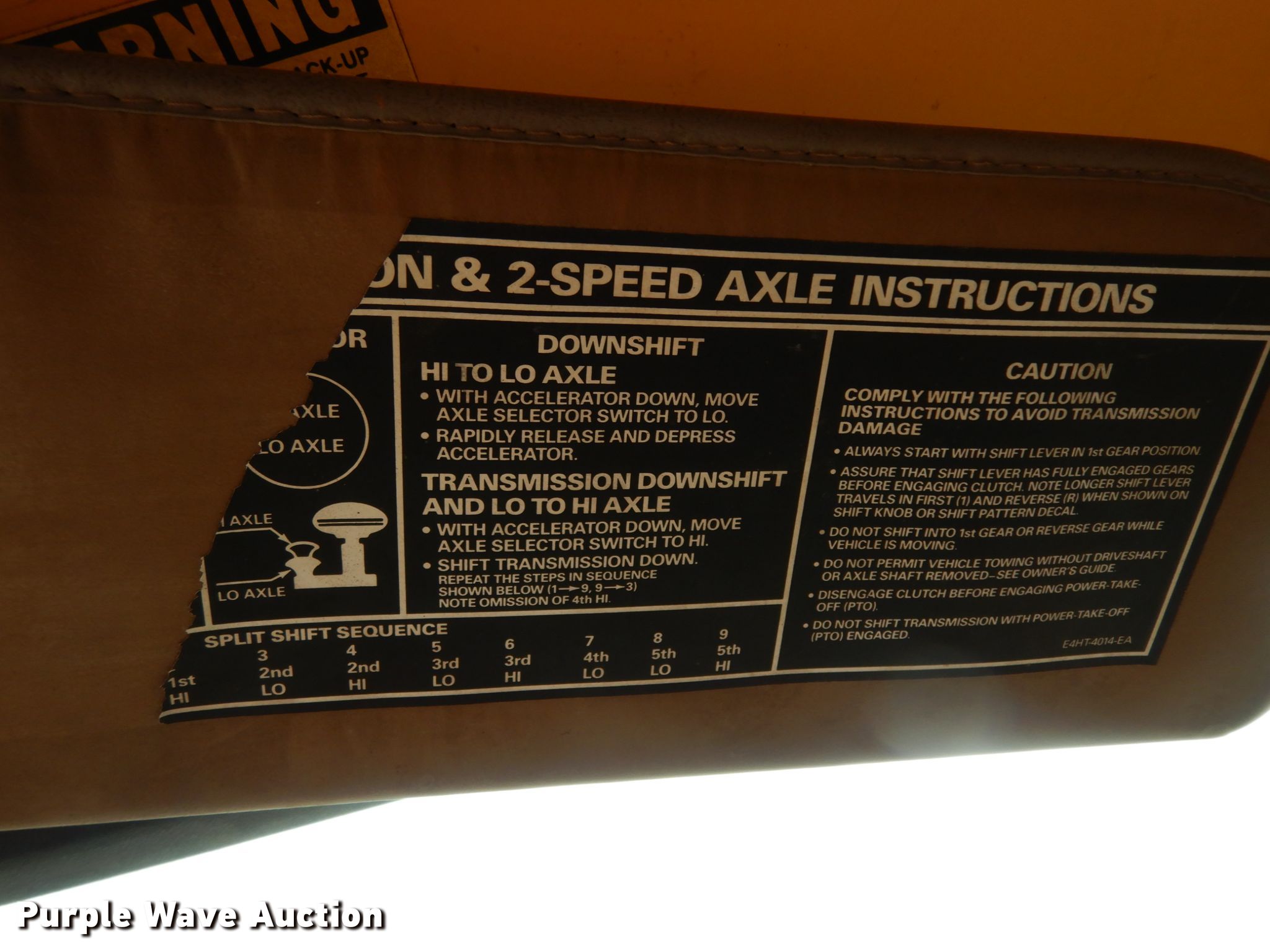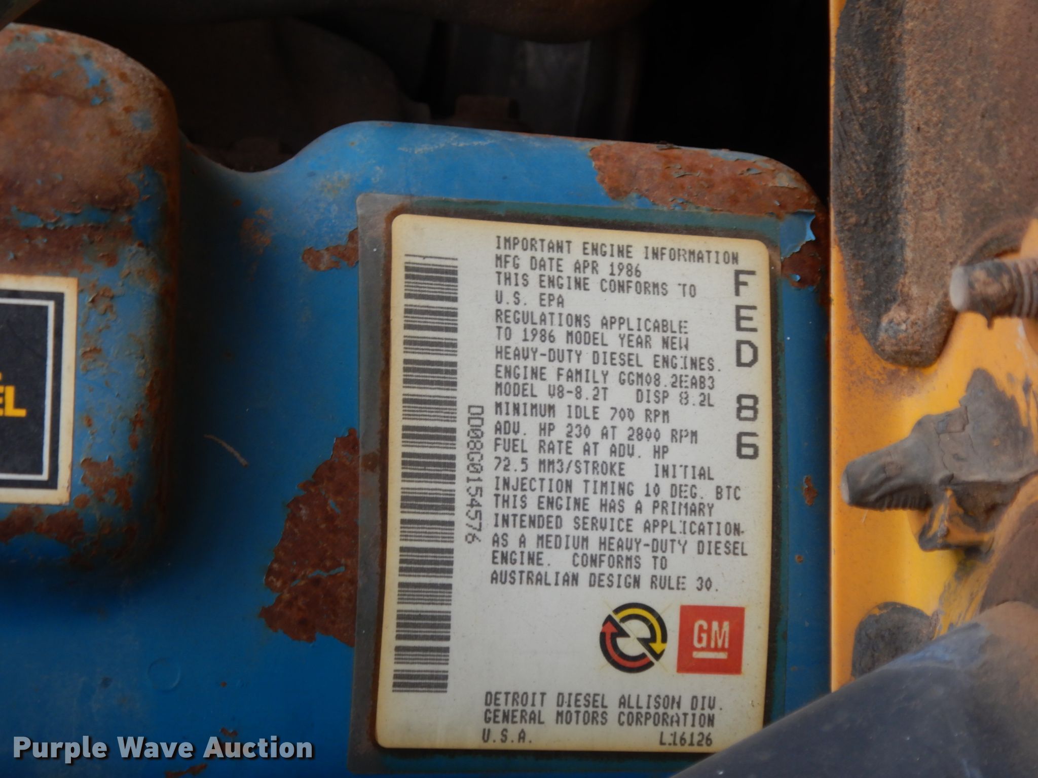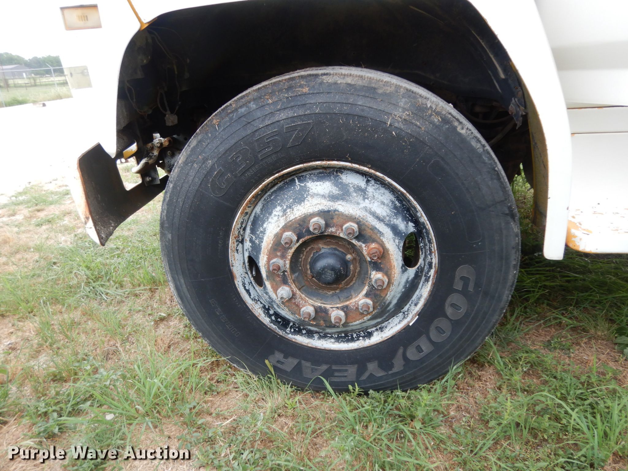 1986 Ford F8000 dump truck. 157,222 miles on odometer. Engine Detroit Diesel, Displacement: 8.2L, Cylinders: 8, Fuel type: Diesel. Transmission Manual, Speed: 5, plus 2. Chassis Axles: Single, Suspension: Spring, Brakes: Air, PTO, GVWR: 30,200 lbs, Wheelbase: 153". Interior AC, Heat. Operational Dump bed 10' L x 96" W, Side height: 36", Bed type: Steel, Ram: Single , End gate: Manual. Tires Size: 11R22.5. Notes Windshield chipped or cracked. Texas title. Title distribution may be delayed up to 14 days from verification of funds. 1FDXK84N1GVA40304. Taylor County - Precinct 4 Barn. 1949 Farm To Market Rd 1750. Abilene, TX 79602