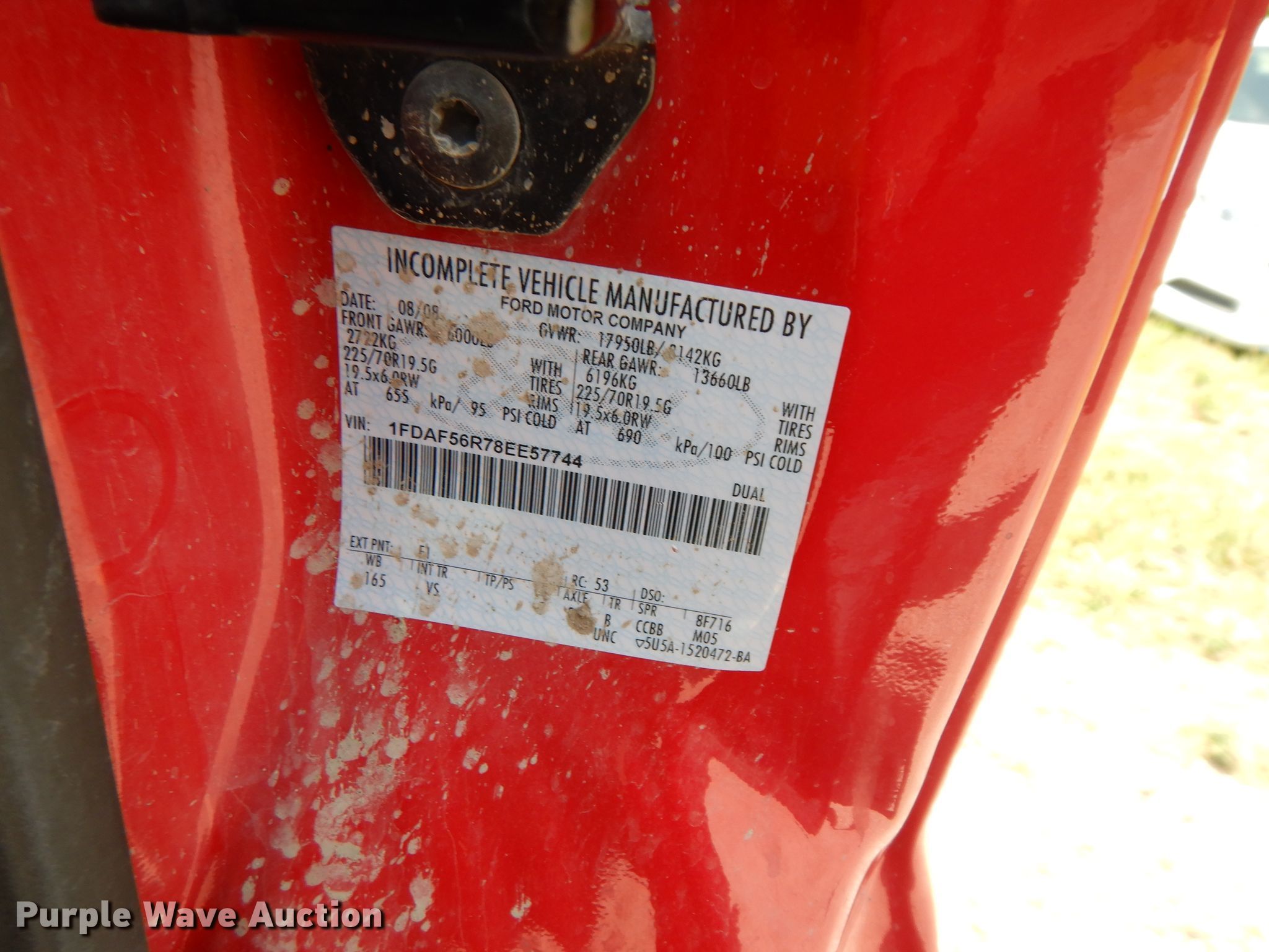 2008 Ford F550 Super Duty truck cab and chassis. 68,674 miles on odometer, Unit #: PWK-R&B 4479. Engine Displacement: 6.4L V8 OHV 32V, Cylinders: 8, Fuel type: Diesel. Transmission Automatic. Chassis Suspension: Spring, Brakes: Hydraulic. Interior AC, Heat. Tires Size: 225/70R19.5. Kansas title. 1FDAF56R78EE57744. Johnson County. Olathe, KS 66061