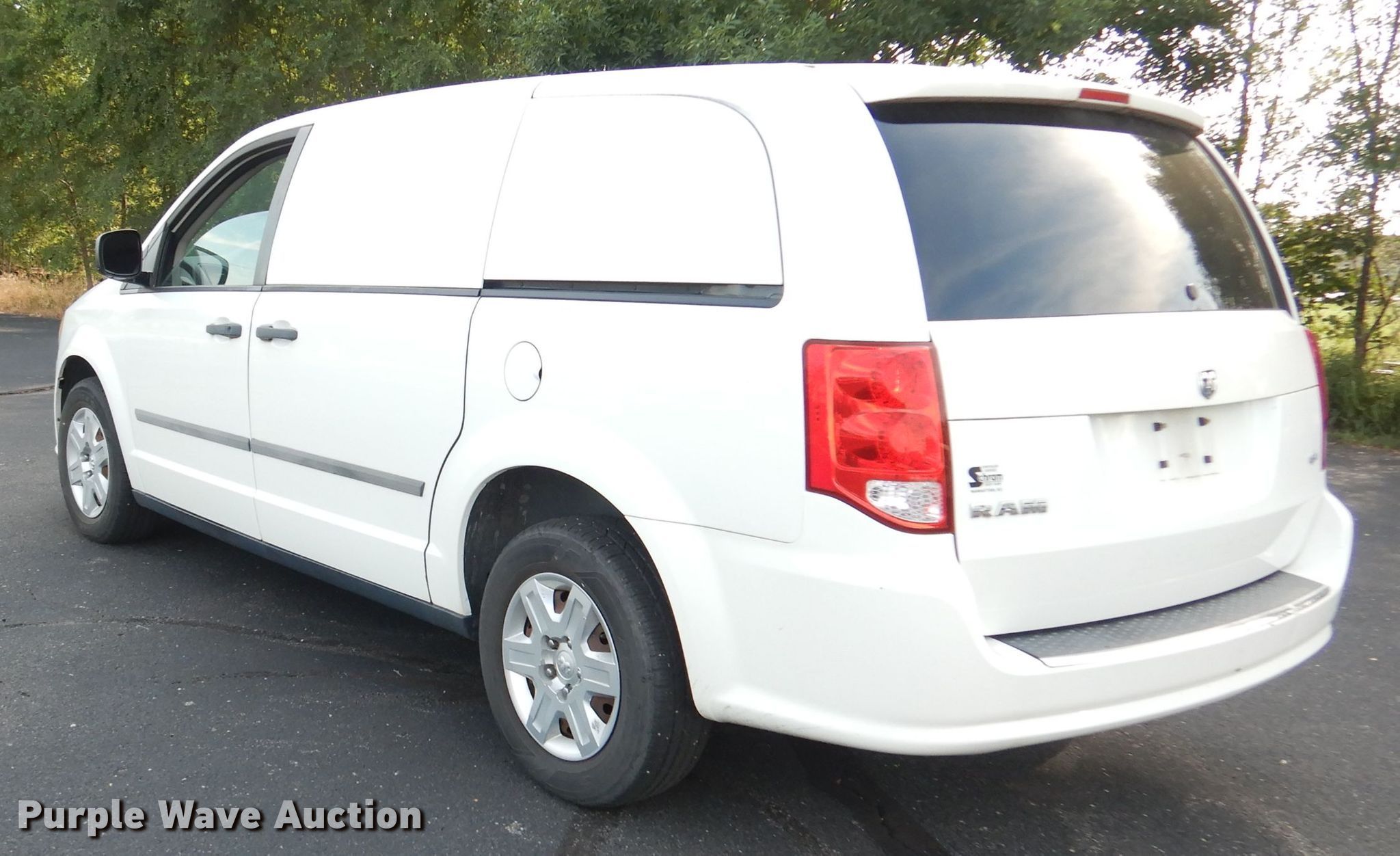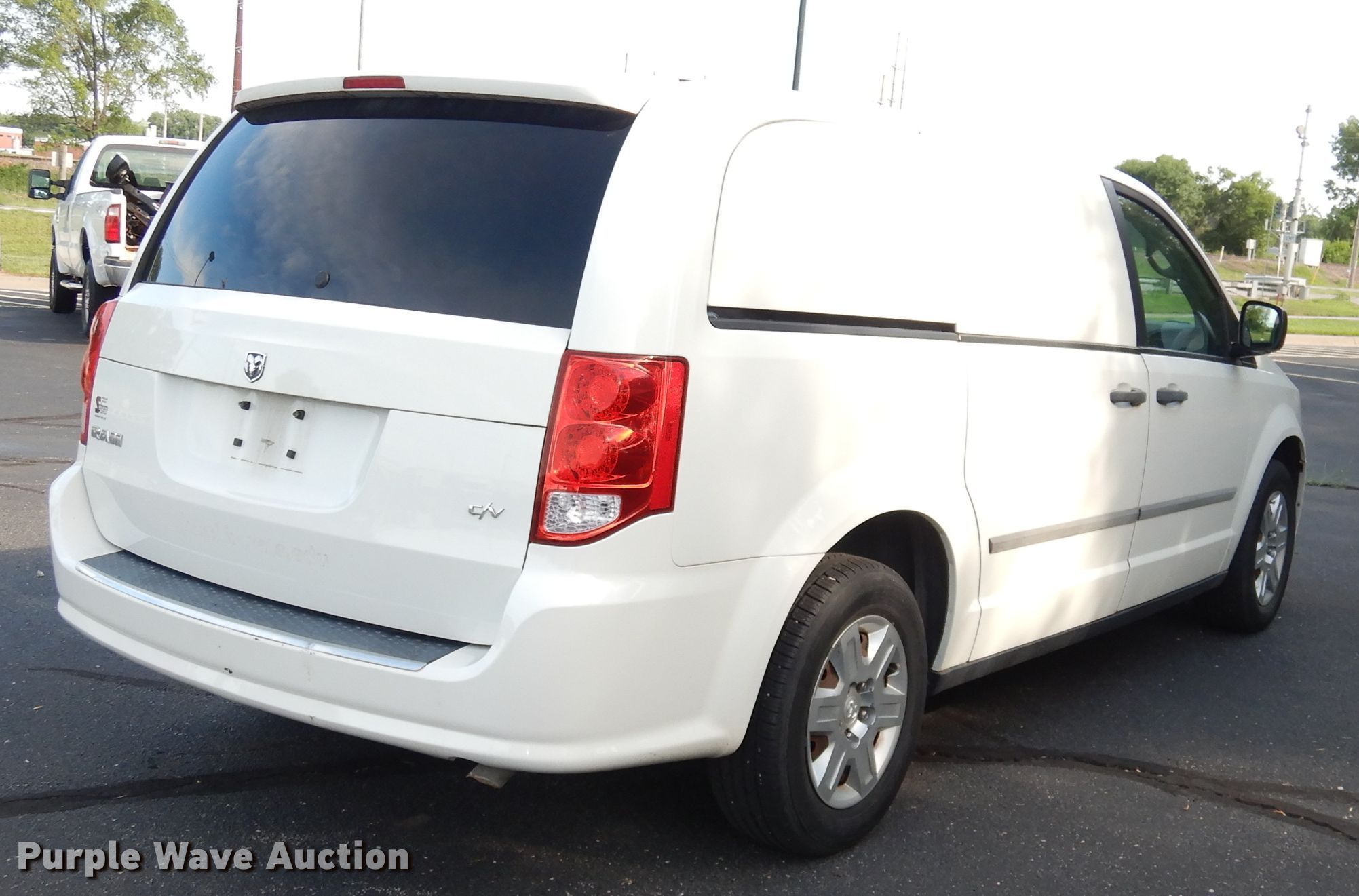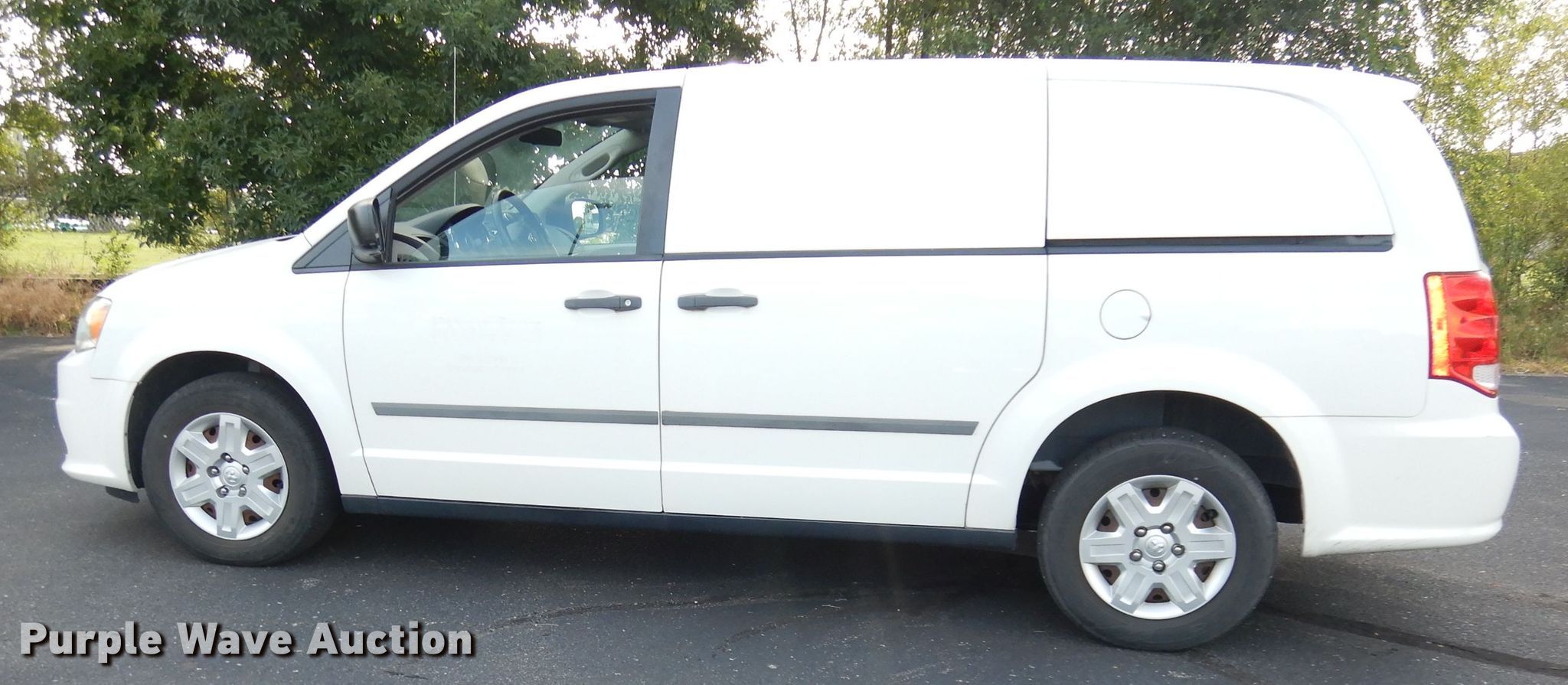 2012 Dodge Grand Caravan van. 11,522 miles on odometer. Engine Displacement: 3.6L V6 DOHC 24V, Cylinders: 6, Fuel type: Gas. Transmission Automatic. Interior AC, Heat, Heated mirrors, Power windows, Power locks, Cruise control. Tires Size: 225/65R16. Notes Rear seats missing. Kansas title. 2C4RDGAG7CR244223. Purple Wave Auction. 825 Levee Dr. Manhattan, KS 66502