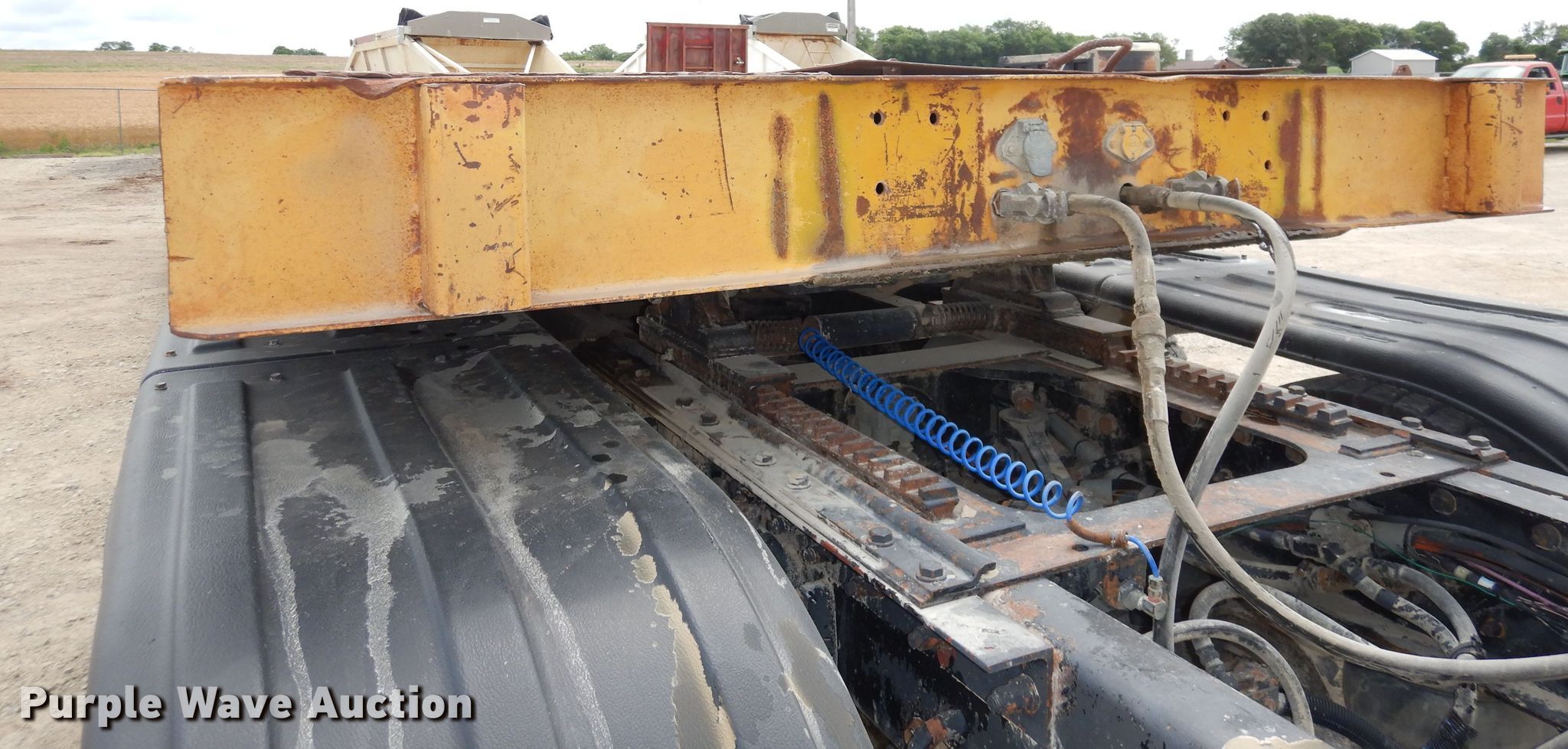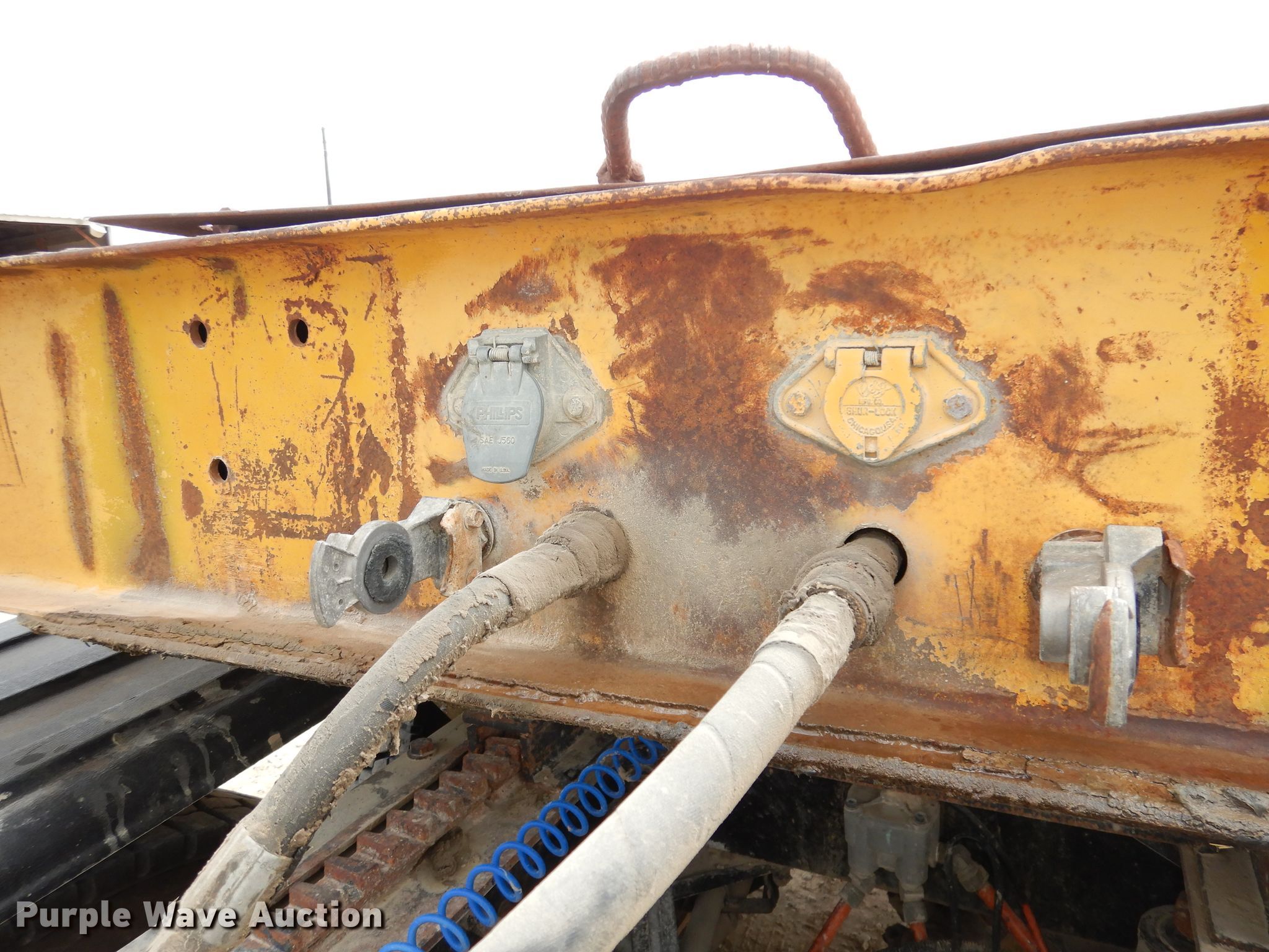 1977 Muv-All 4050T drop deck equipment trailer. Dimensions. Overall: 43' L x 7' 10" W, Deck: 24' L, Top deck length: 10', Hydratail length: 9' 3". Operational Deck type: Steel, Wood, Winch. Chassis Landing gear: Dual, Hydraulic, Suspension: Spring, Brakes: Air, Axles: Tandem, GVWR: 62,000 lbs, GAWR: 21,000 lbs. Tires Steel wheels, Size: 8.25R15TR. Notes Unknown operating condition of winch, Wood on deck and tail needs replaced. Kansas title. 3836. Clay Center, KS 67432