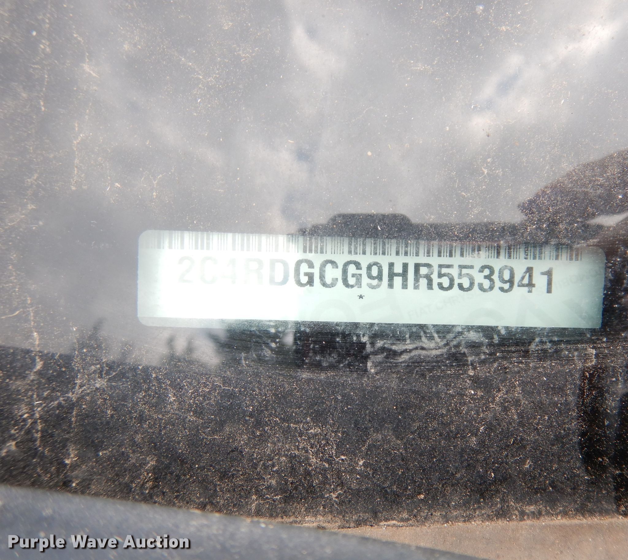 2017 Dodge Grand Caravan SXT van. 54,716 miles on odometer. Engine Displacement: 3.6L V6 DOHC 24V, Cylinders: 6, Fuel type: Gas. Transmission Automatic. Interior AC, Heat, Seat: Power driver, Heated mirrors, Power windows, Power locks, Cruise control. Tires Size: 225/65R17. Notes Decals will be removed prior to auction, Dash warning indicator: Check engine. Kansas title. 2C4RDGCG9HR553941. Miltonvale, KS 67466