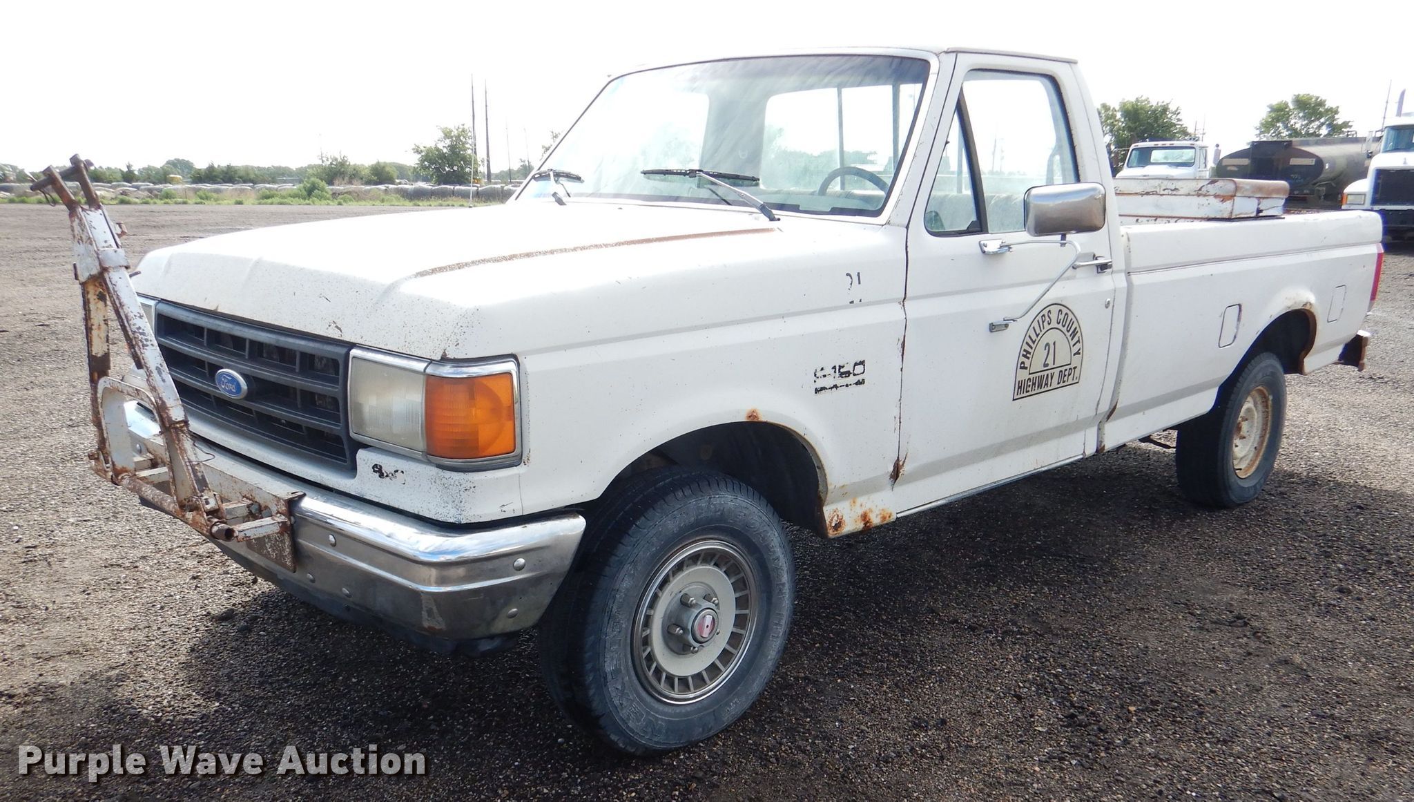1987 Ford F150 pickup truck. 26,537 miles on odometer. Engine Displacement: 5.0L V8 OHV 16V, Cylinders: 8, Fuel type: Gas. Transmission Manual, Speed: 4, Four wheel drive. Interior Heat. Tires Size: 235/75R15. Notes Windshield chipped or cracked, Dead battery, Unknown operating condition. Kansas title. 1FTEF14N4HKA45331. Phillips County Road and Bridge. 1566 Hwy 183. Phillipsburg, KS 67661