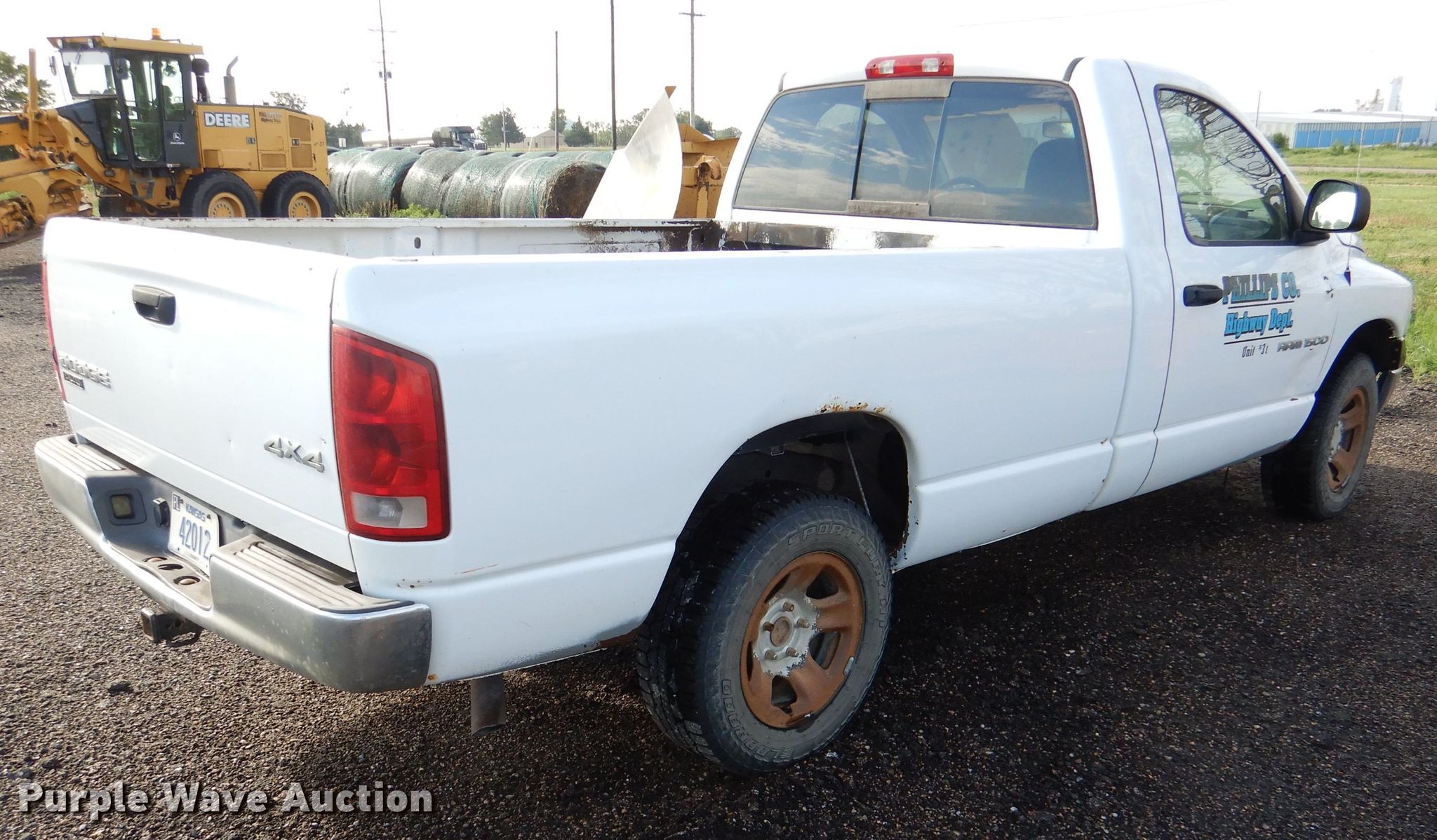 2002 Dodge Ram 1500 pickup truck. 227,474 miles on odometer. Engine Displacement: 5.9L V8 OHV 16V, Cylinders: 8, Fuel type: Gas. Transmission Automatic, Four wheel drive. Interior AC, Heat. Tires Size: 245/70R17. Notes Windshield chipped or cracked, Non-operational unit. Kansas title. 1D7HU16Z72J263883. Phillips County Road and Bridge. 1566 Hwy 183. Phillipsburg, KS 67661