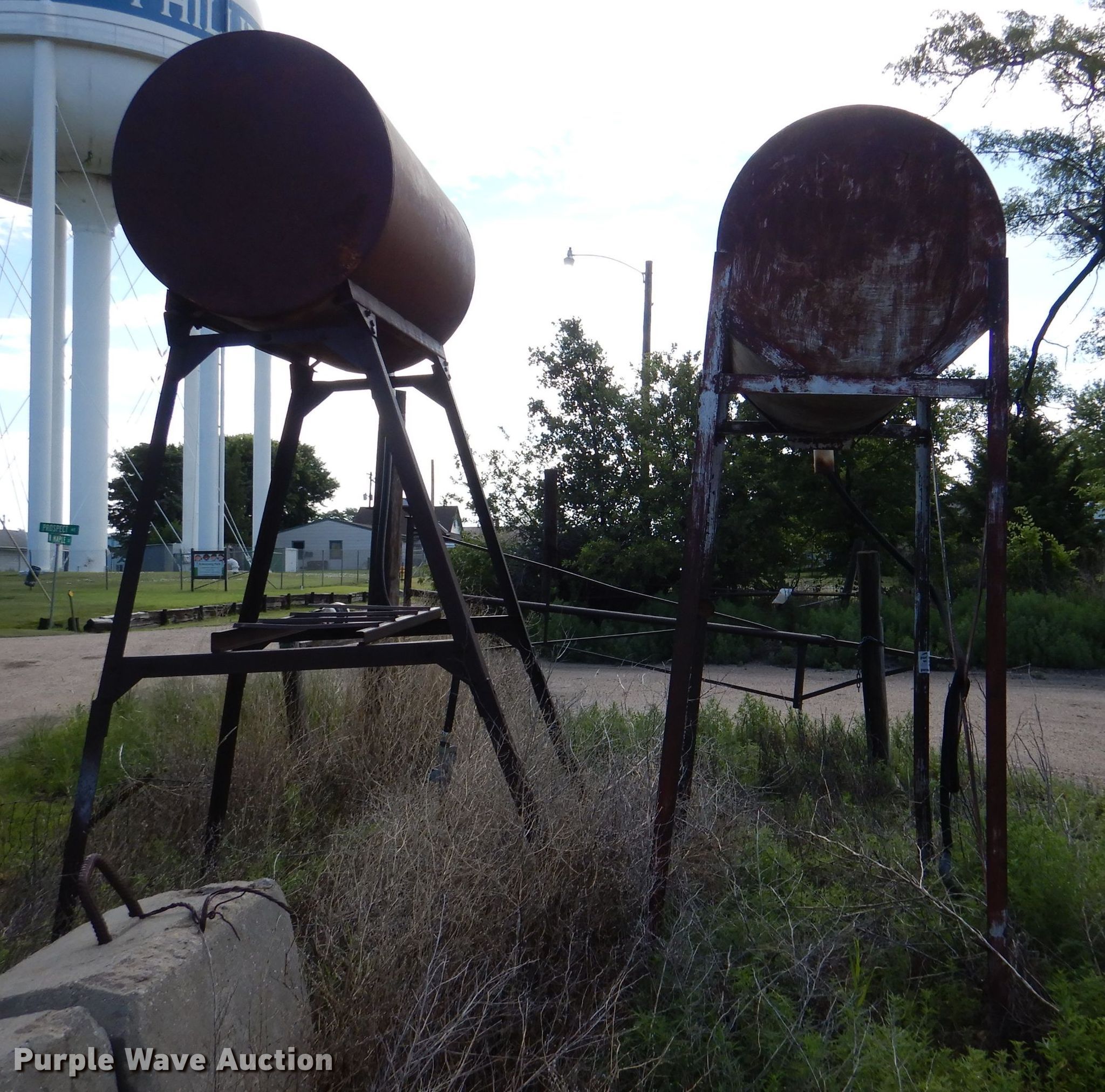 Purple Wave is selling a used Fuel and Lube in Kansas. This item is a (2) fuel tanks with the following: 66"L x 36" diameter, 60"L x 38" diameter, Fuel nozzle