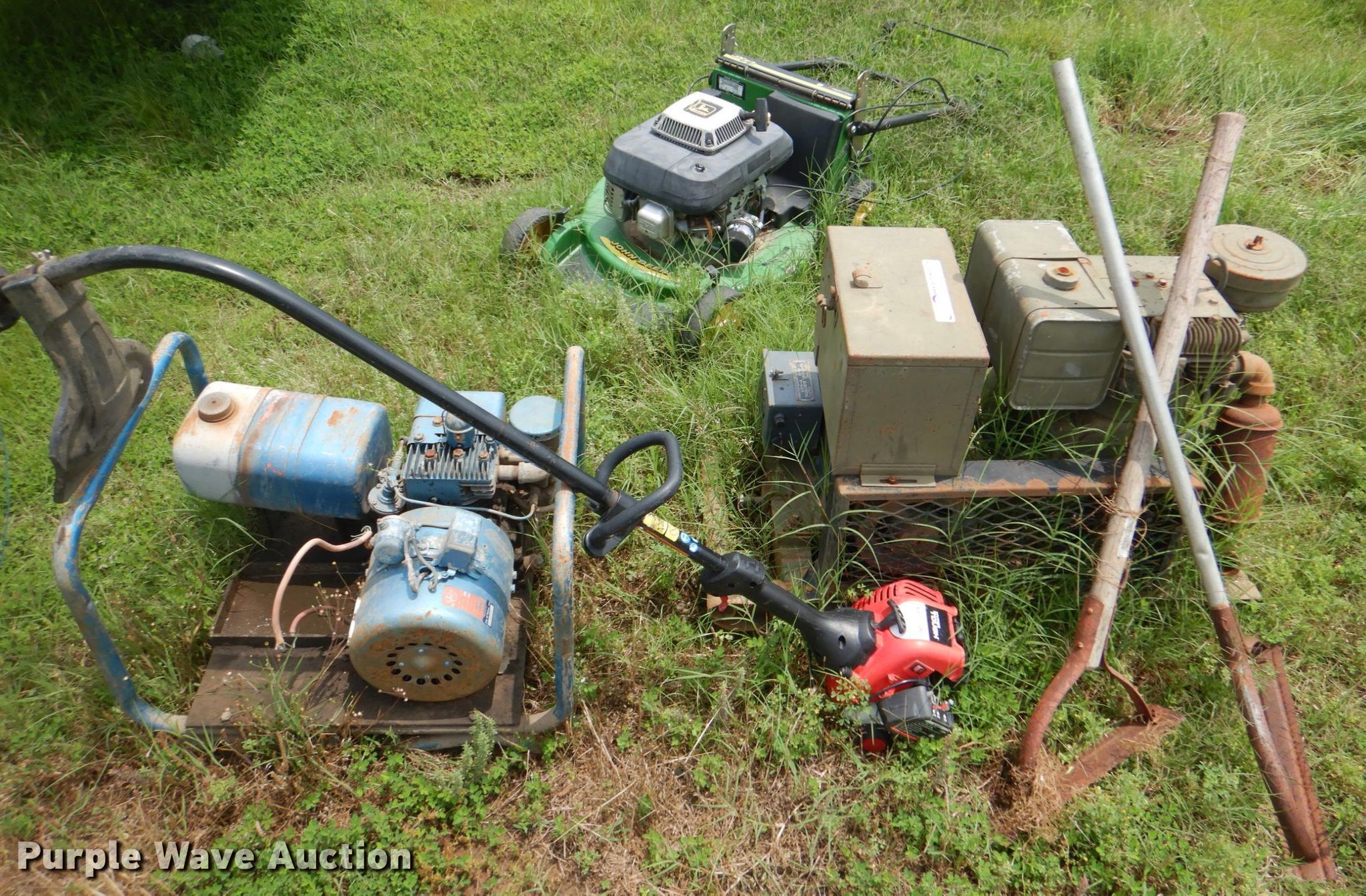 Purple Wave is selling a used Tools in Oklahoma. This item is a Tools with the following: John Deere lawn mower, Gas powered generator, Briggs & Stratton generator, Hyper Tough H2510 string trimmer, Unknown operating condition of items