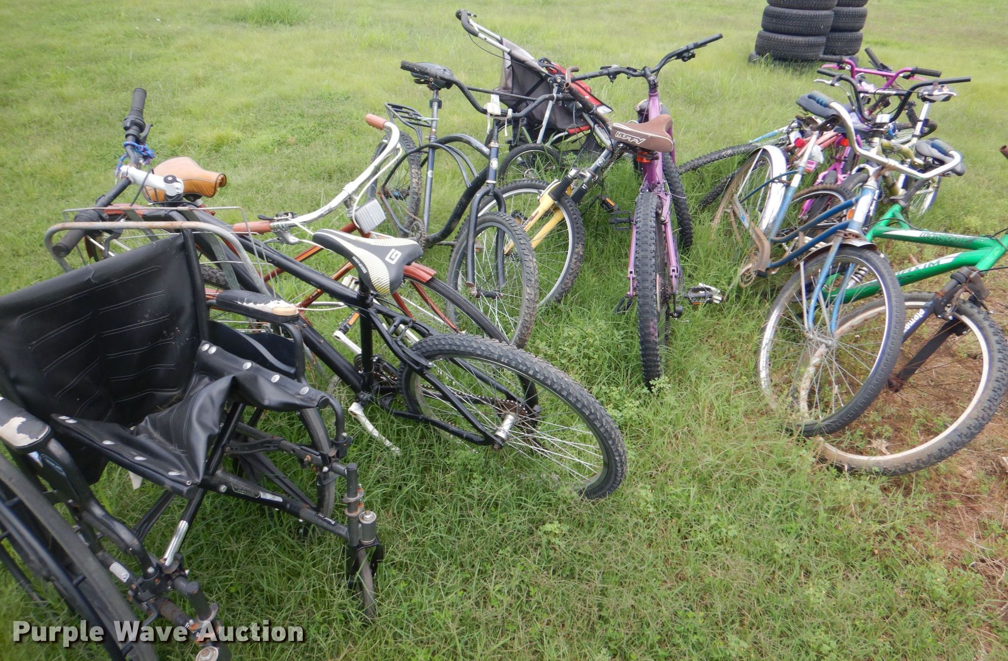 Purple Wave is selling a used Sporting Goods in Oklahoma. This item is a Sporting goods with the following: (12) bicycles, Wheelchair, Stroller