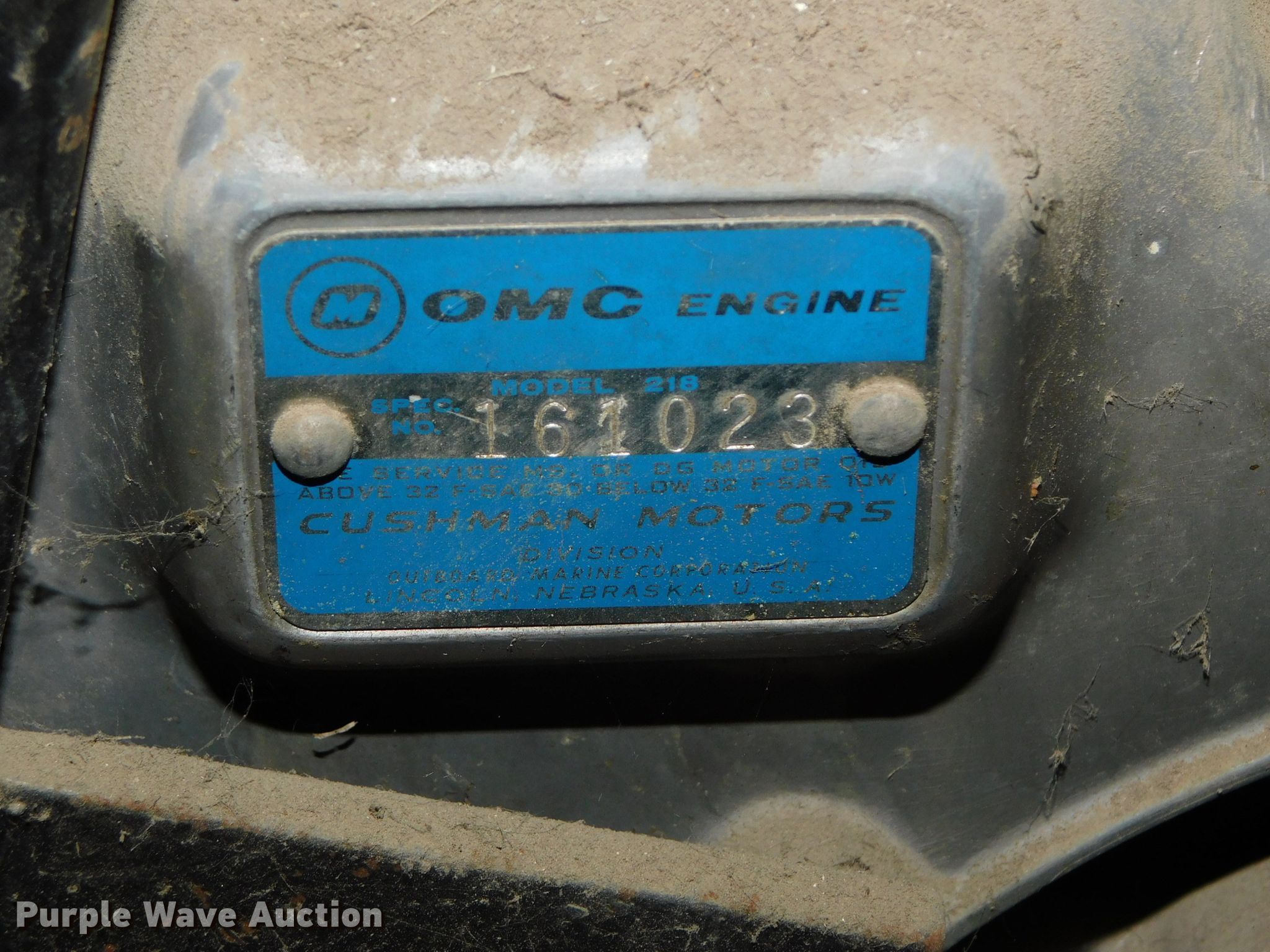Purple Wave is selling a used Engine in Nebraska. This item is a (2) Cushman 218 two cylinder gas engines with the following: Spec No. 161023, Stand, Non-operational