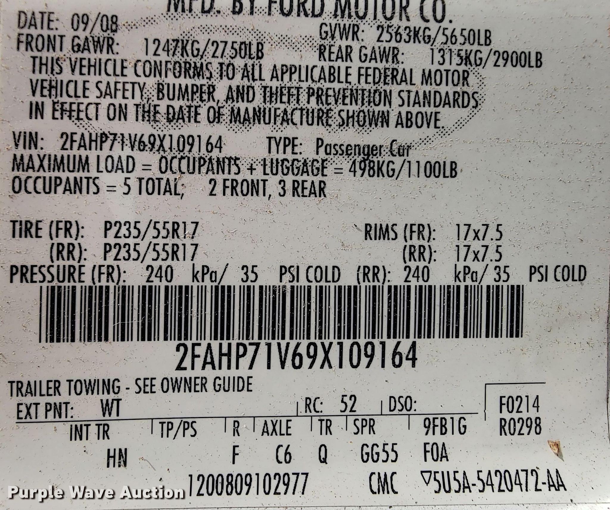 Purple Wave is selling a used Passenger Vehicle in Oklahoma. This item is a 2009 Ford Crown Victoria Police Interceptor with the following: 117,036 miles on odometer, Unit #: 935