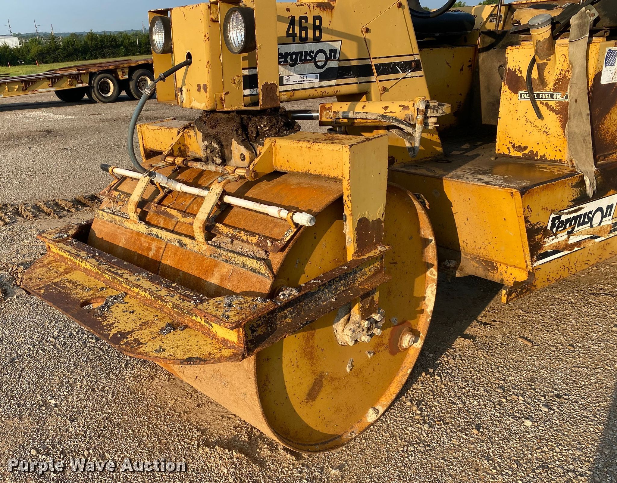 Ferguson 46B double drum roller. 2,898 hours on meter, Serial: 3625. Engine Cylinders: 4, Fuel type: Diesel. Transmission Hydrostatic. Operational Drum: Smooth, Front drum Width: 42", Diameter: 48", Rear drum Width: 42", Diameter: 48", Drum scrapers: Front, Rear, Water spray applicator: Front, Rear. Notes Unknown operating condition. Creek County. Old Hwy 99. Drumright, OK 74030