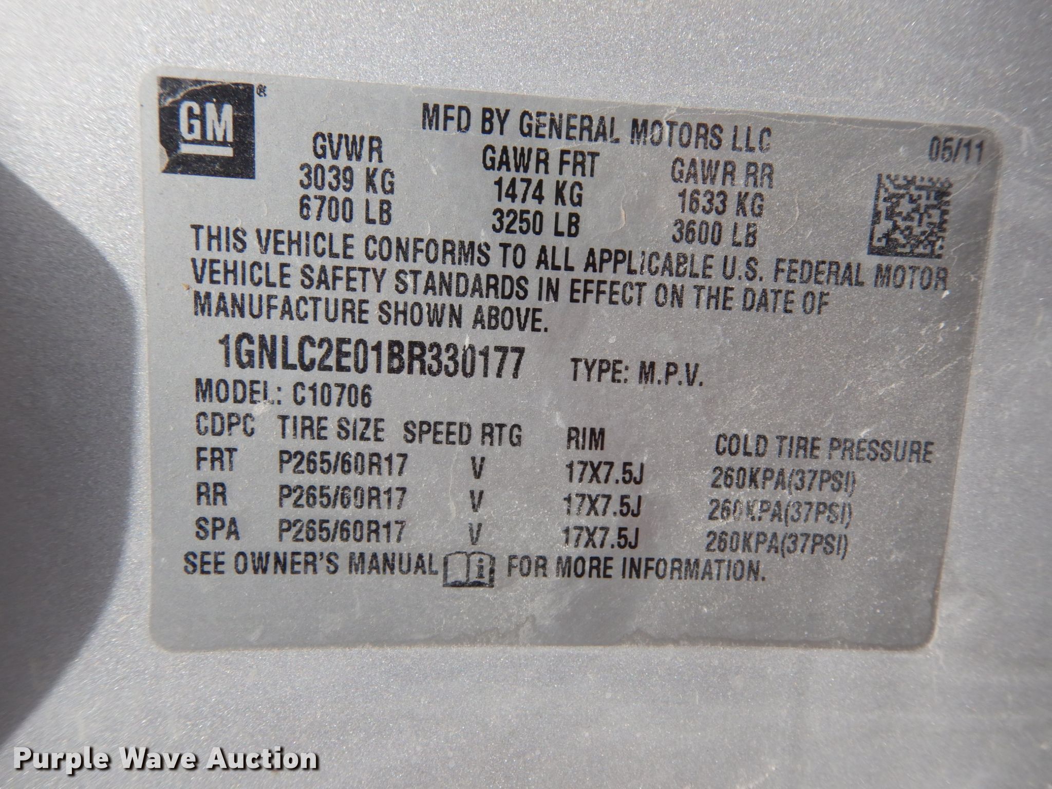 2011 Chevrolet Tahoe Police SUV. 263,580 miles on odometer. Engine Displacement: 5.3L V8 OHV 16V, Cylinders: 8, Fuel type: Gas. Transmission Automatic. Interior AC, Heat, Seat: Power driver, Power passenger, Power windows, Power locks, Cruise control. Tires Size: P265/60R17. Notes Dash warning indicator: Check engine, TPMS, No battery, Rear hatch issues. Missouri title. Seller is a government entity who will be assigning and distributing the title. Please contact the seller for distribution questions. 1GNLC2E01BR330177. Cooper County, MO - Sheriff's Office. 16041 Hwy 5. Boonville, MO 65233