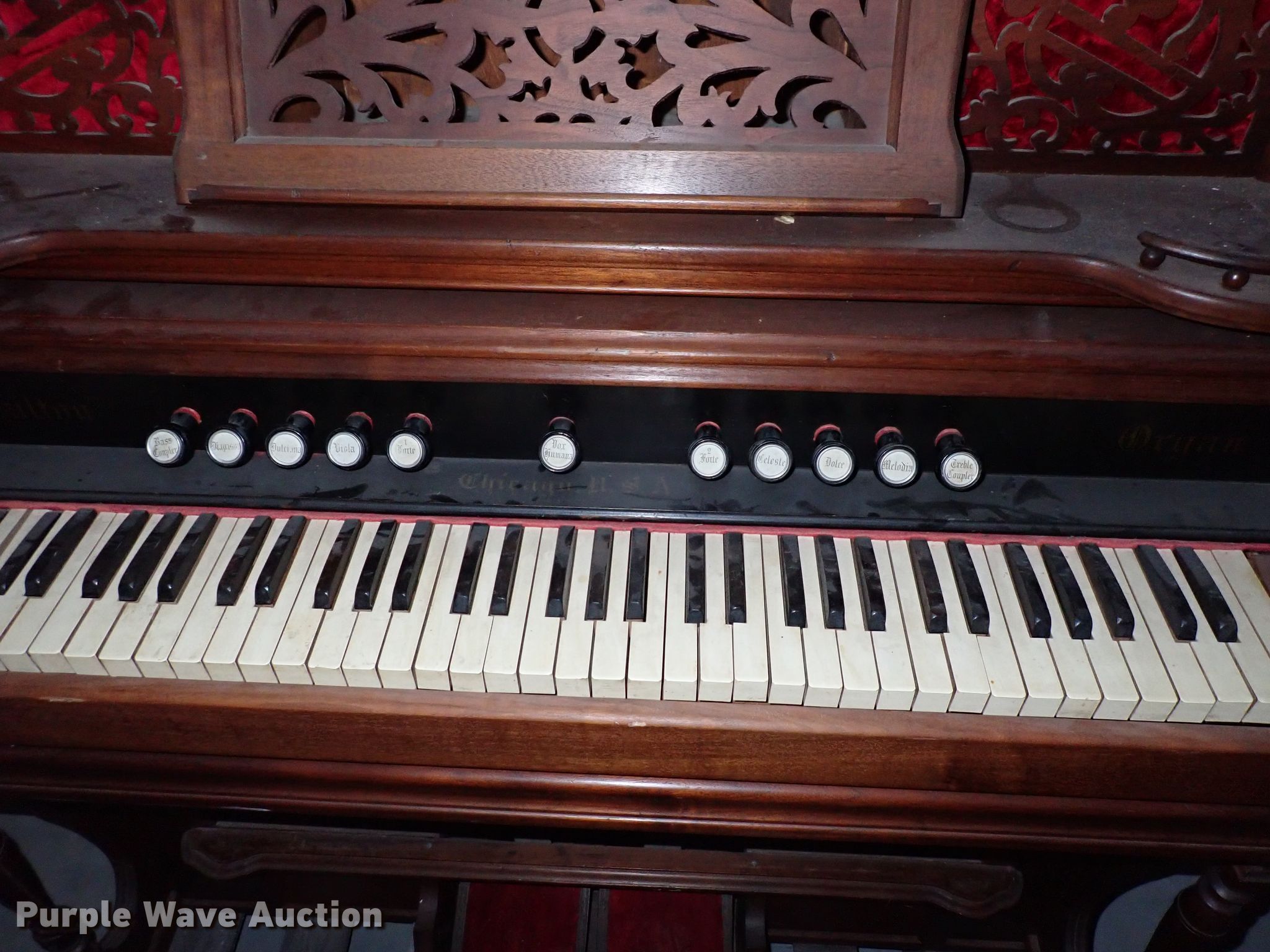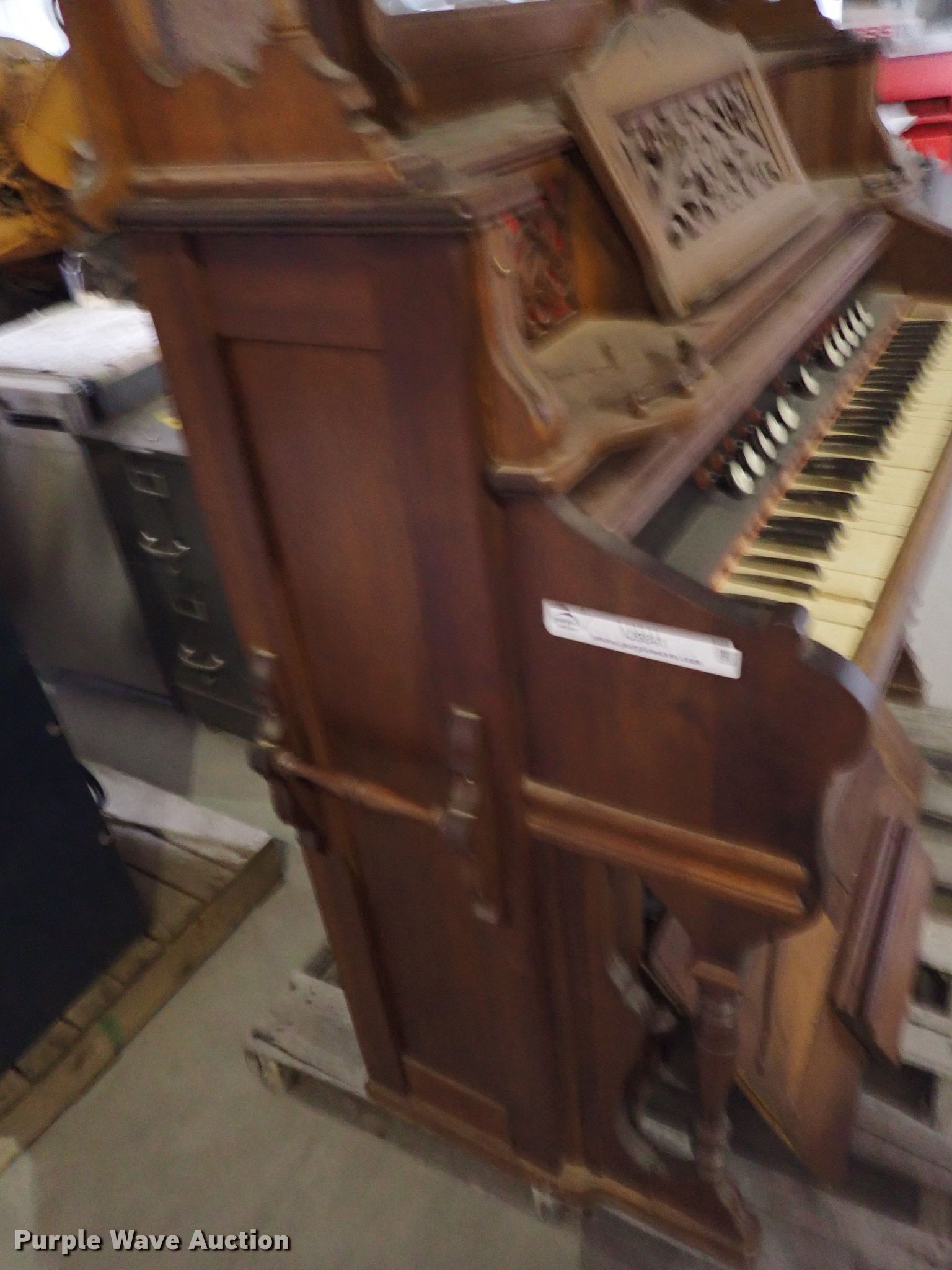 Purple Wave is selling a used Music Equip. in Kansas. This item is a Hamilton organ with the following: 51" x 24" x 72"