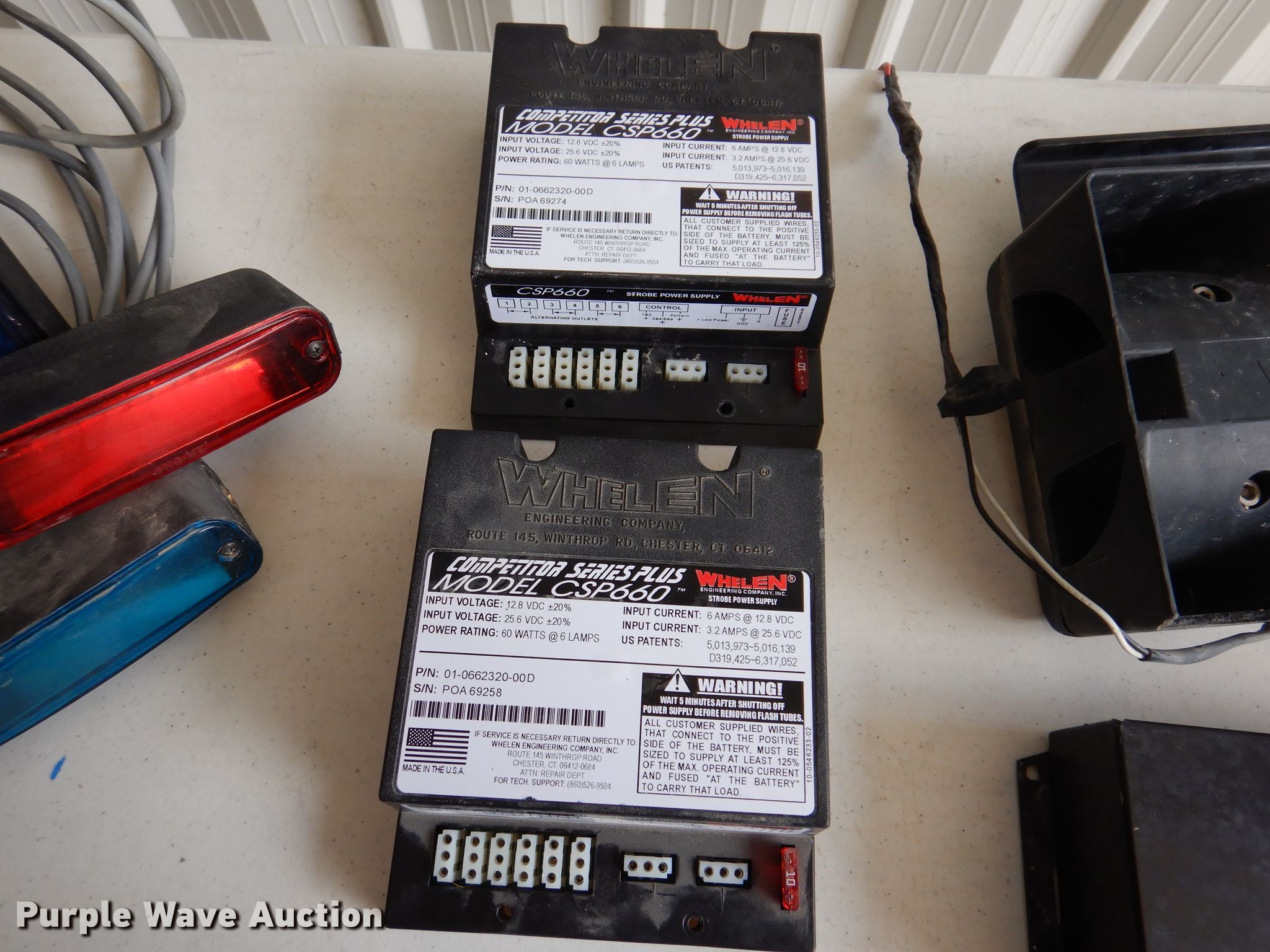 Purple Wave is selling a used Automotive Parts or Acces. in Iowa. This item is a Automotive parts with the following: Whelen controllers, Strobe light power supply, Lights, Siren