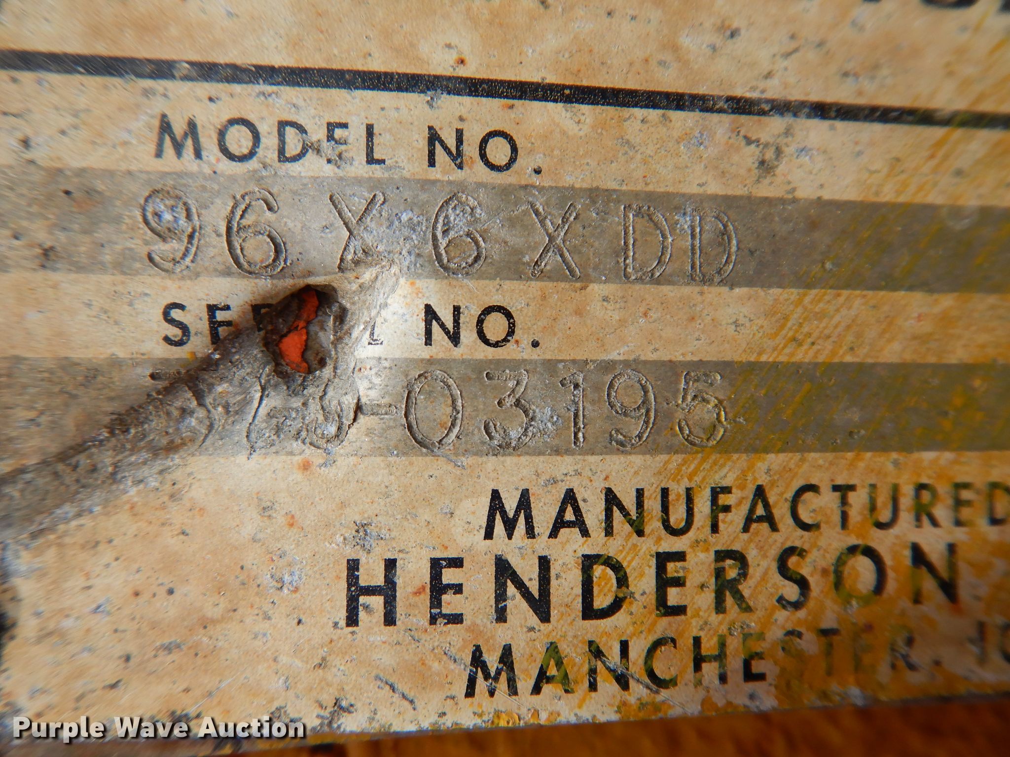 Purple Wave is selling a used Truck Part and Attach. in Iowa. This item is a Henderson 96X6XDD end gate spreader with the following: Serial 323-03195