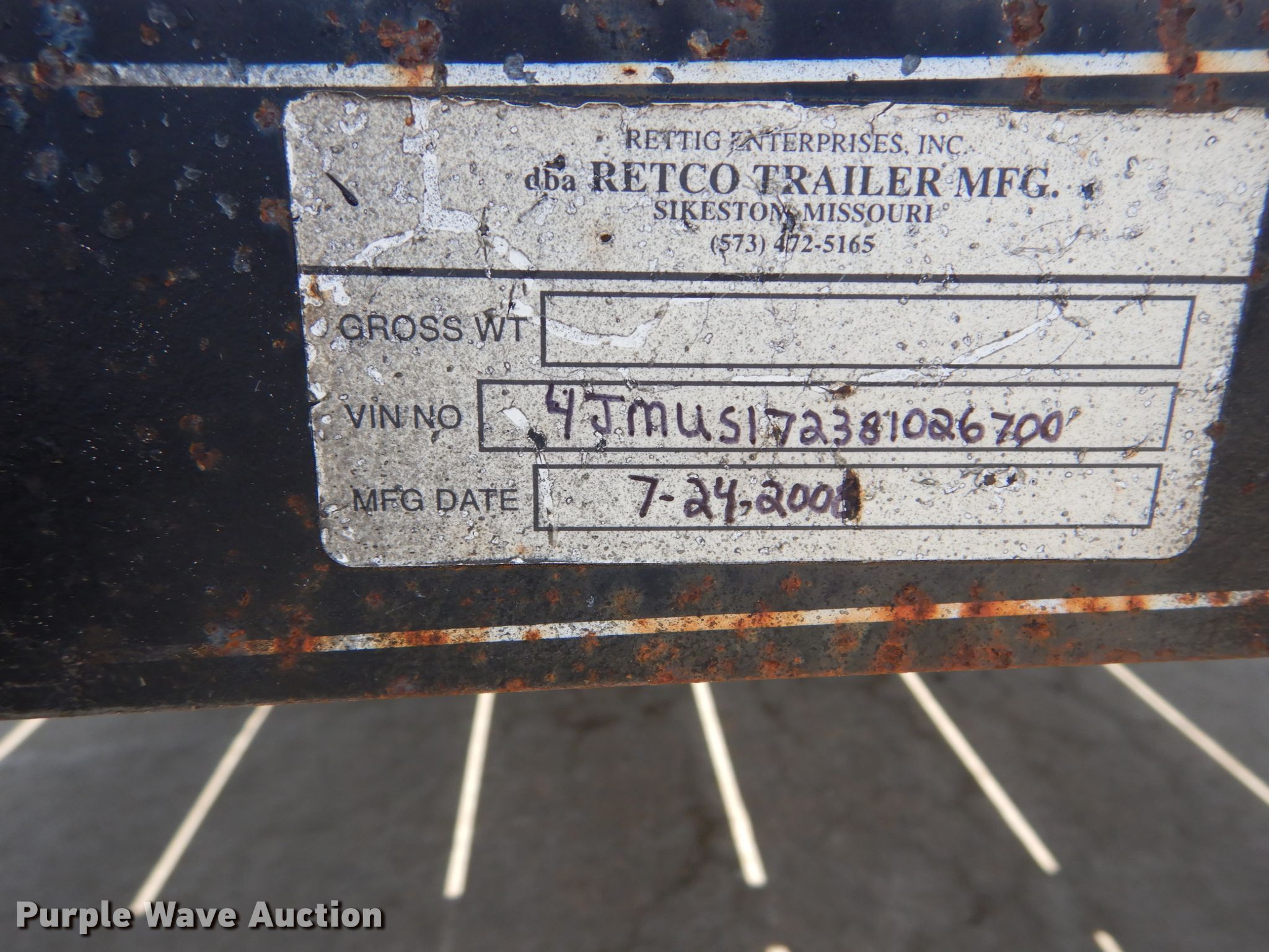 Purple Wave is selling a used Car or Utility Trailer in Missouri. This item is a 2008 Retco utility trailer with the following: Overall: 18' L x 94" W, Deck: 14' L x 77" W, Side height: 12", Deck height: 24", Ramp: Manual, Length: 48"