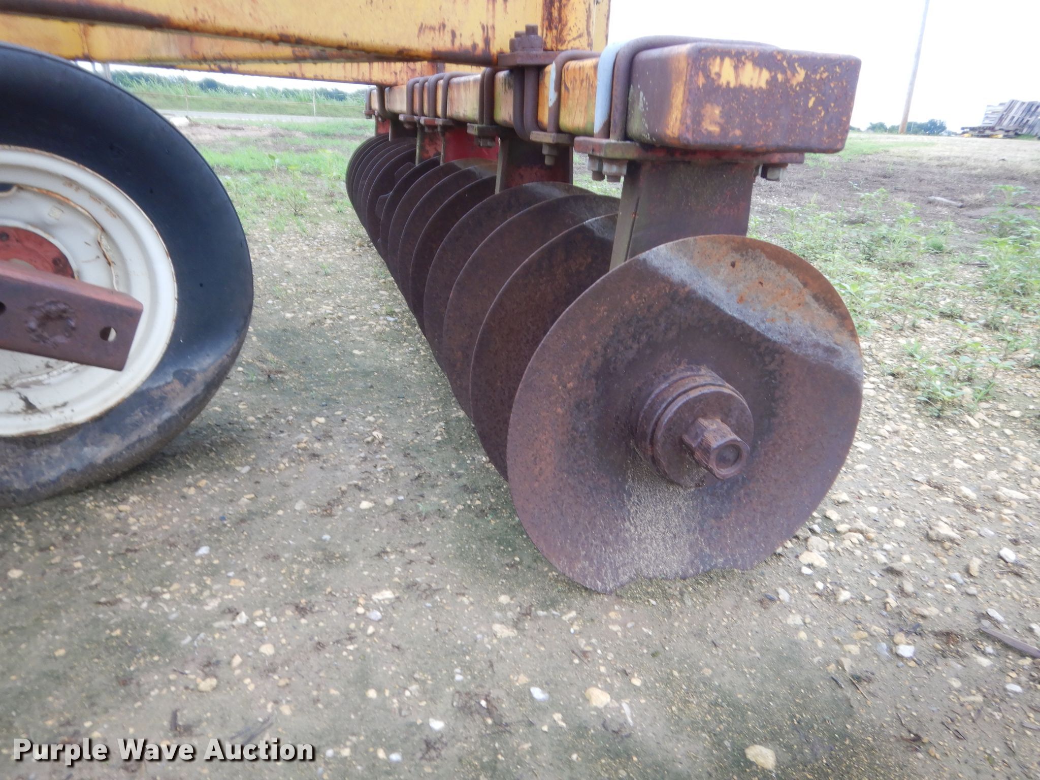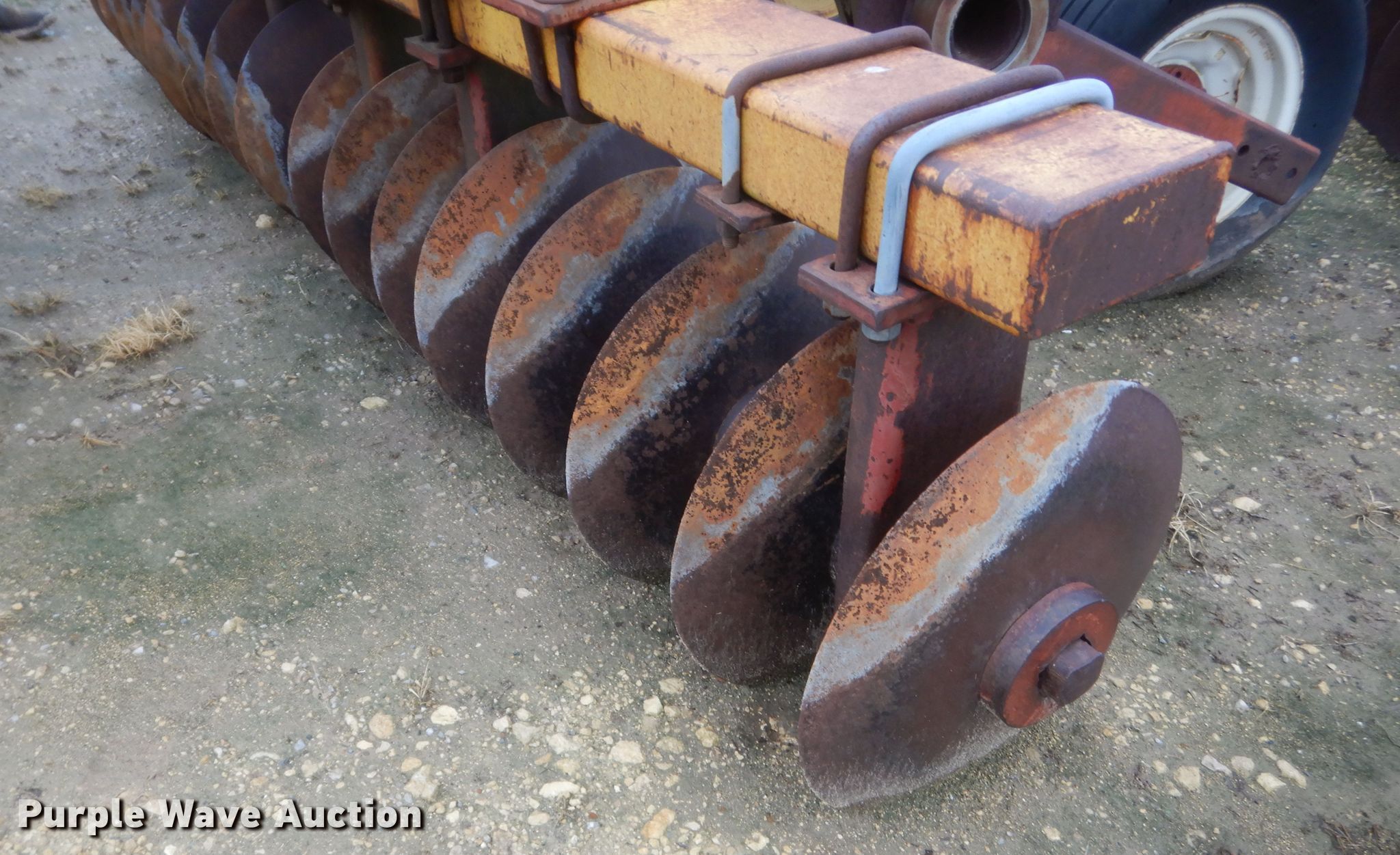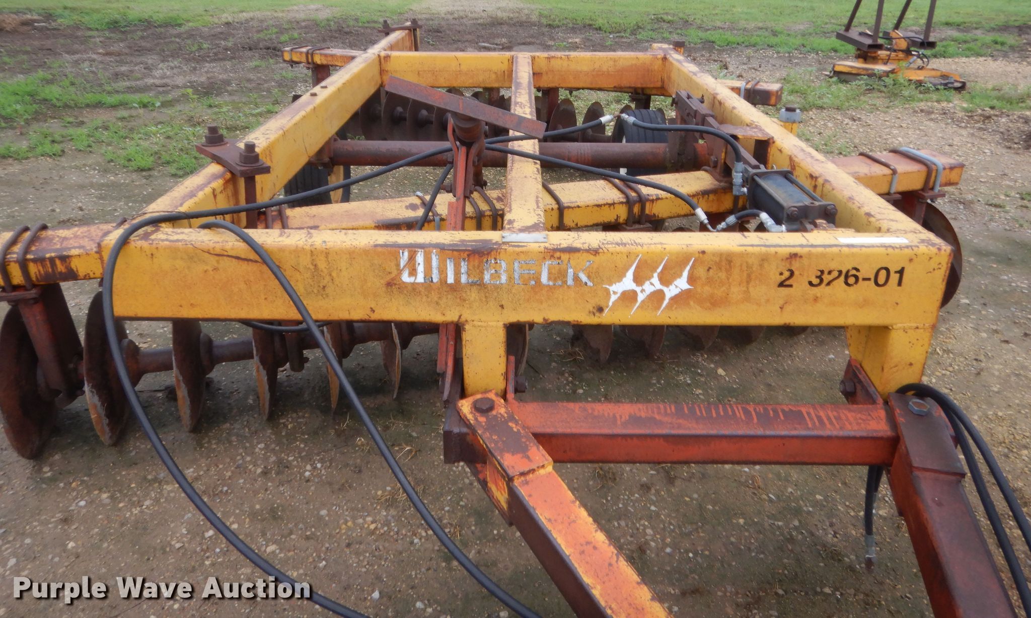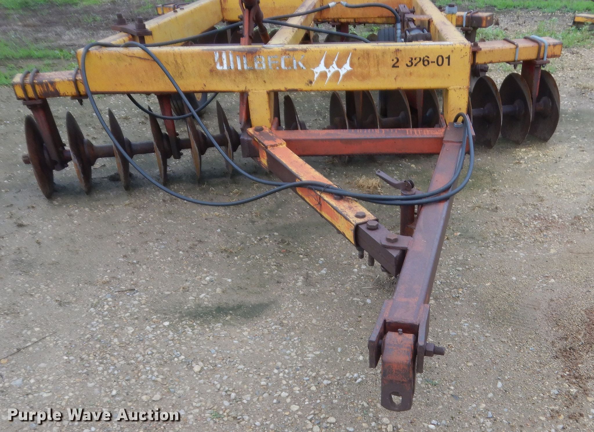 Purple Wave is selling a used Disk in Oklahoma. This item is a Wilbeck 1232 double off-set disk with the following: Overall width: 11', Serial: 1682